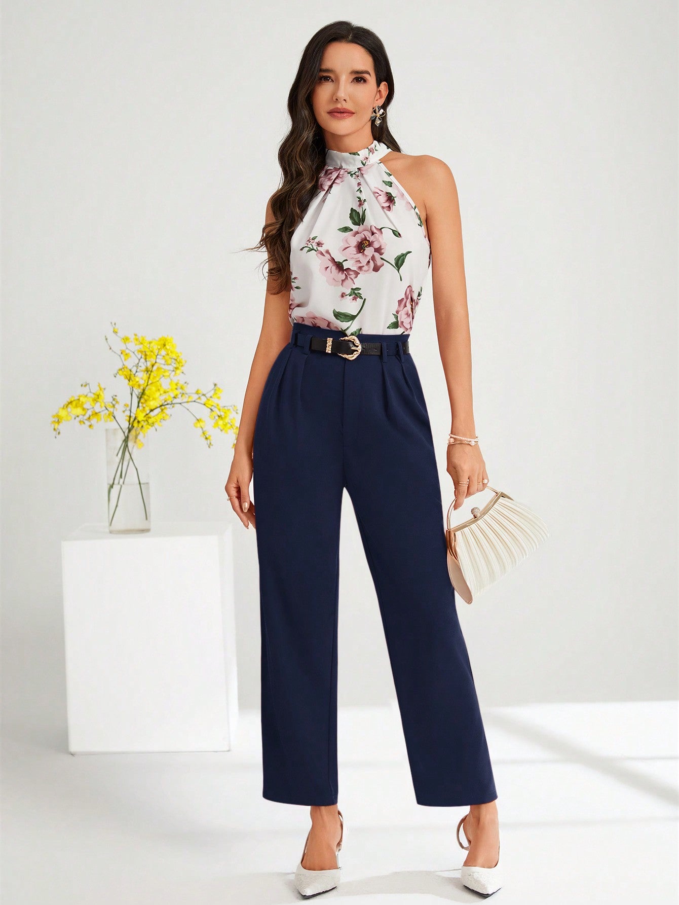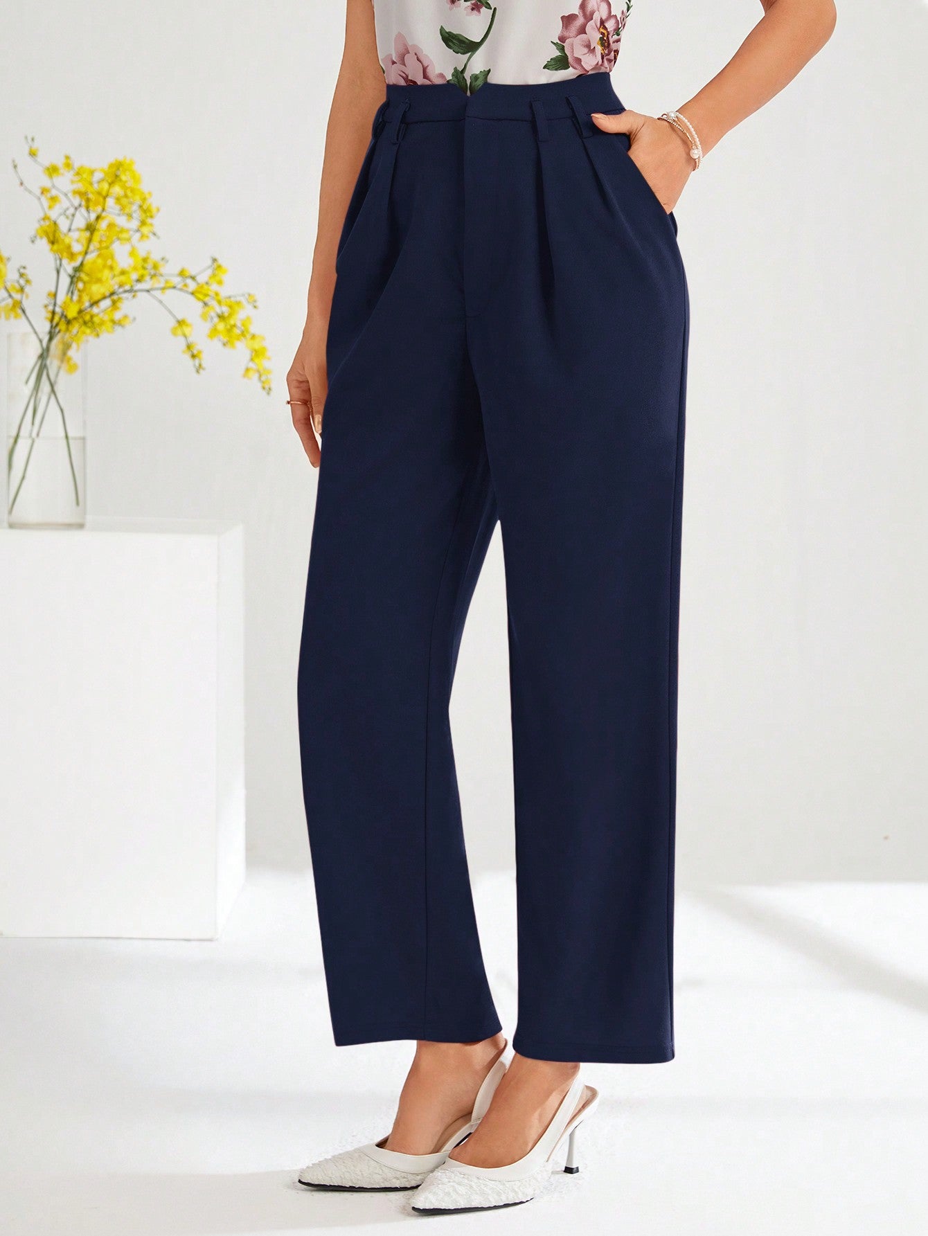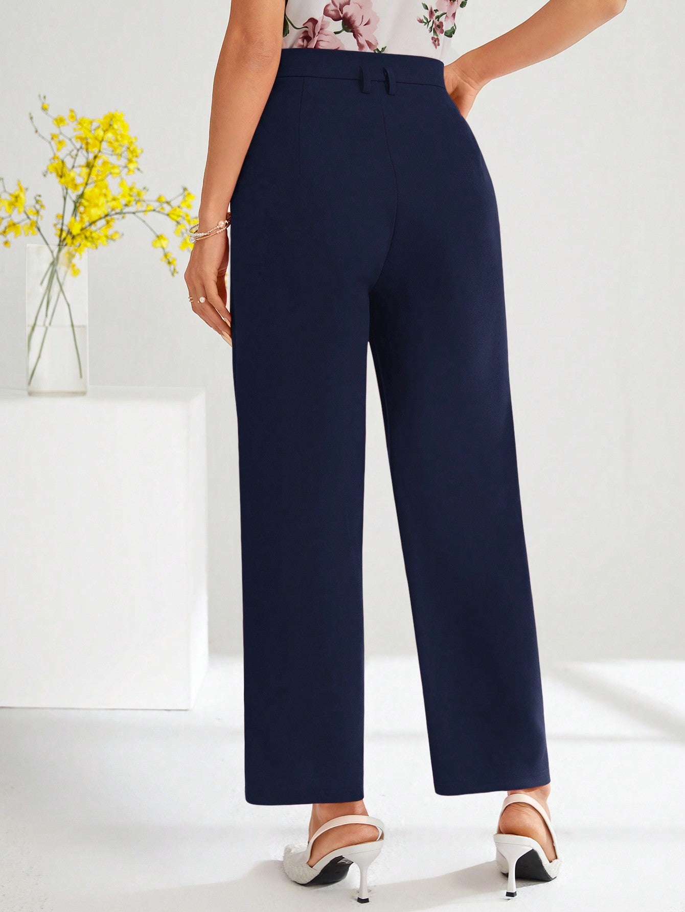 women SHEIN Clasi Solid Slant Pocket Suit Pants Without Belt