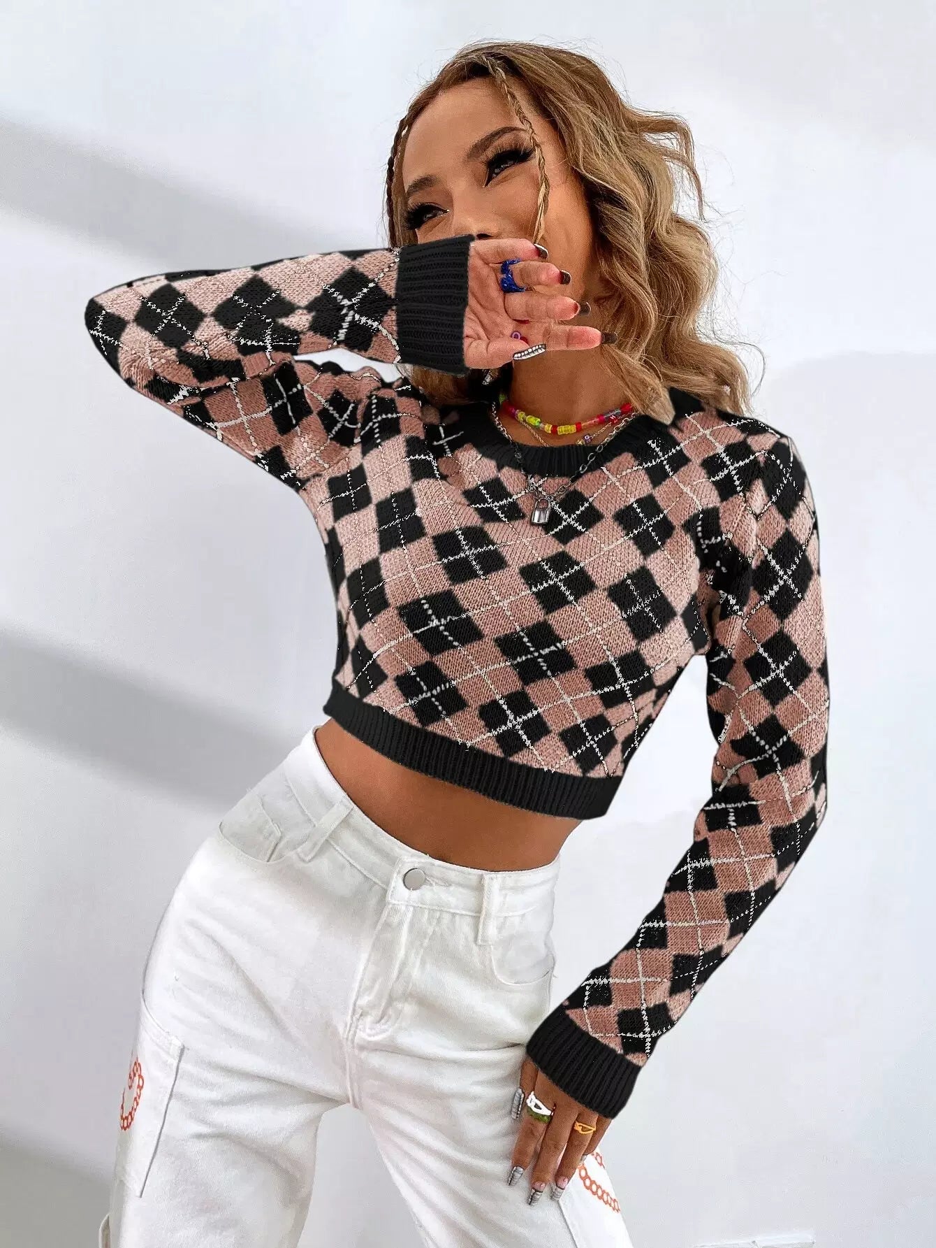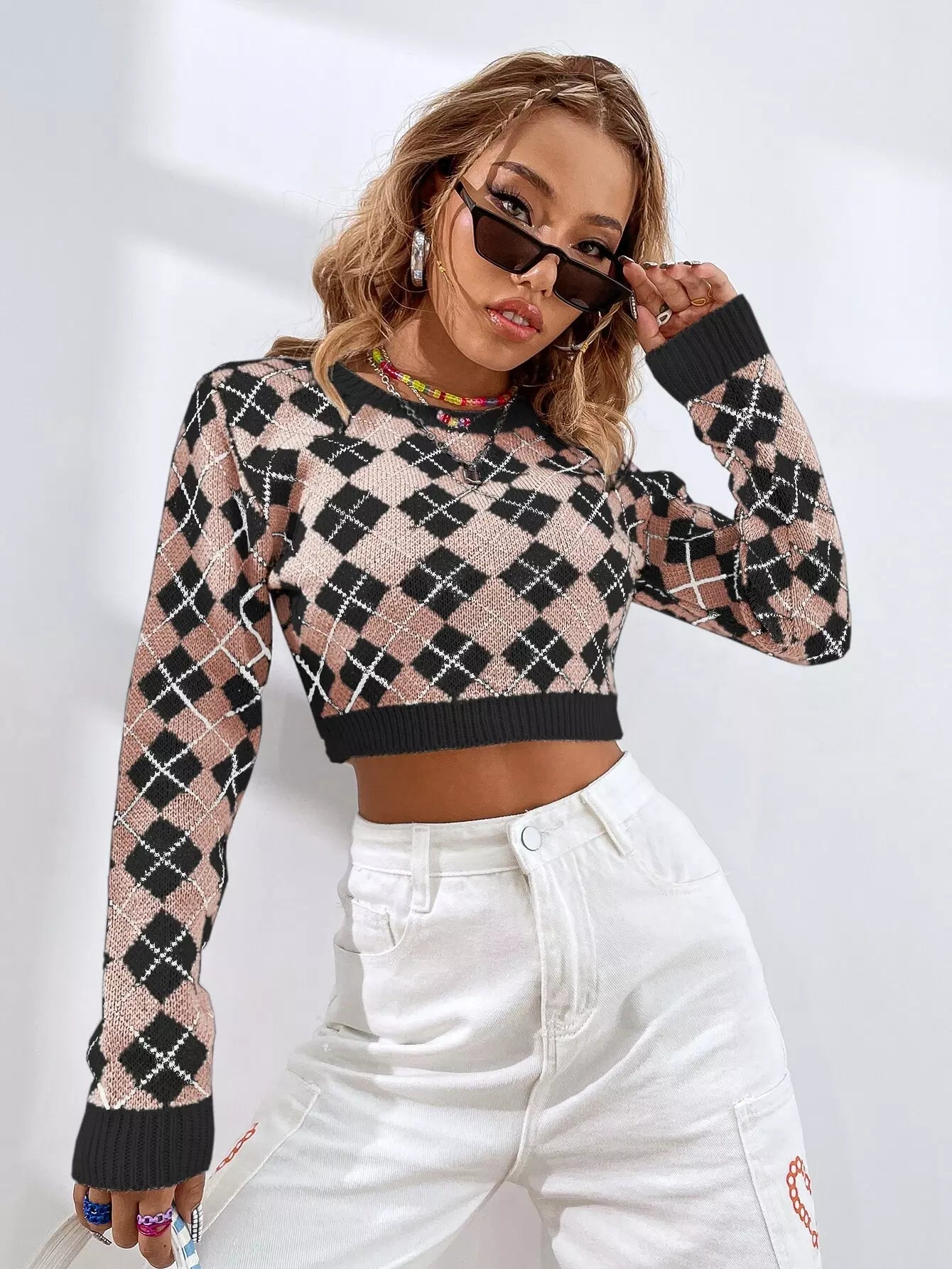 Argyle Pattern Crop Sweater