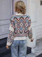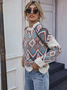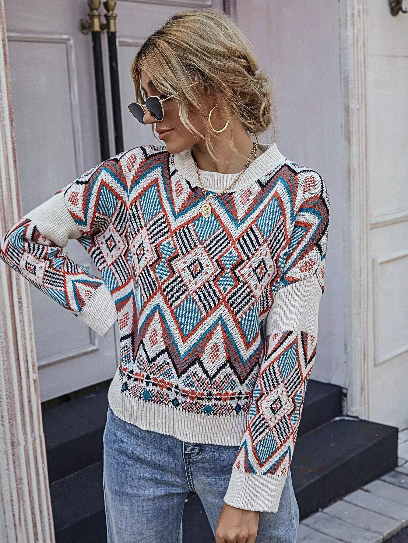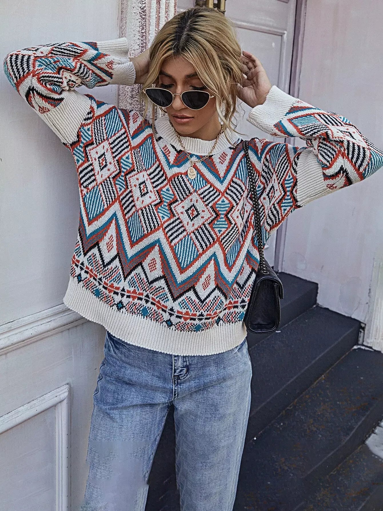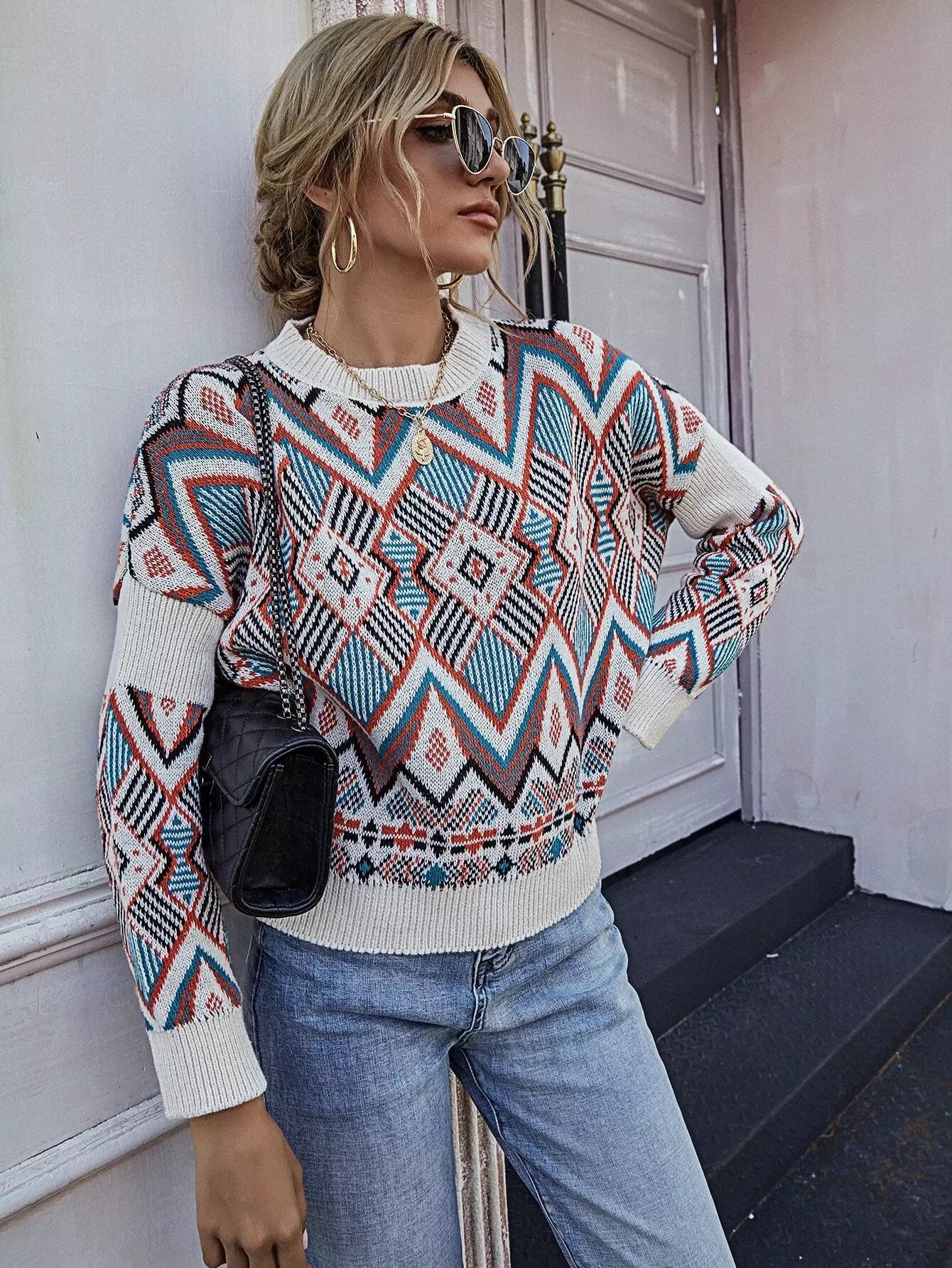 Argyle Pattern Rib-knit Mock Neck Sweater