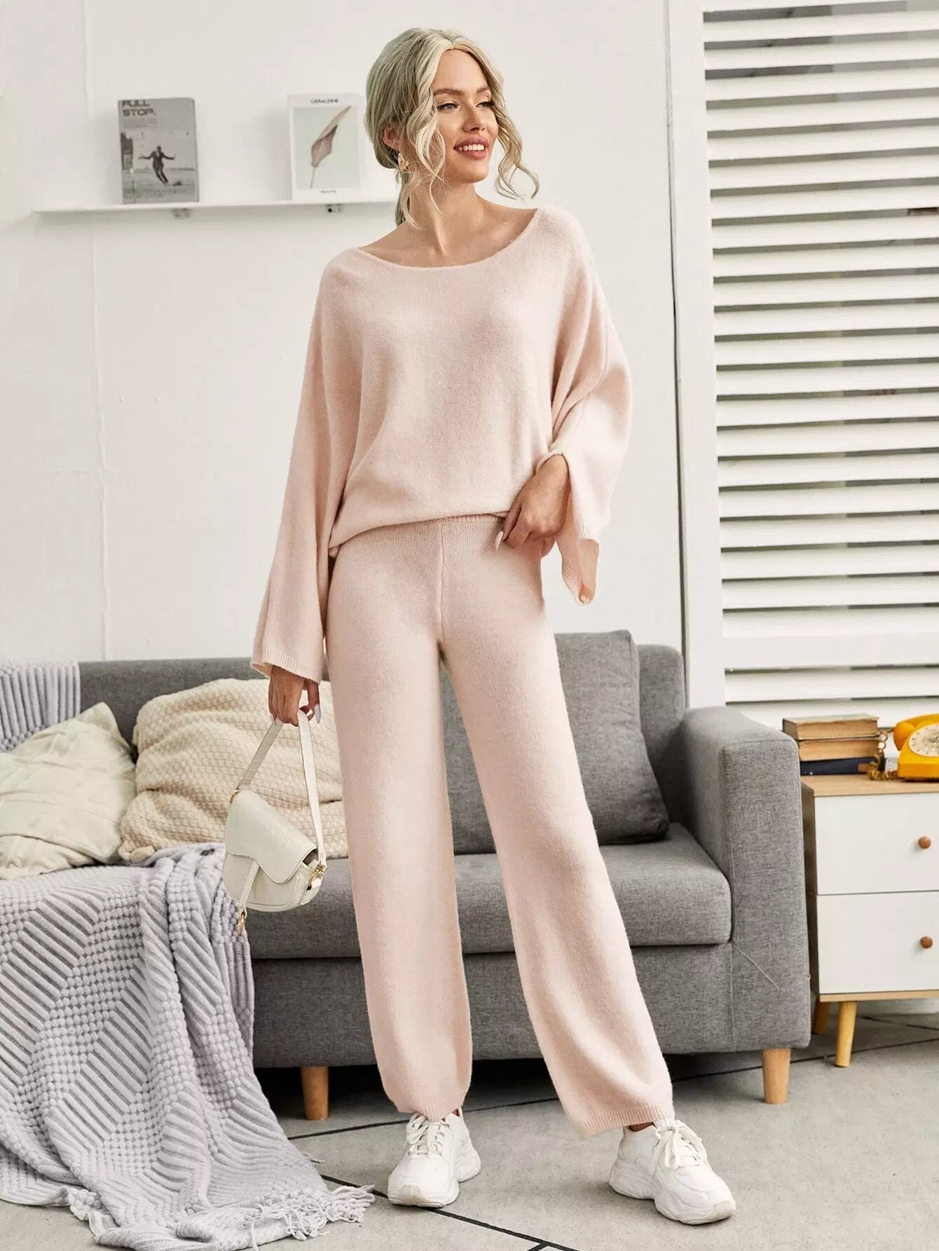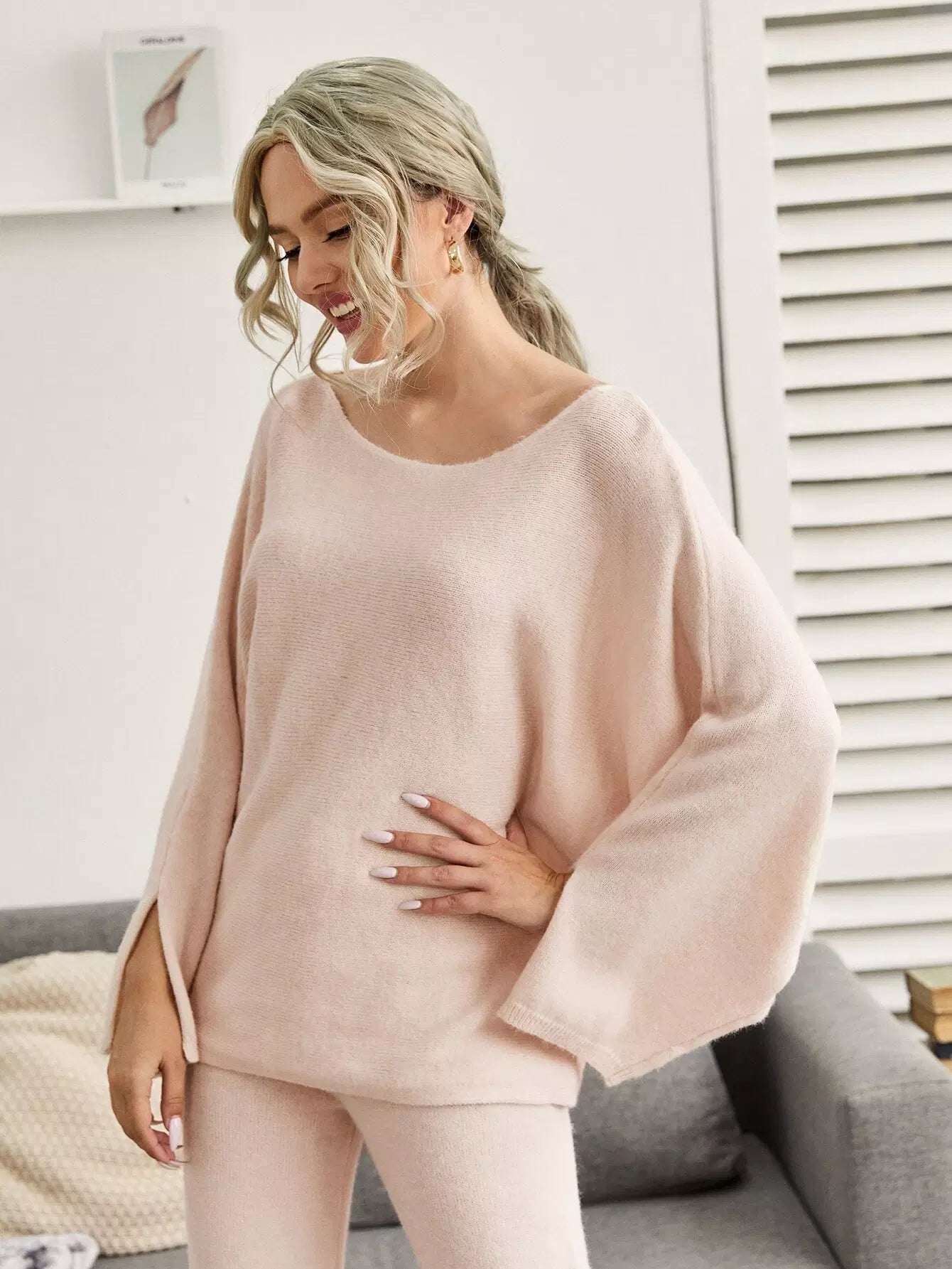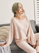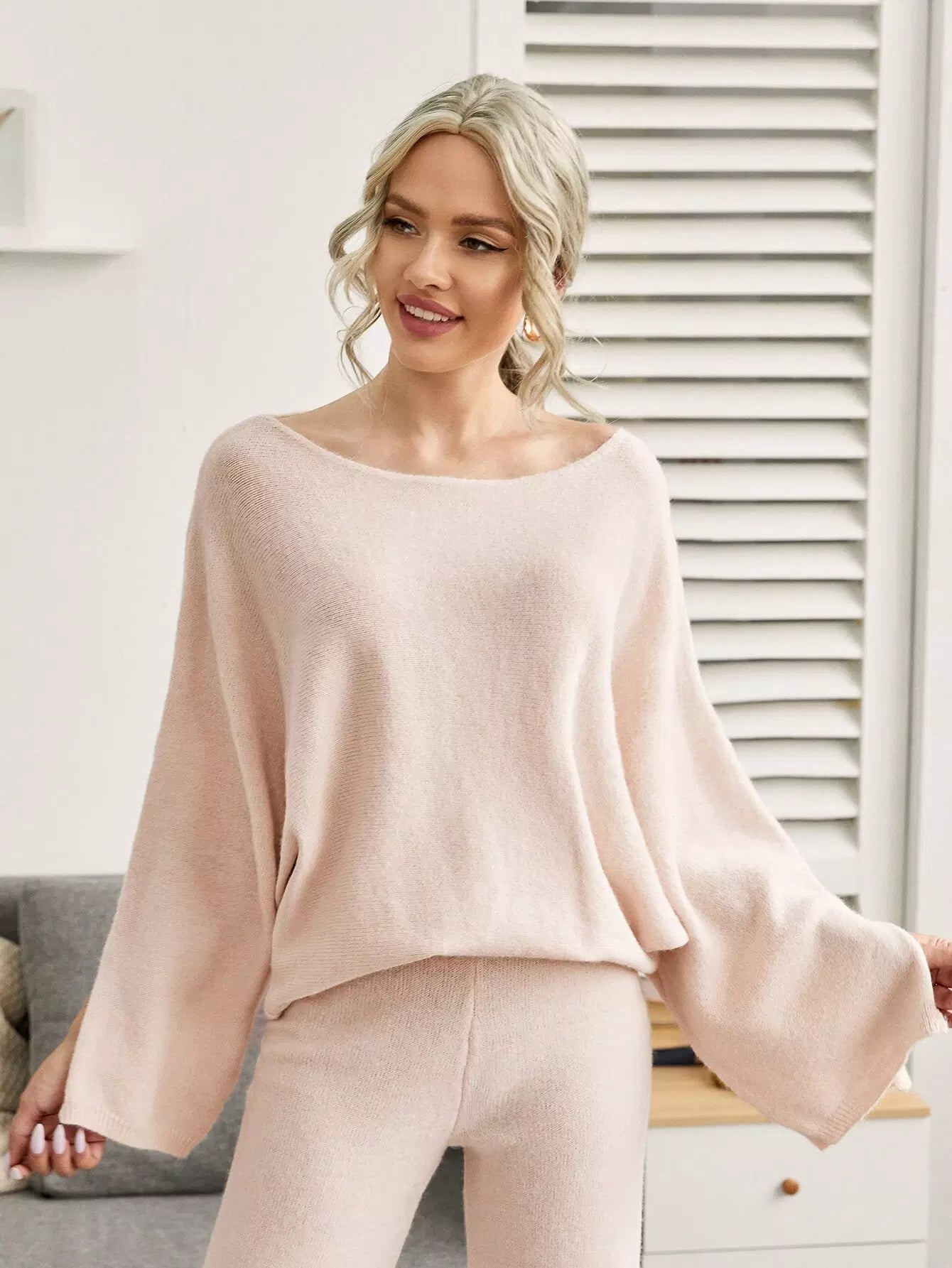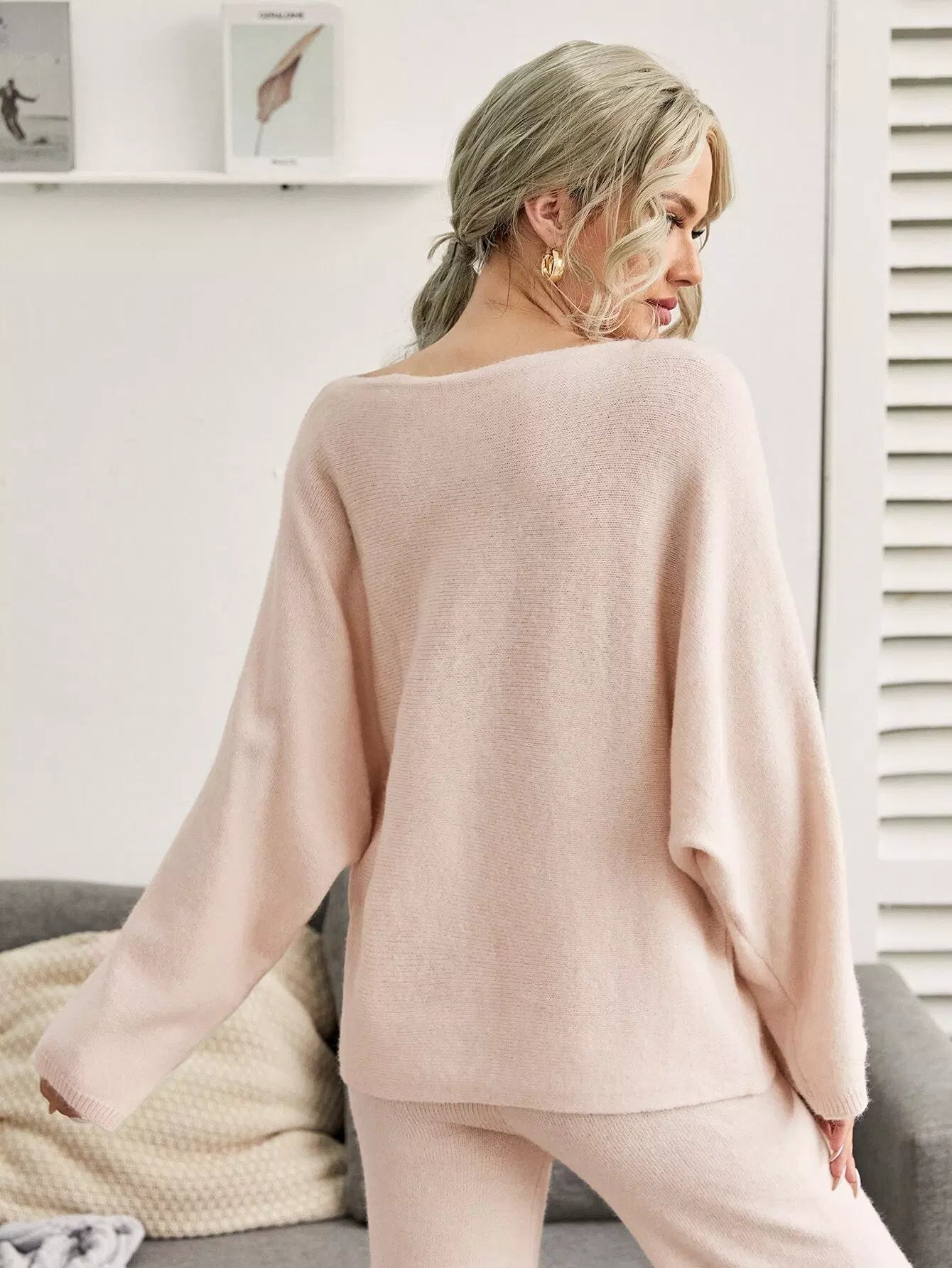 Boat Neck Batwing Sleeve Slit Cuff Sweater
