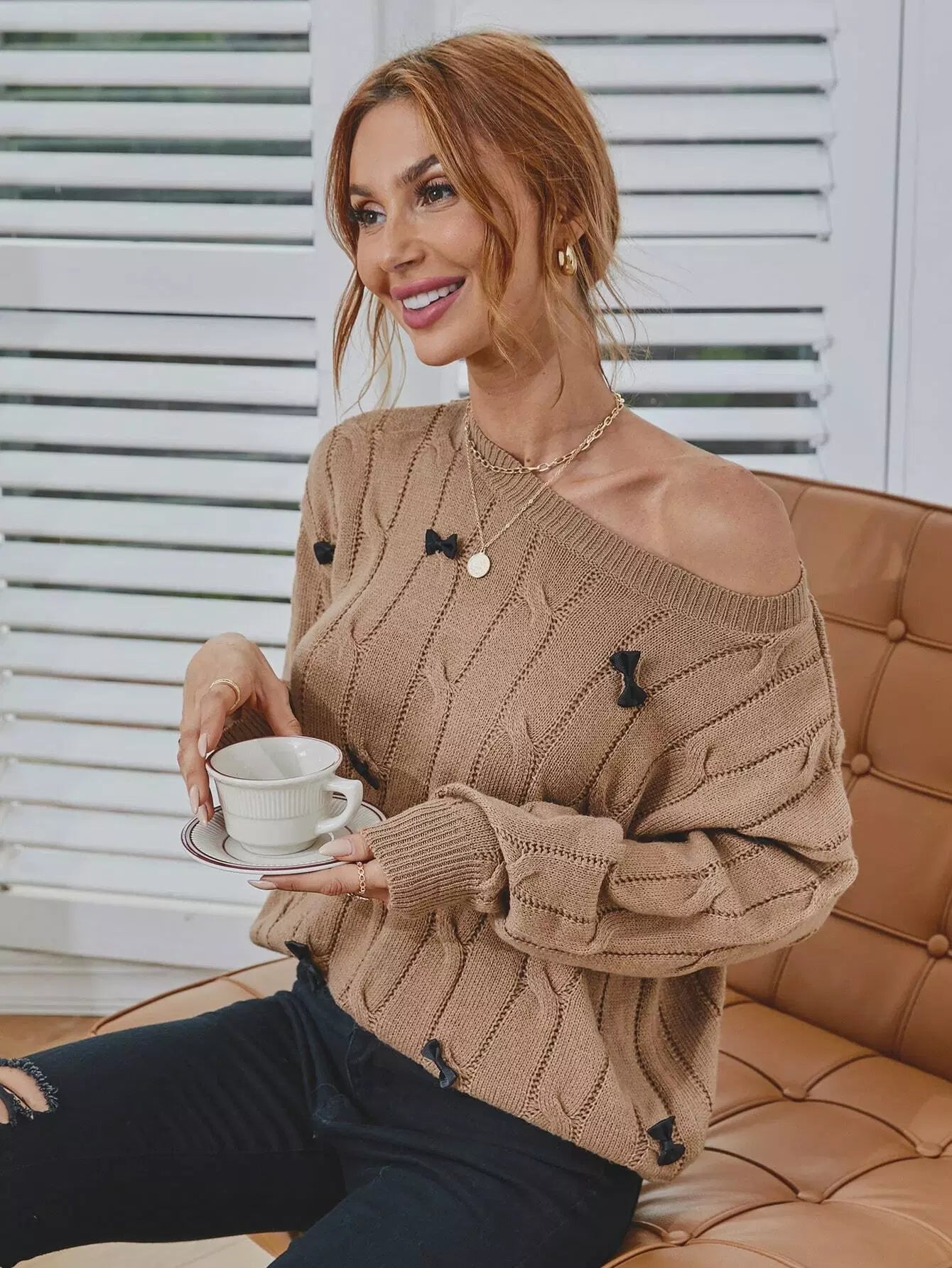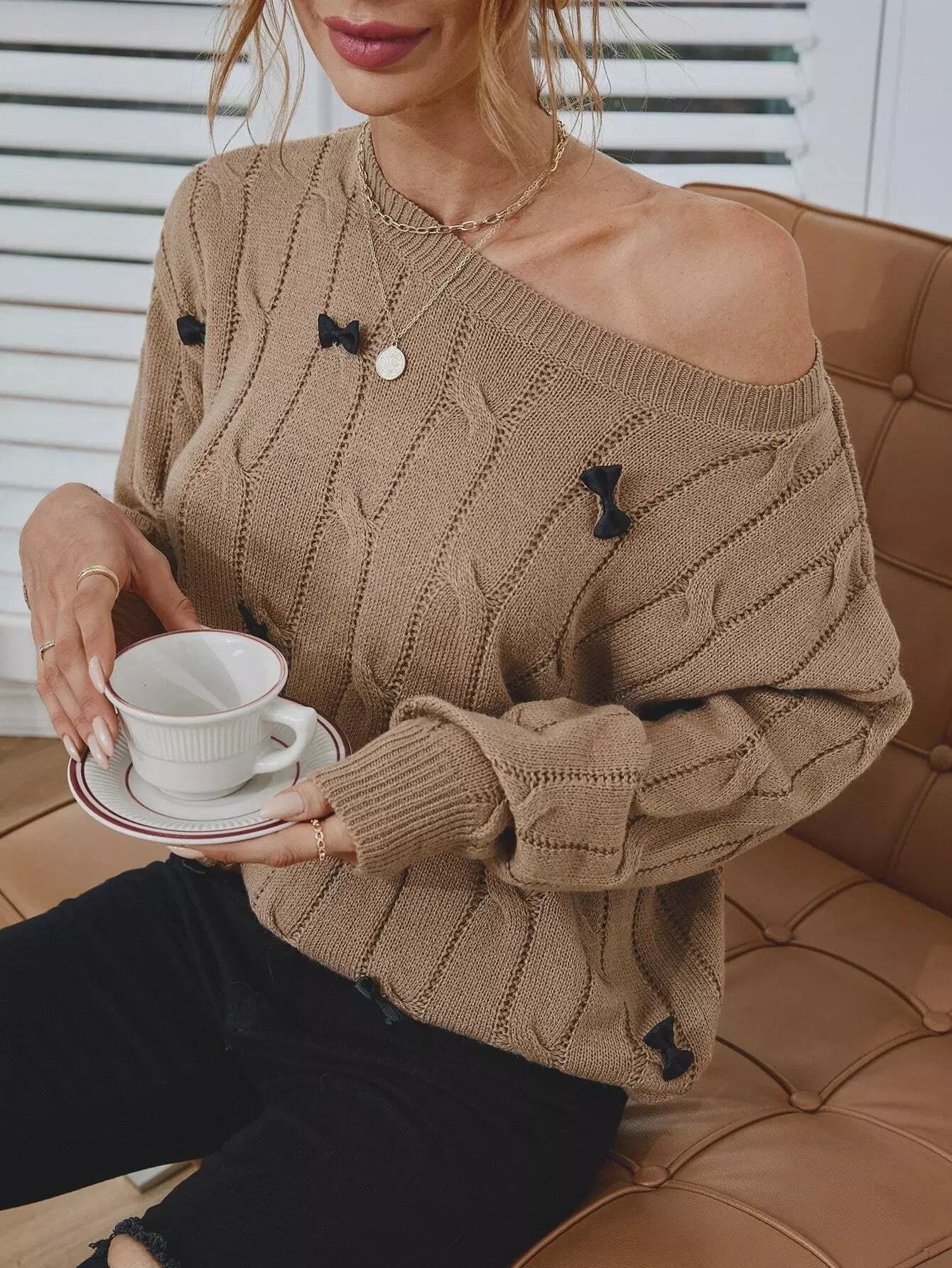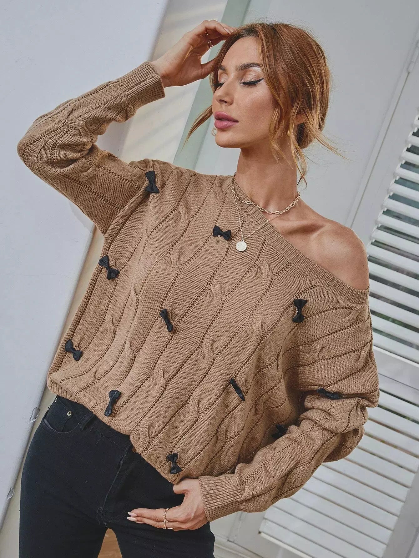 Bow Detail One Shoulder Sweater