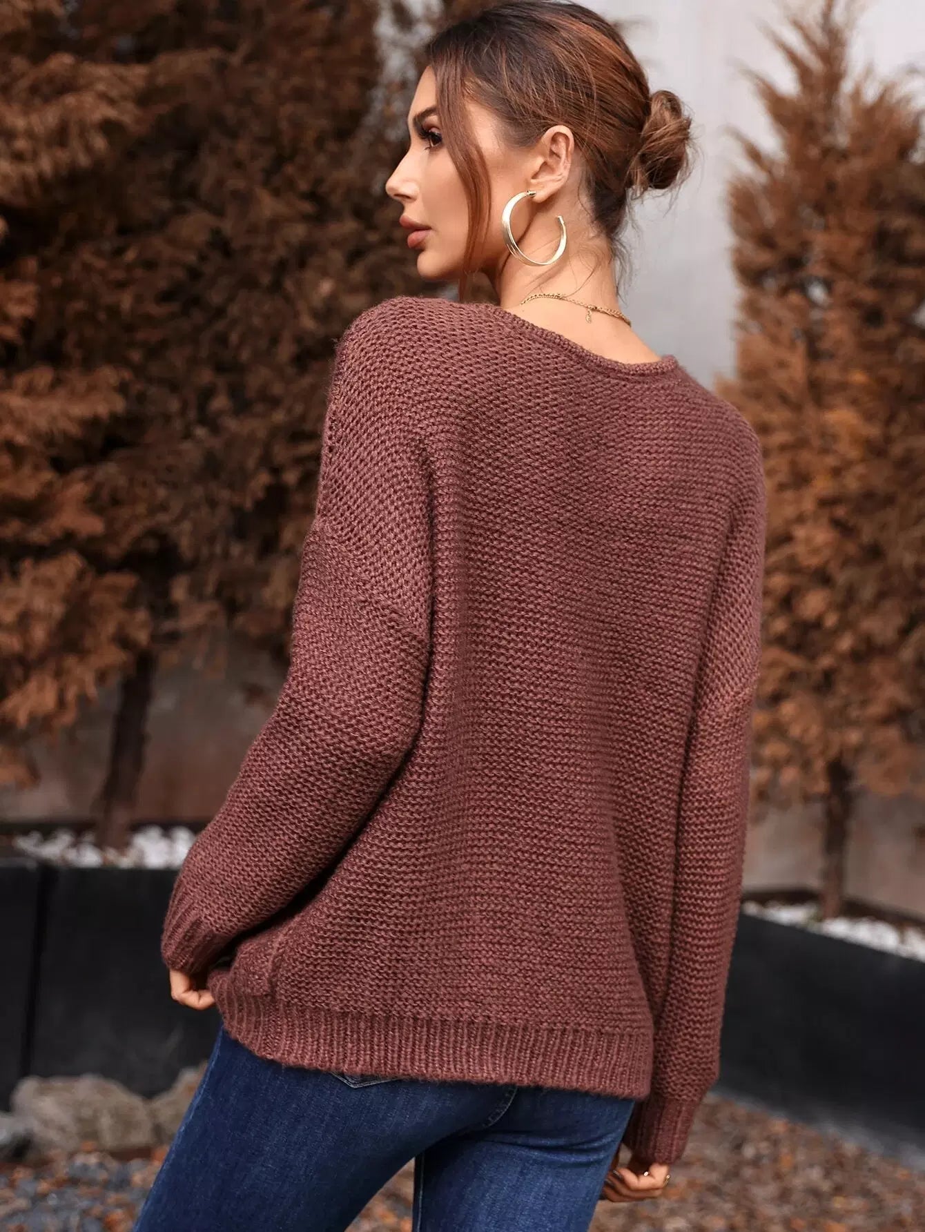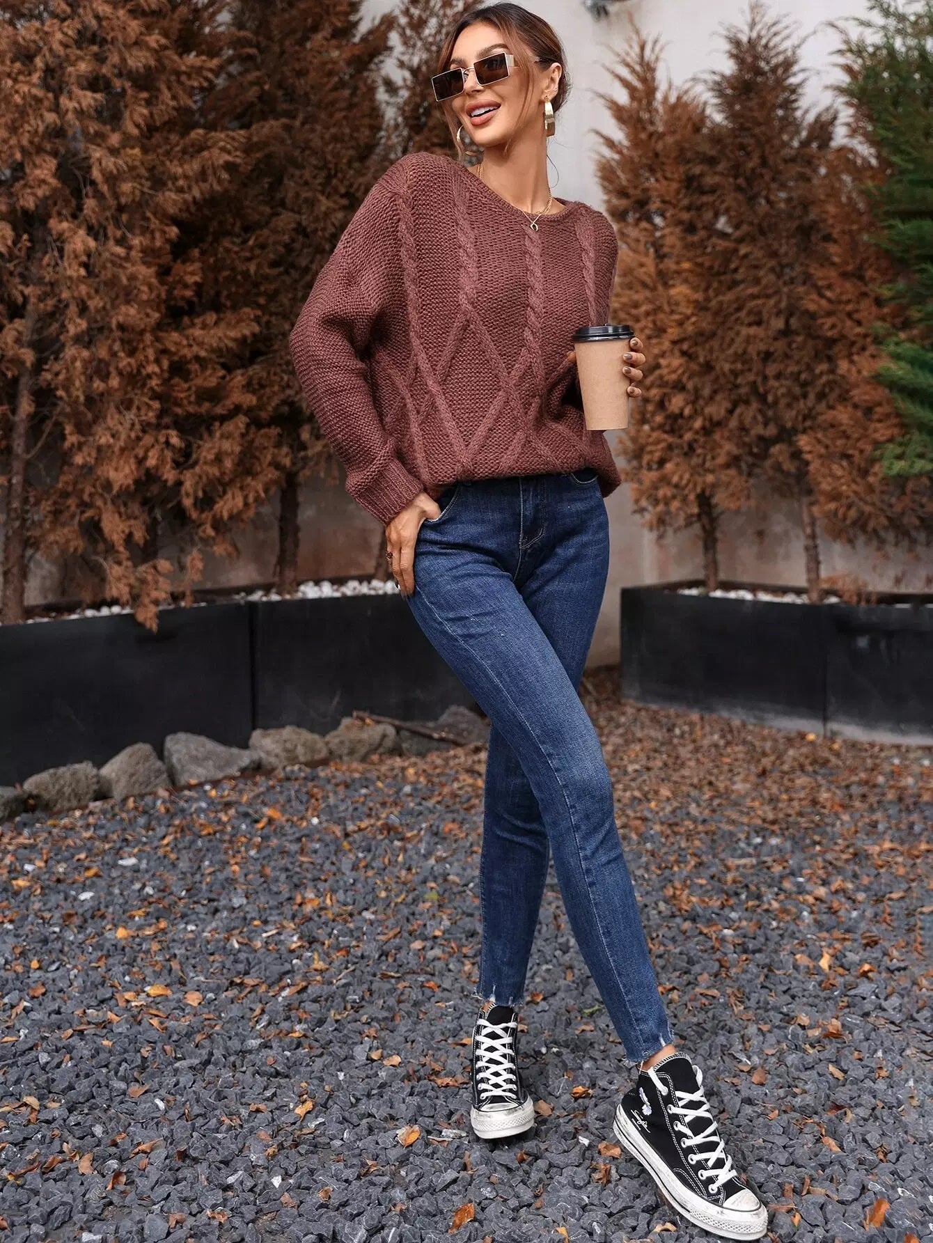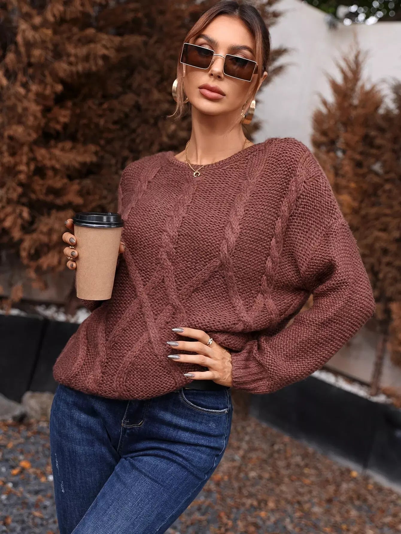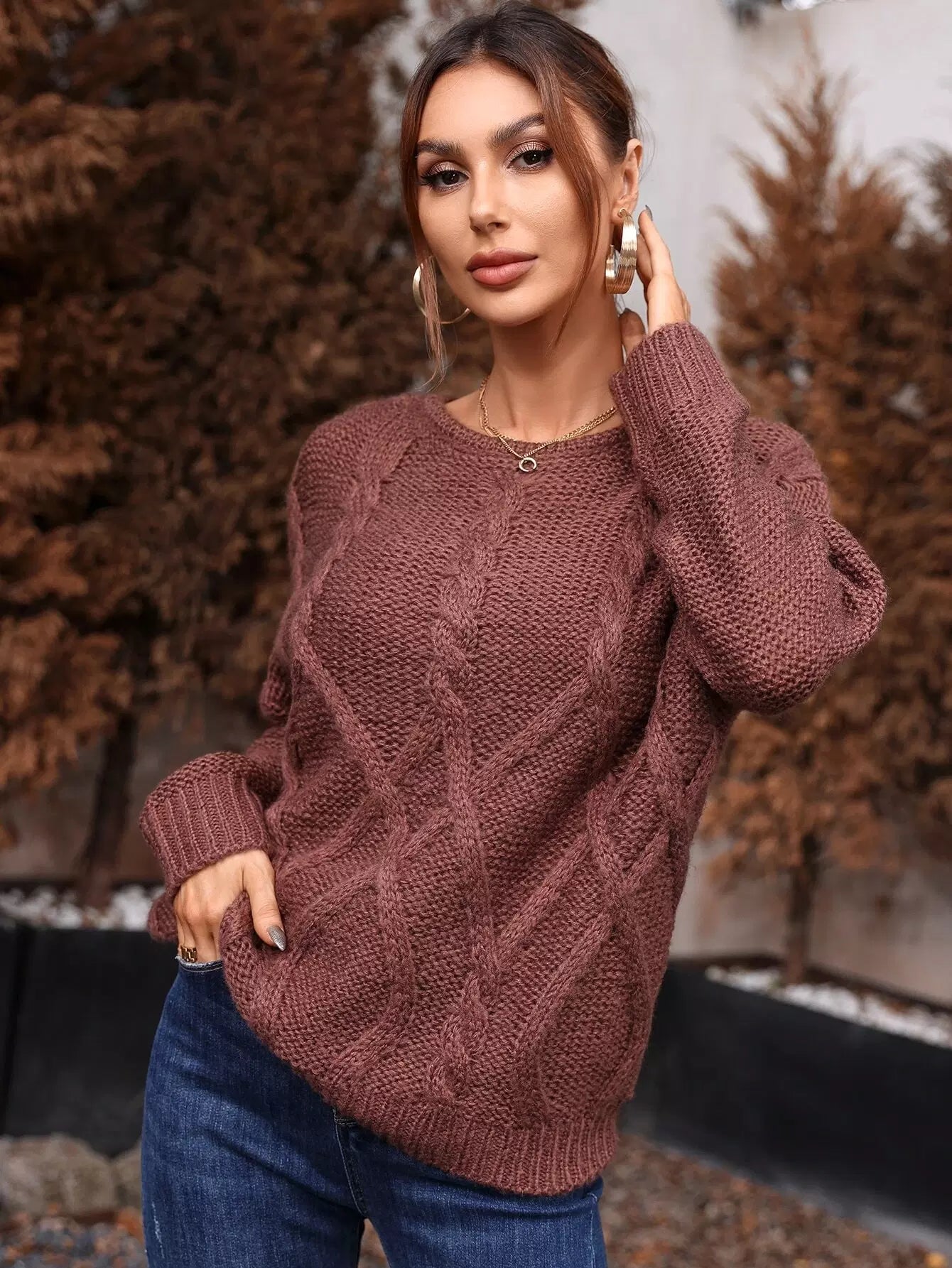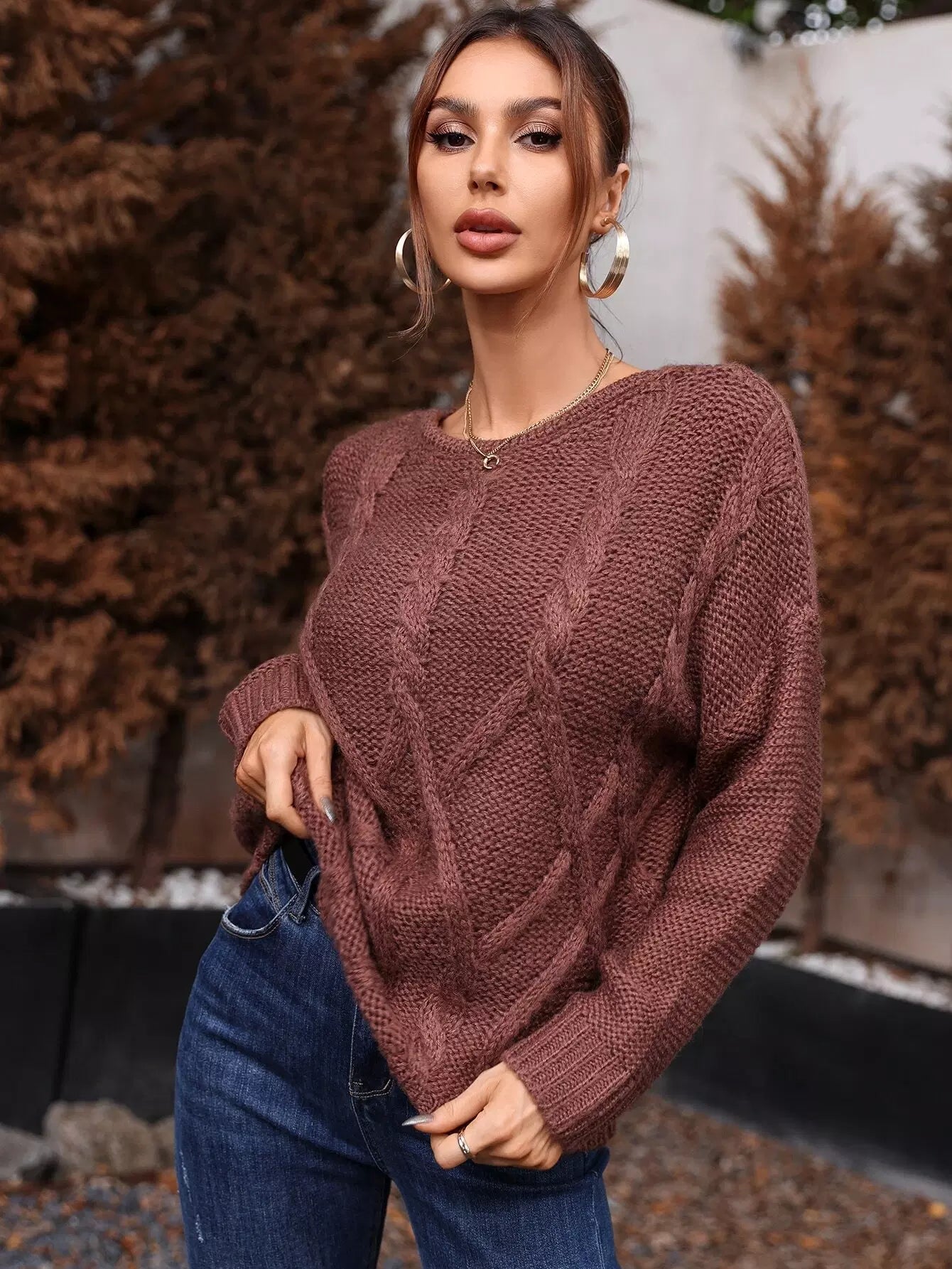 Cable Knit Drop Shoulder Sweater