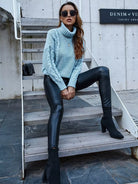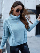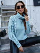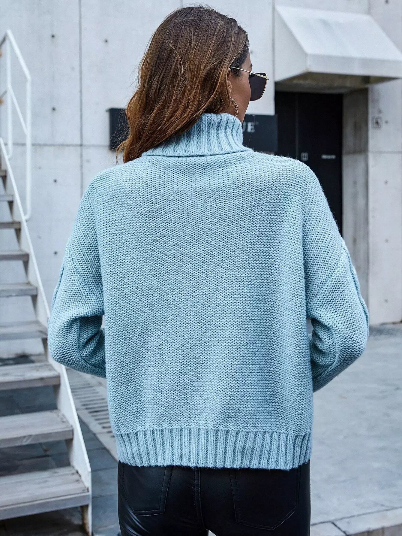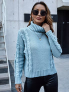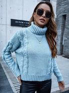 Cable Knit Turtleneck Drop Shoulder Sweater