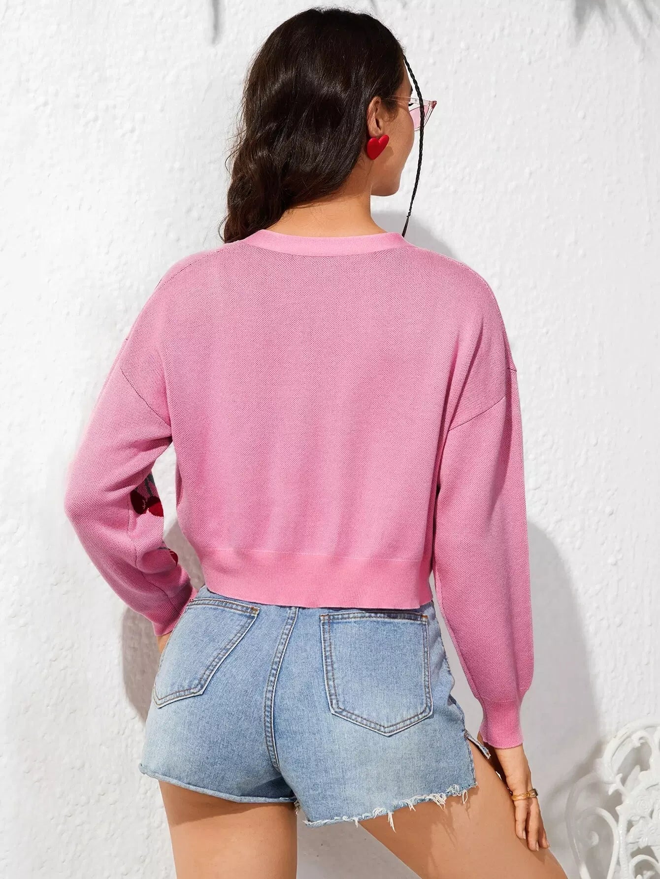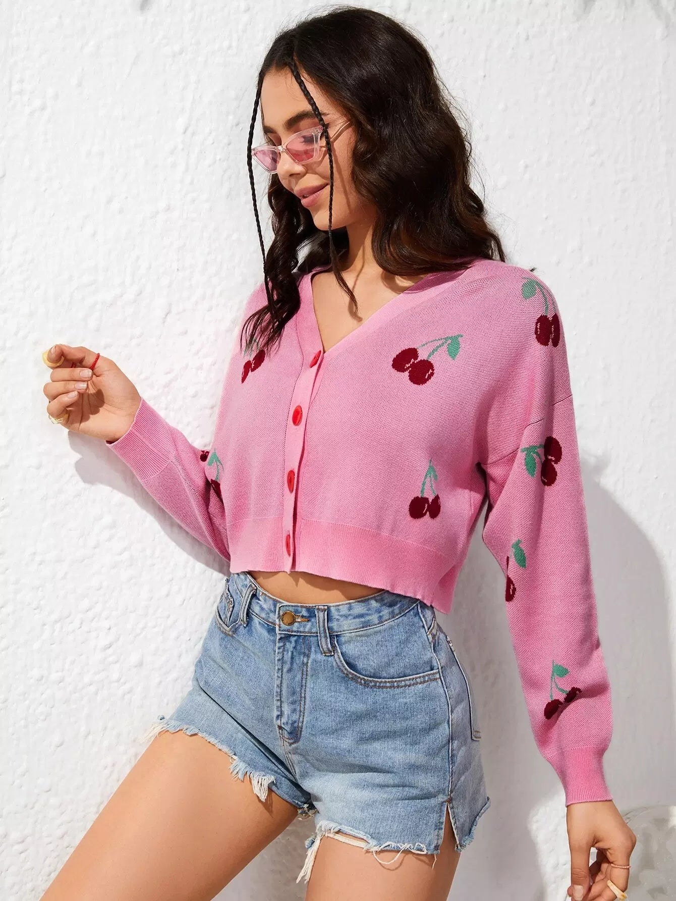 Cherry Print Drop Shoulder Cardigan