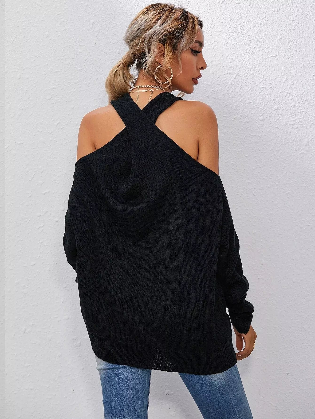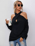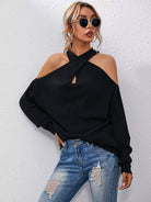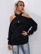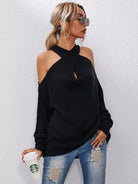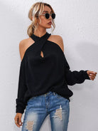 Crisscross Halter Neck Drop Shoulder Sweater