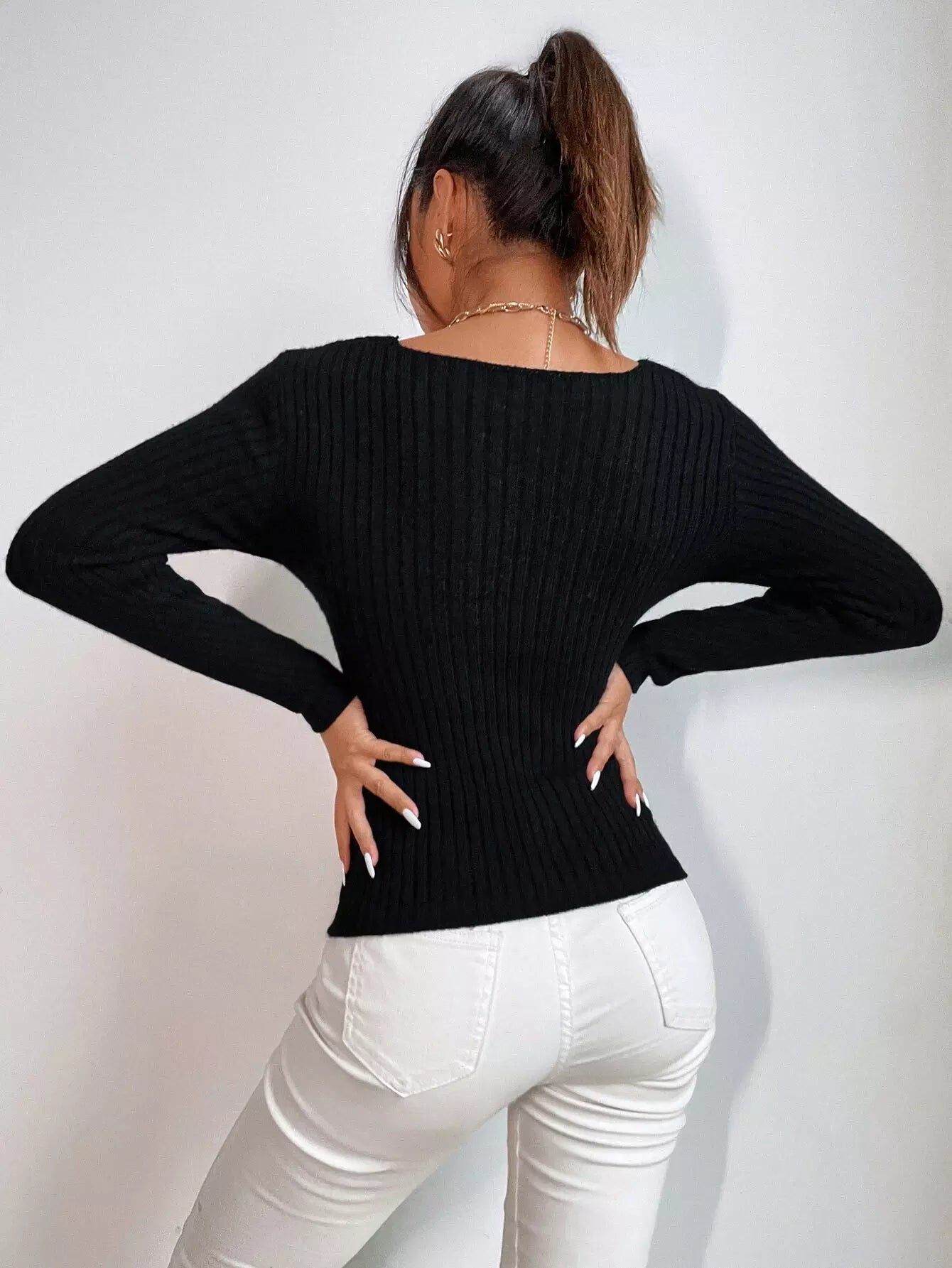 Crossover Plunging Neck Sweater