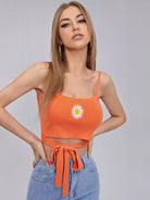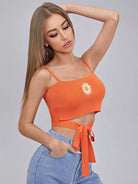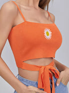 Cutout Tie Hem Floral Embroidered Knit Cami Top