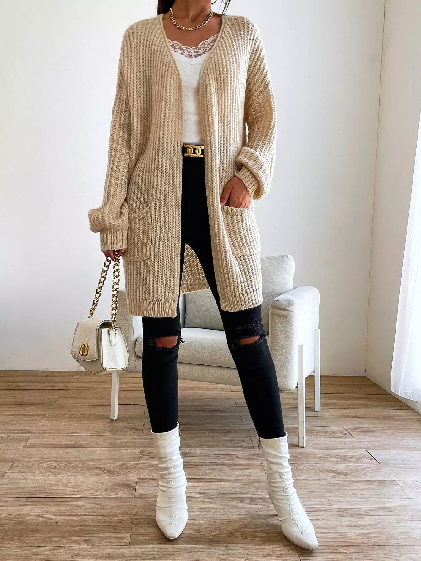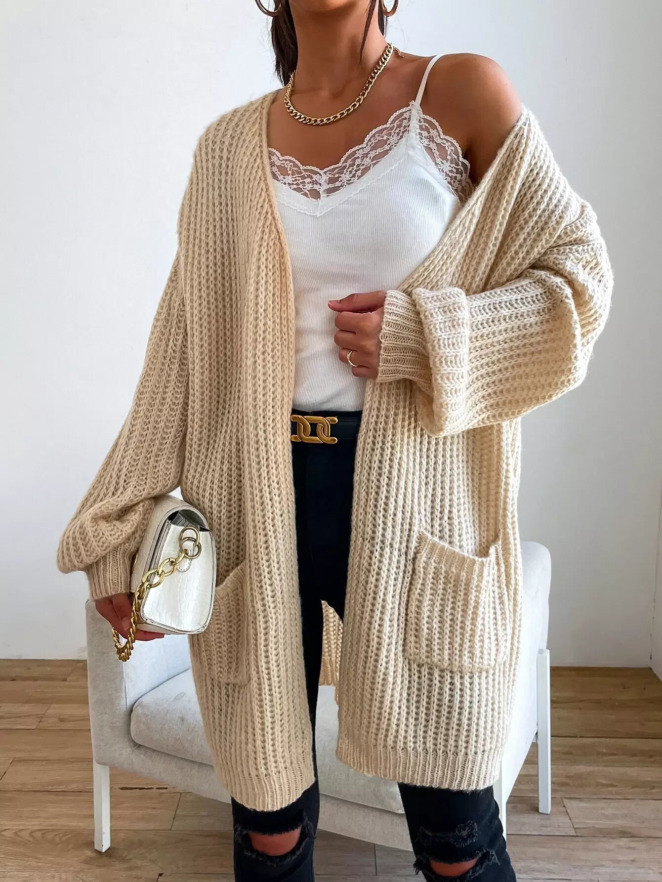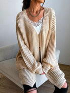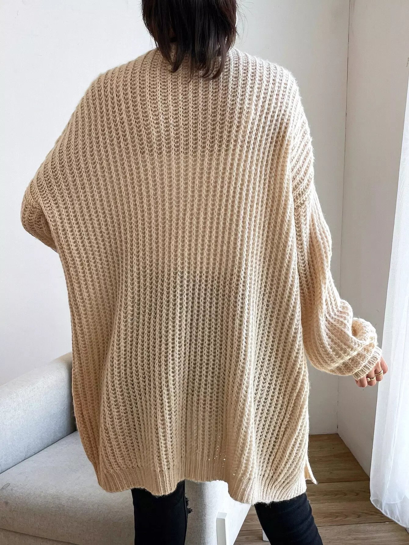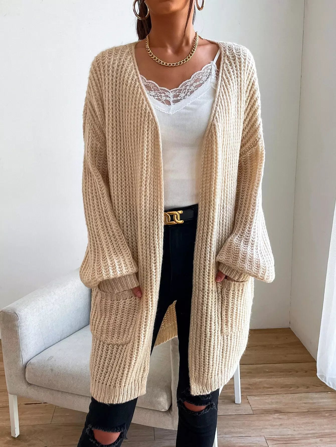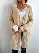 Double Pocket Drop Shoulder Open Front Cardigan