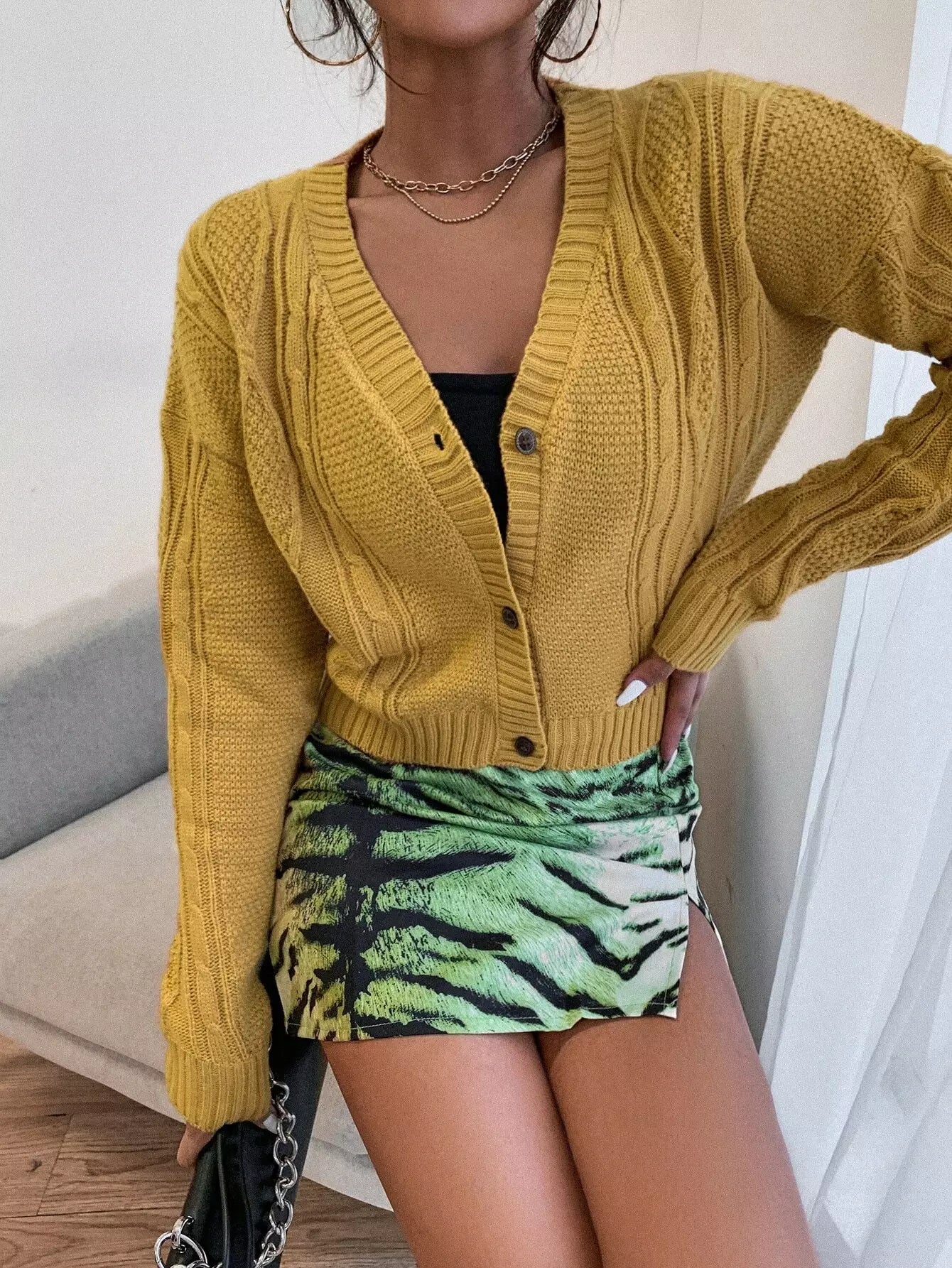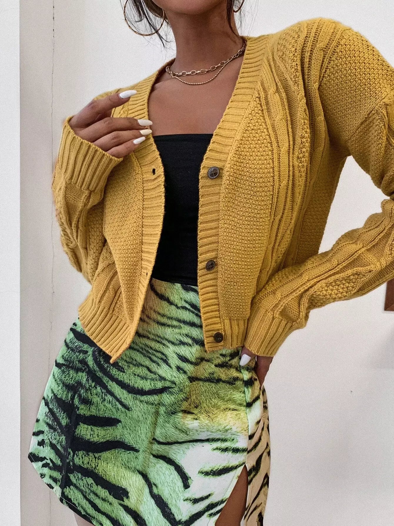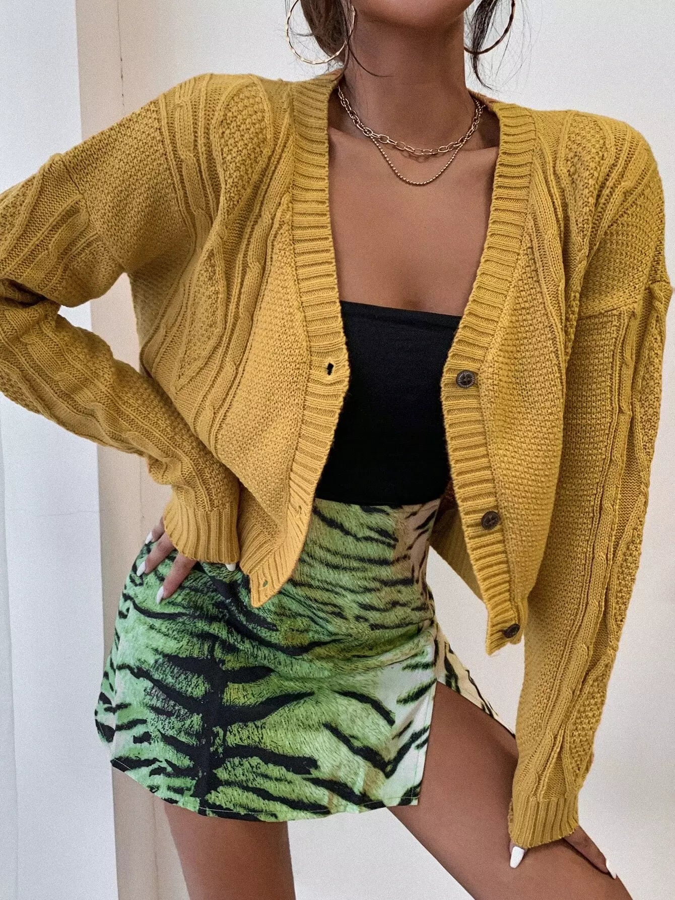 Drop Shoulder Cable Knit Cardigan