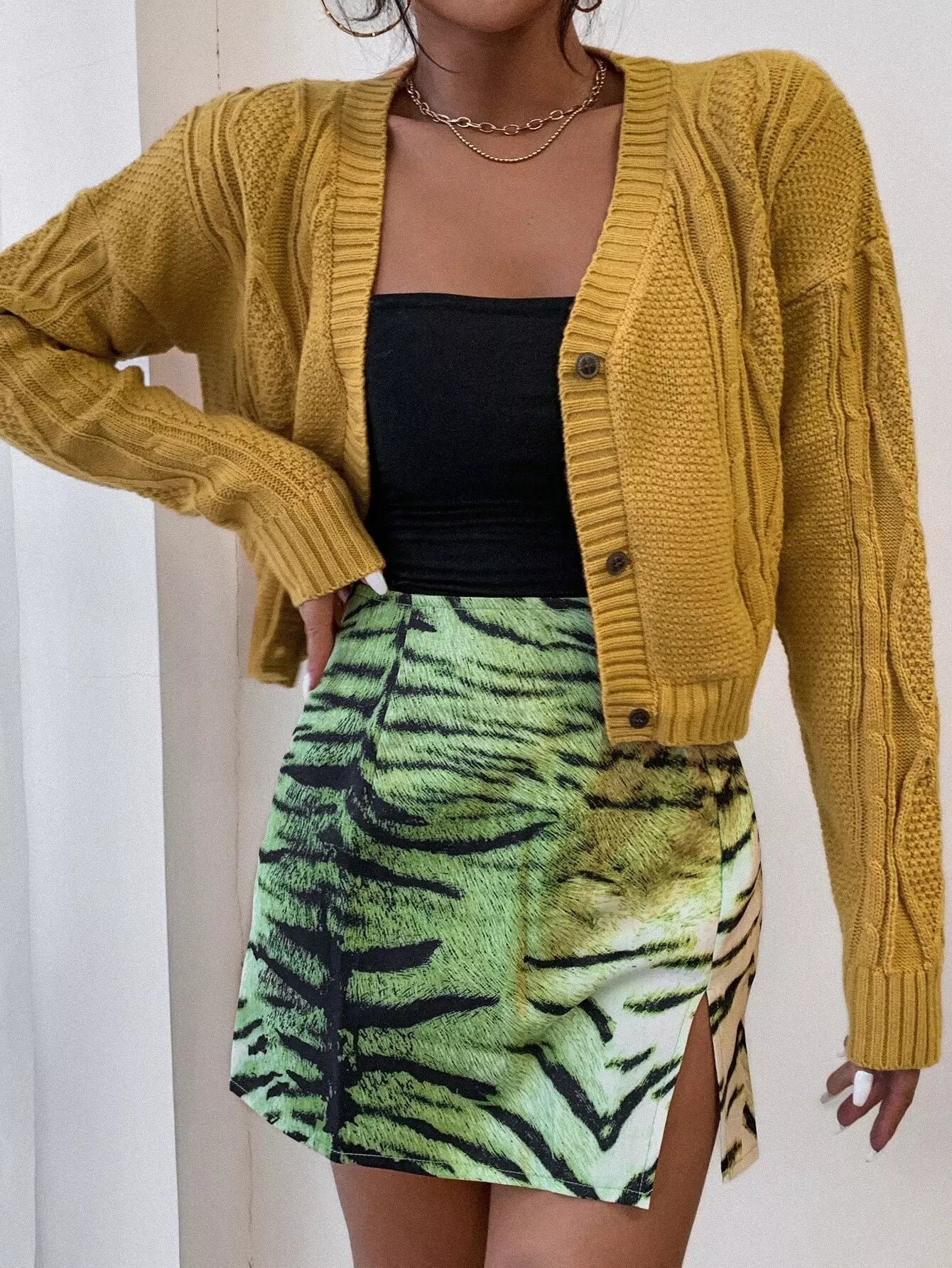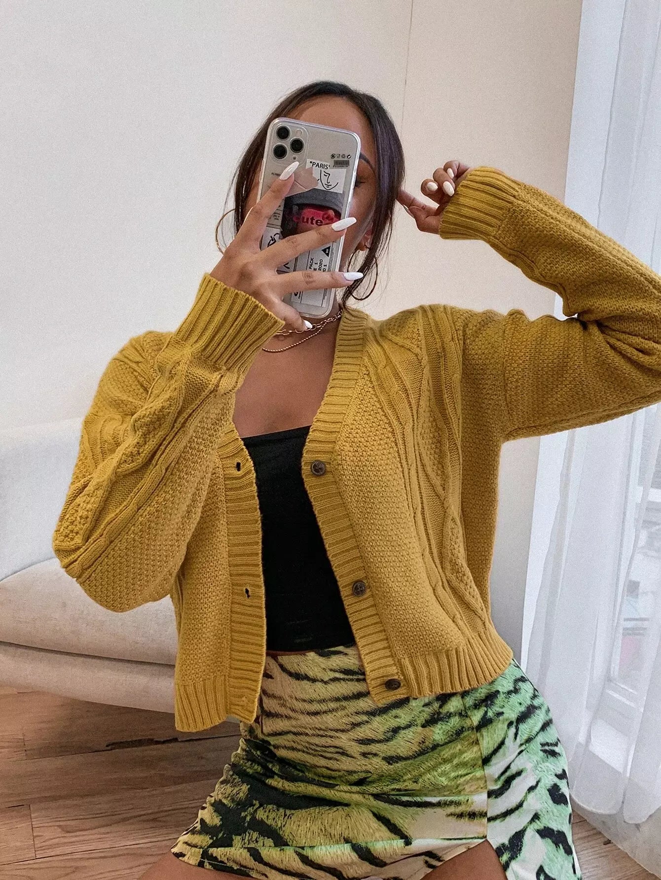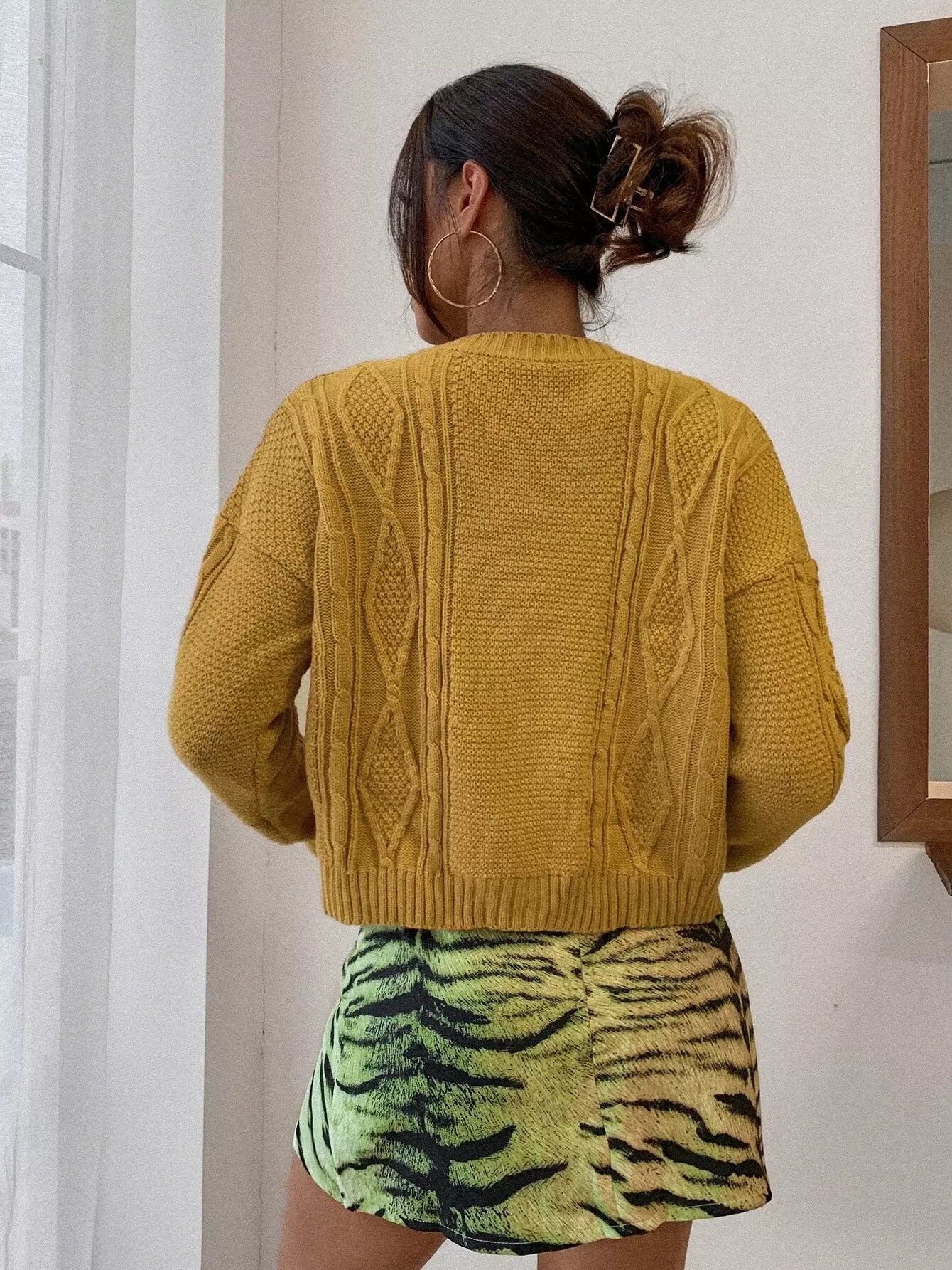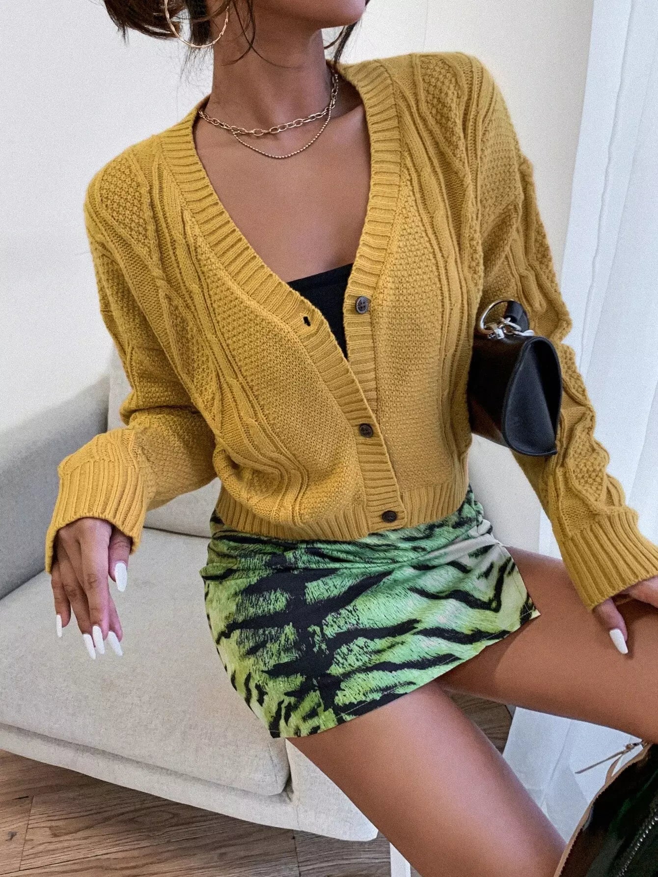 Drop Shoulder Cable Knit Cardigan
