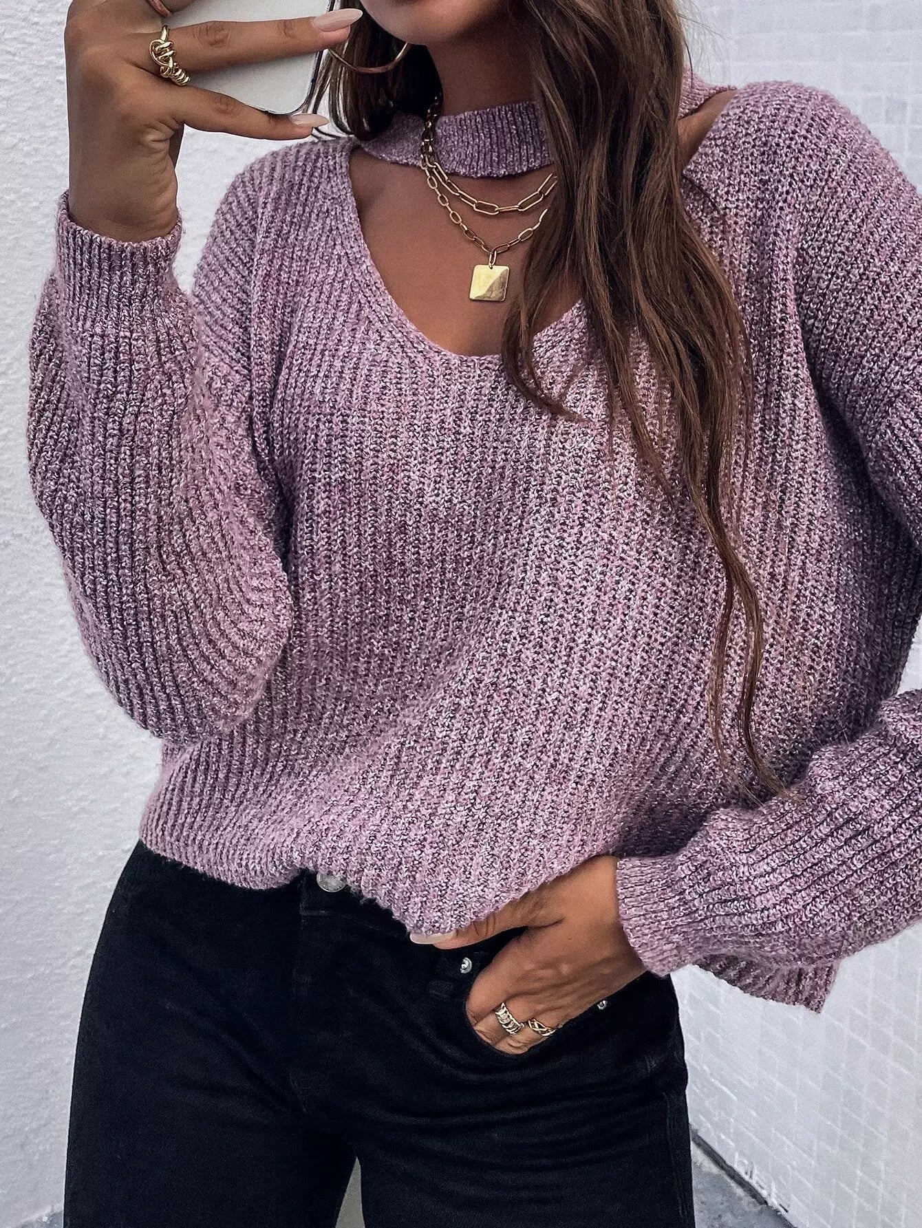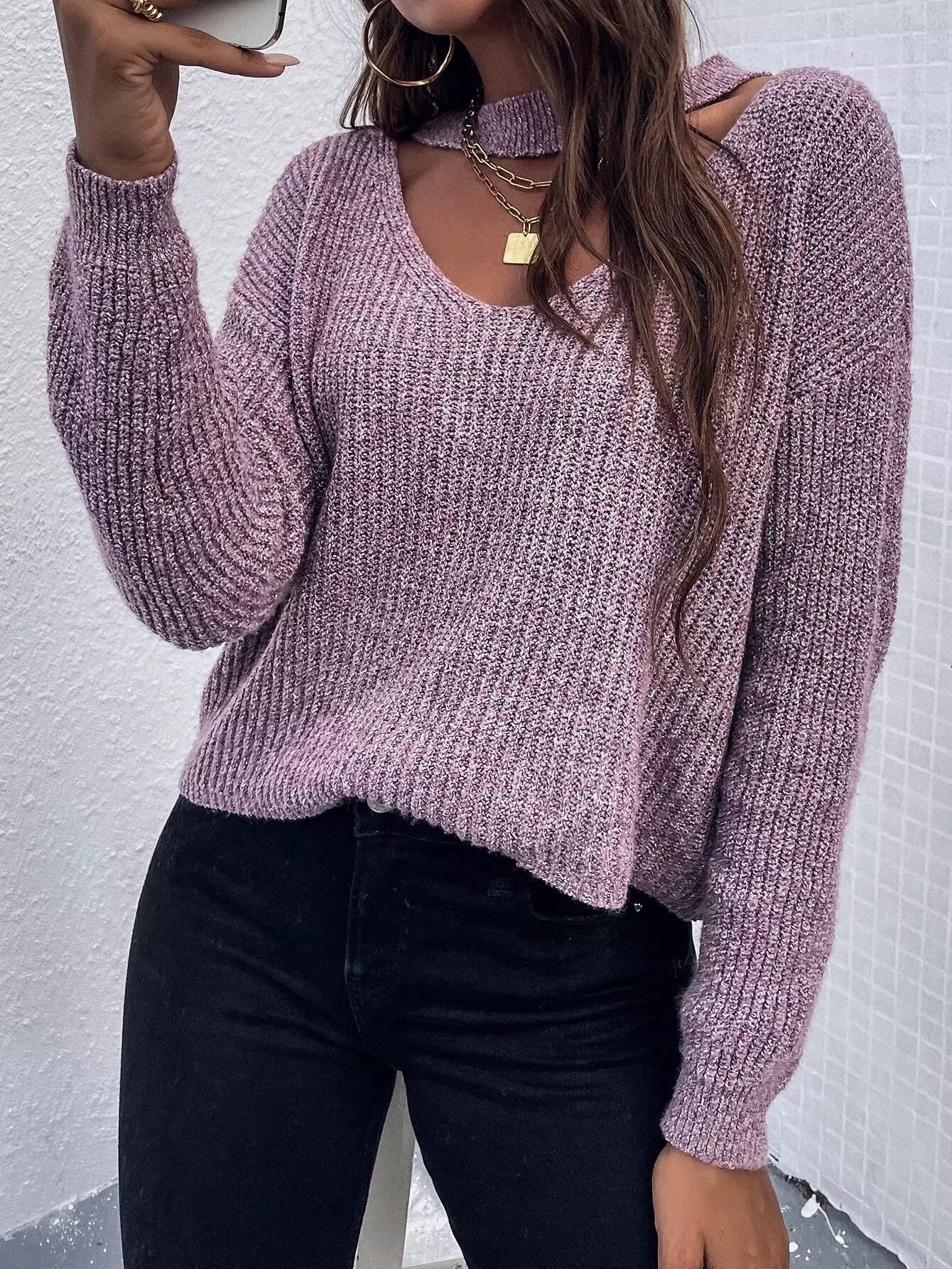 Drop Shoulder Cut-out Sweater