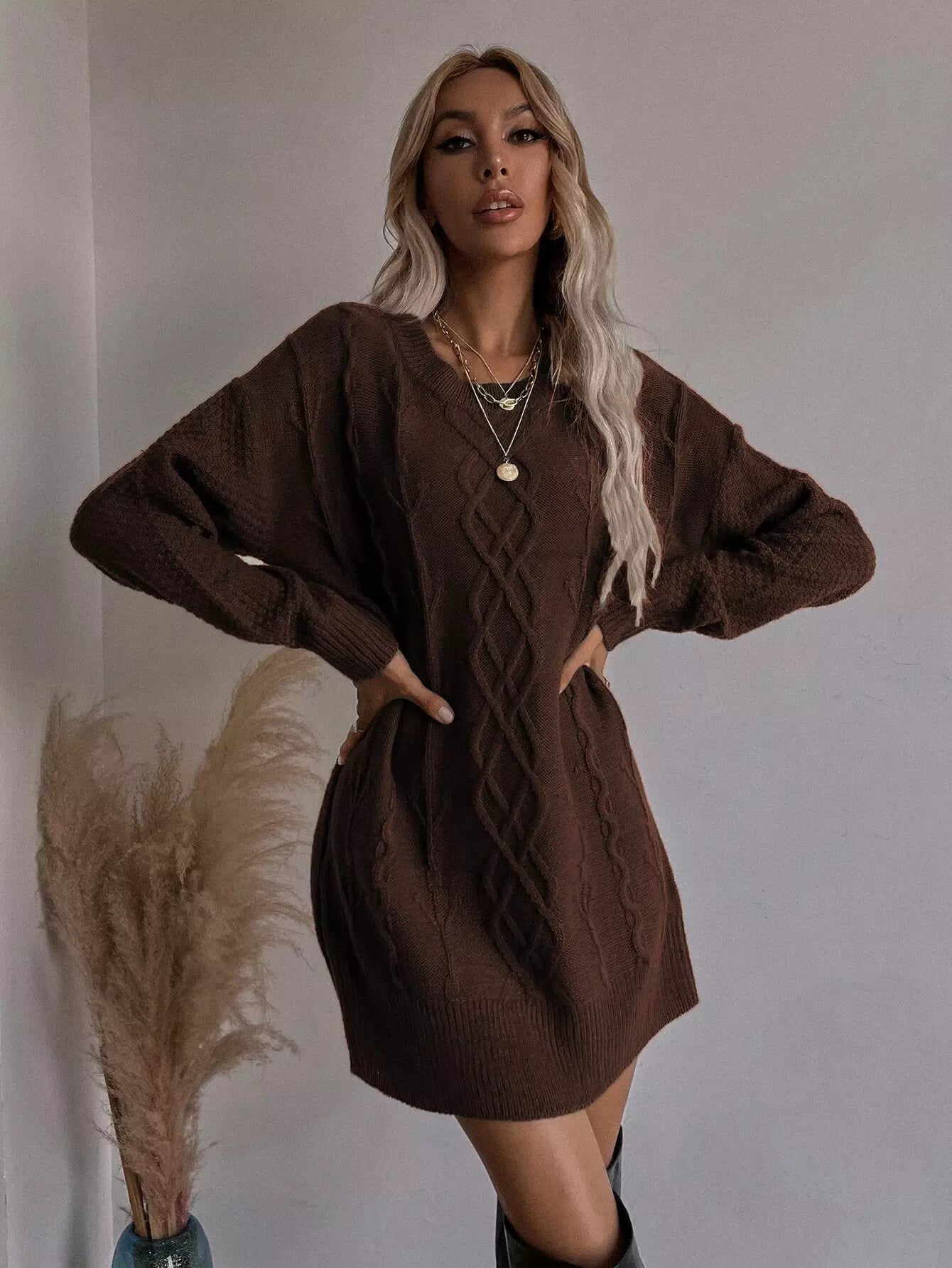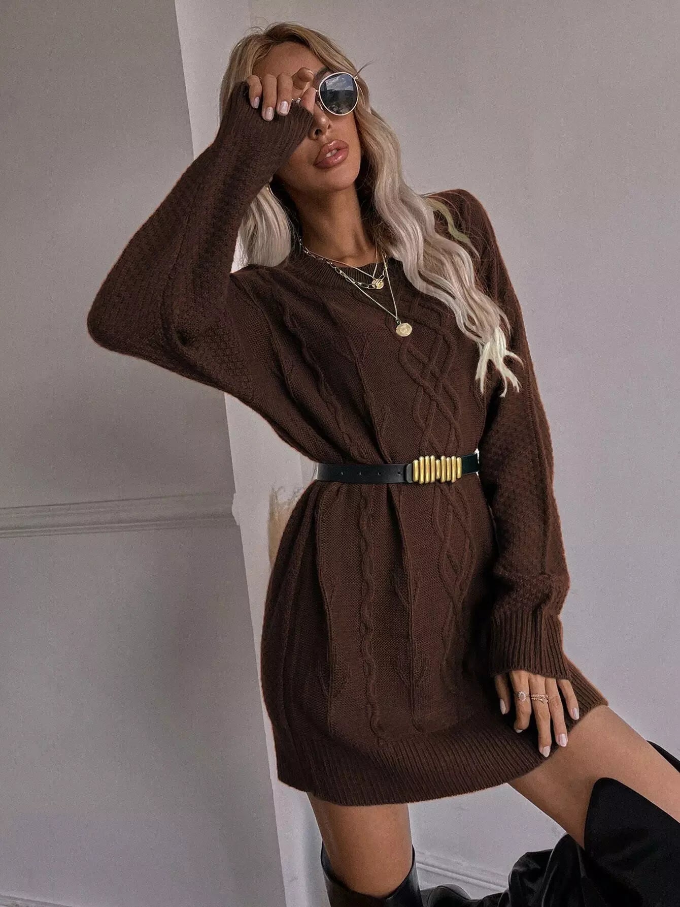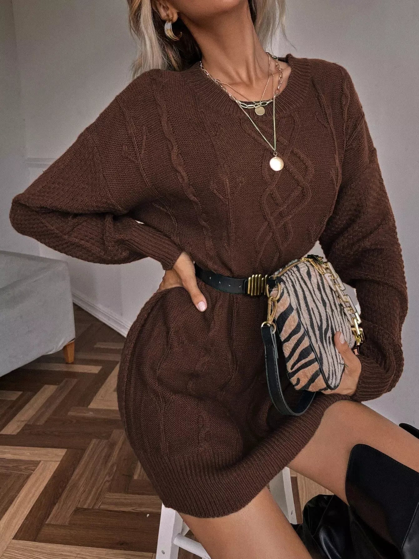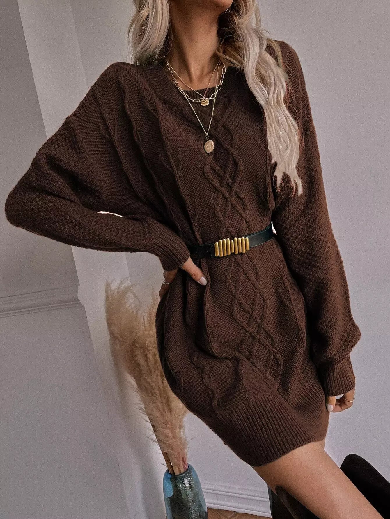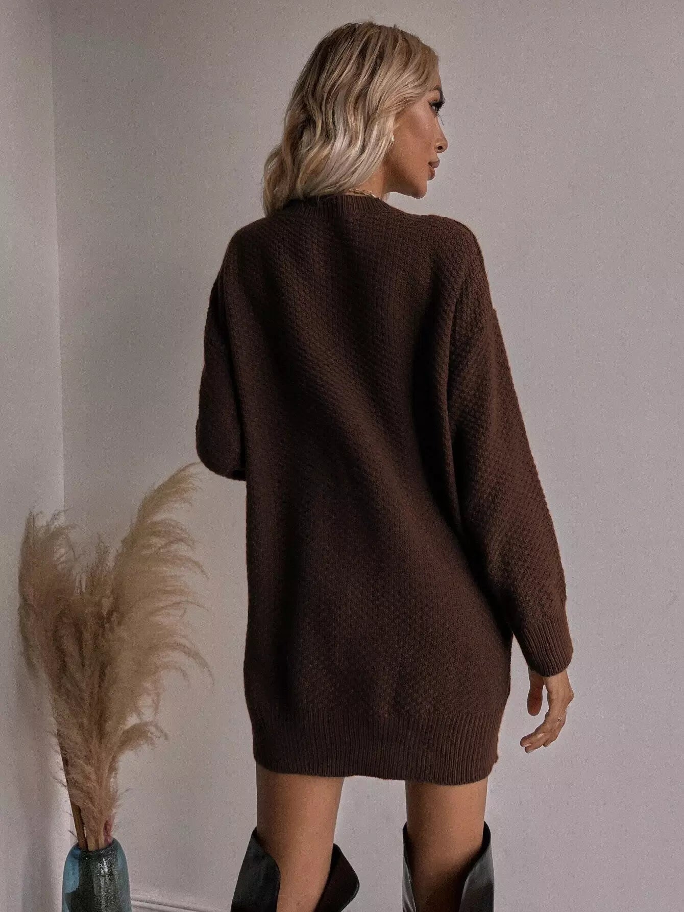 Drop Shoulder Longline Sweater Without Belt
