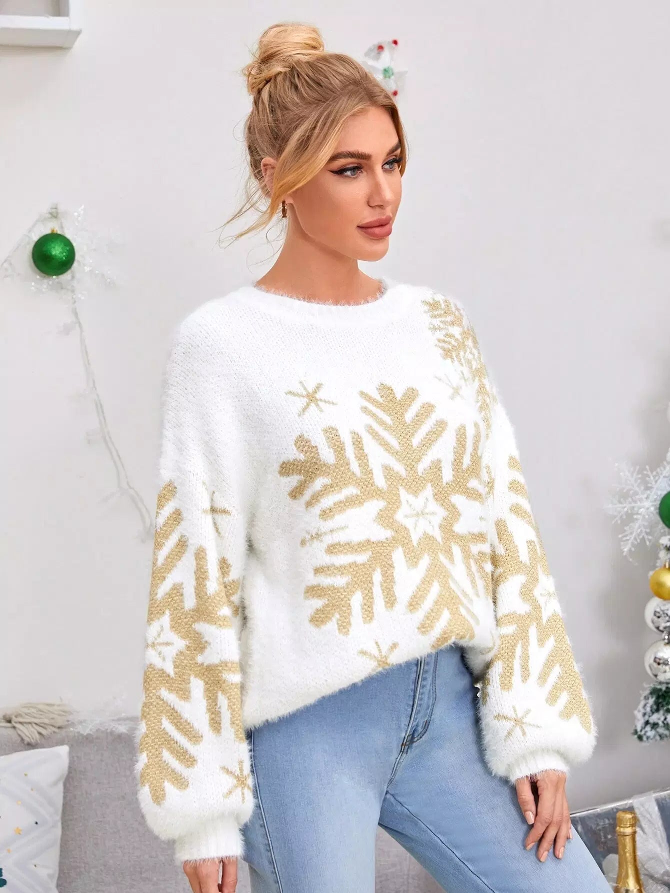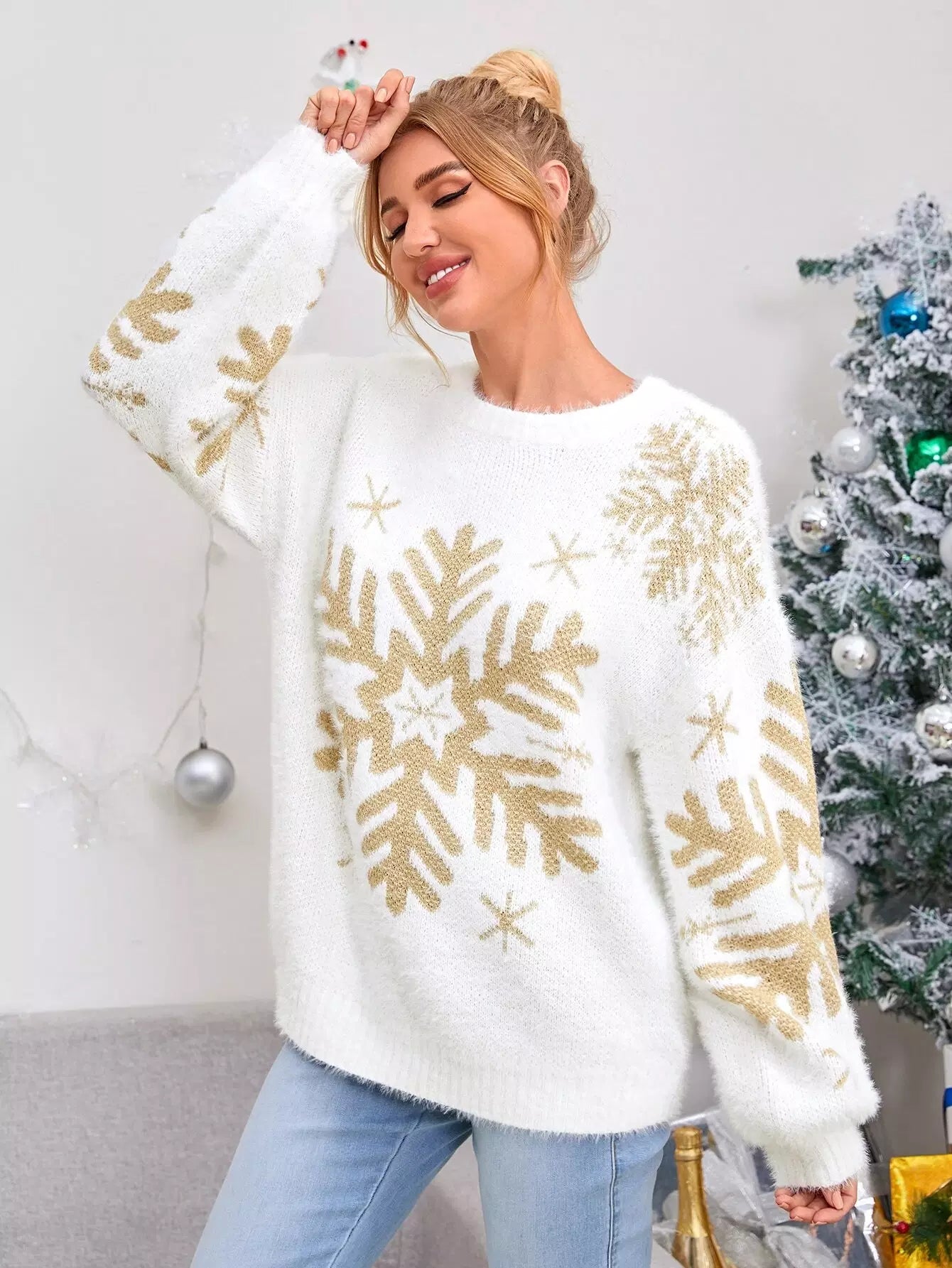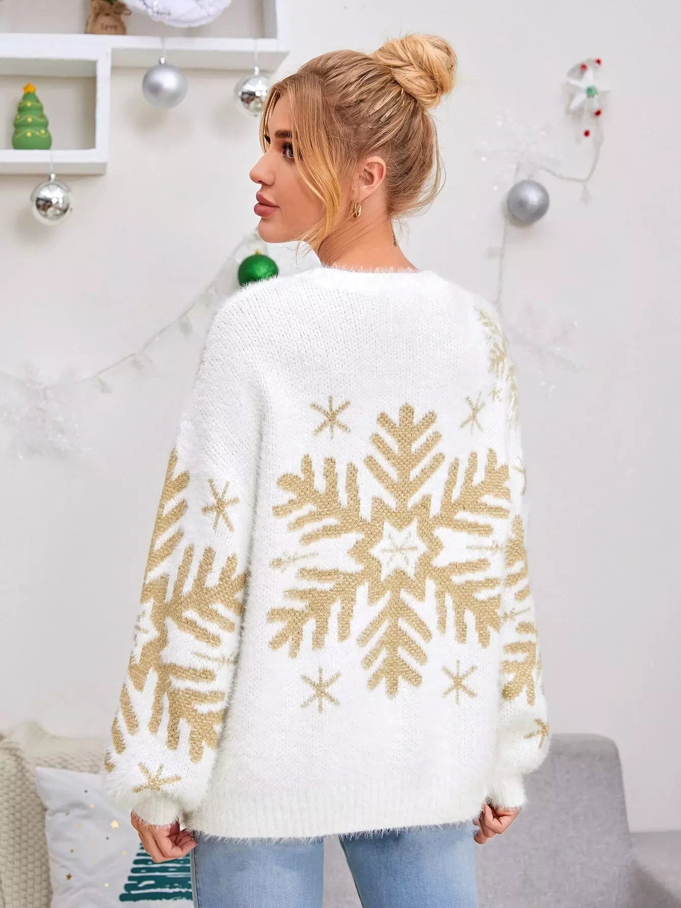 Drop Shoulder Snowflake Pattern Oversize Sweater
