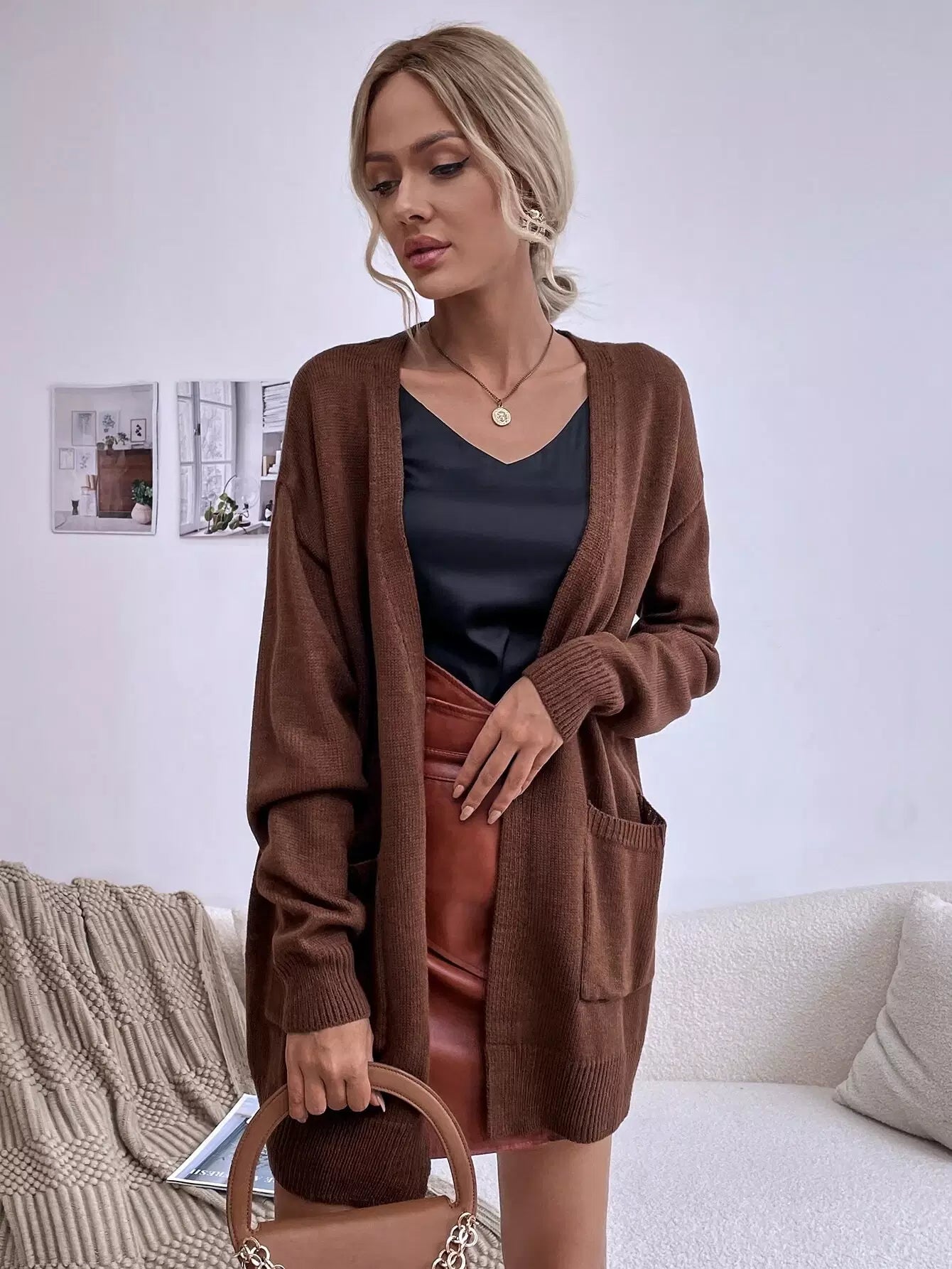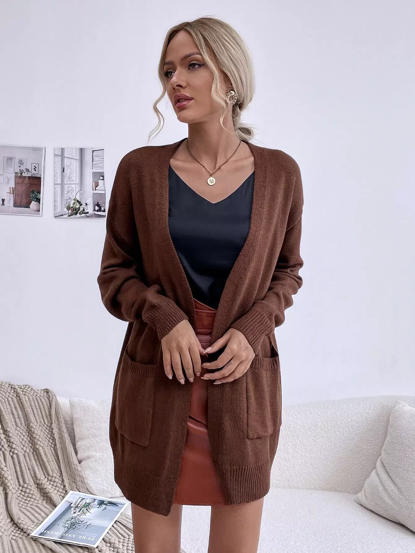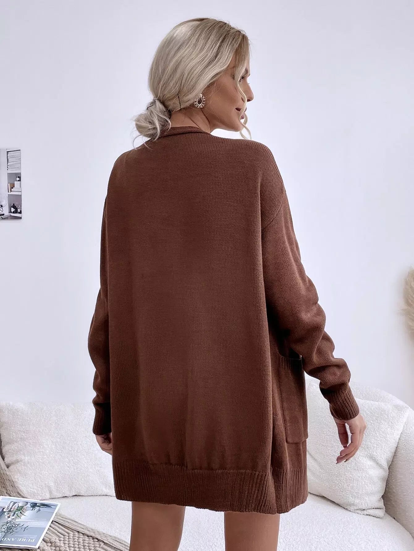 Dual Pockets Drop Shoulder Cardigan