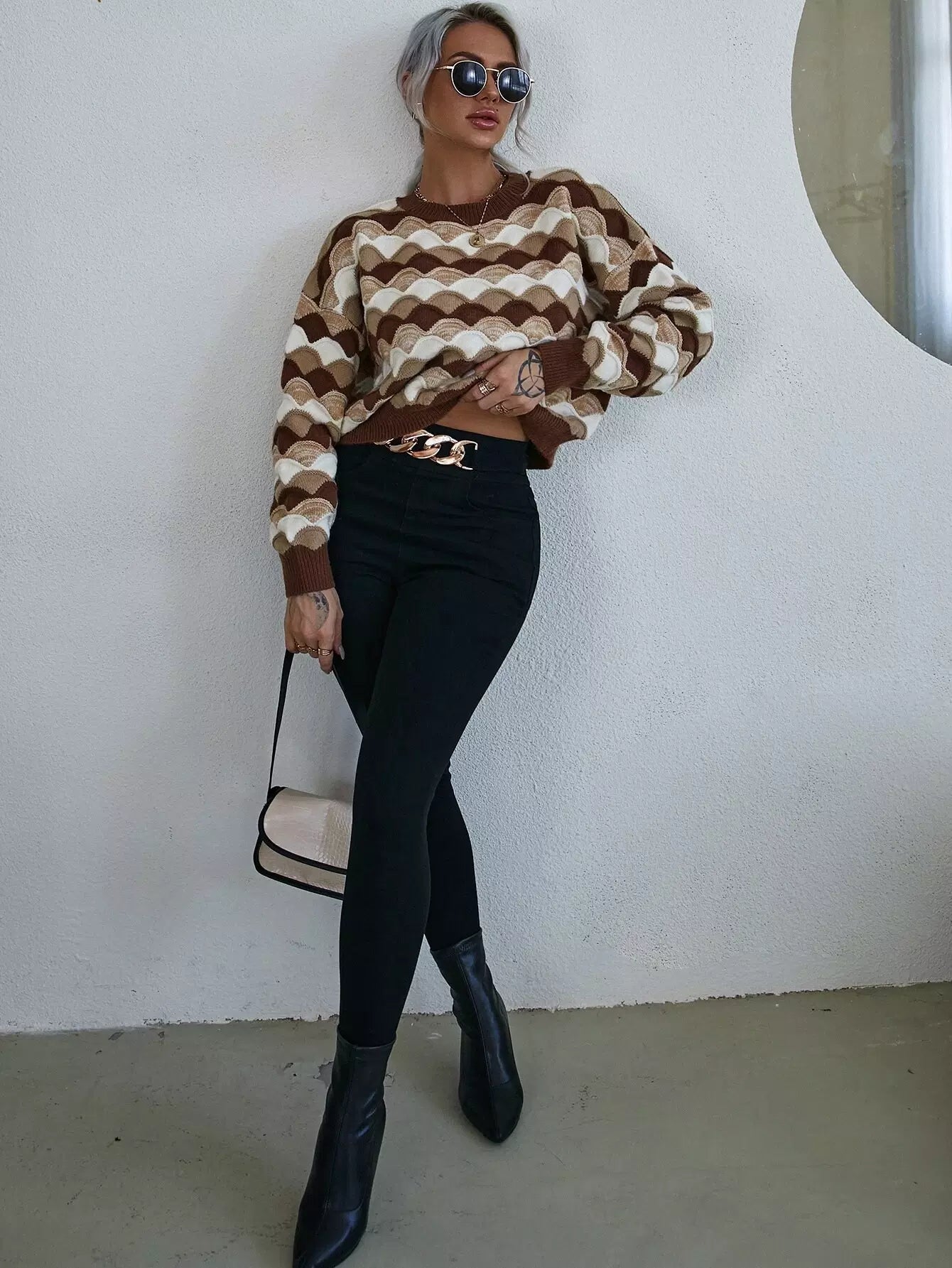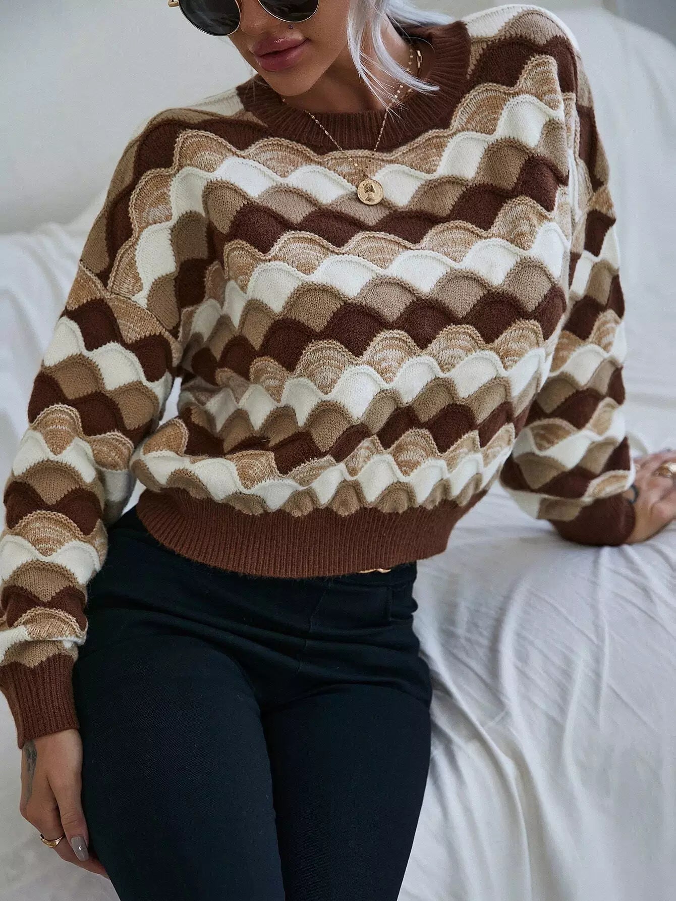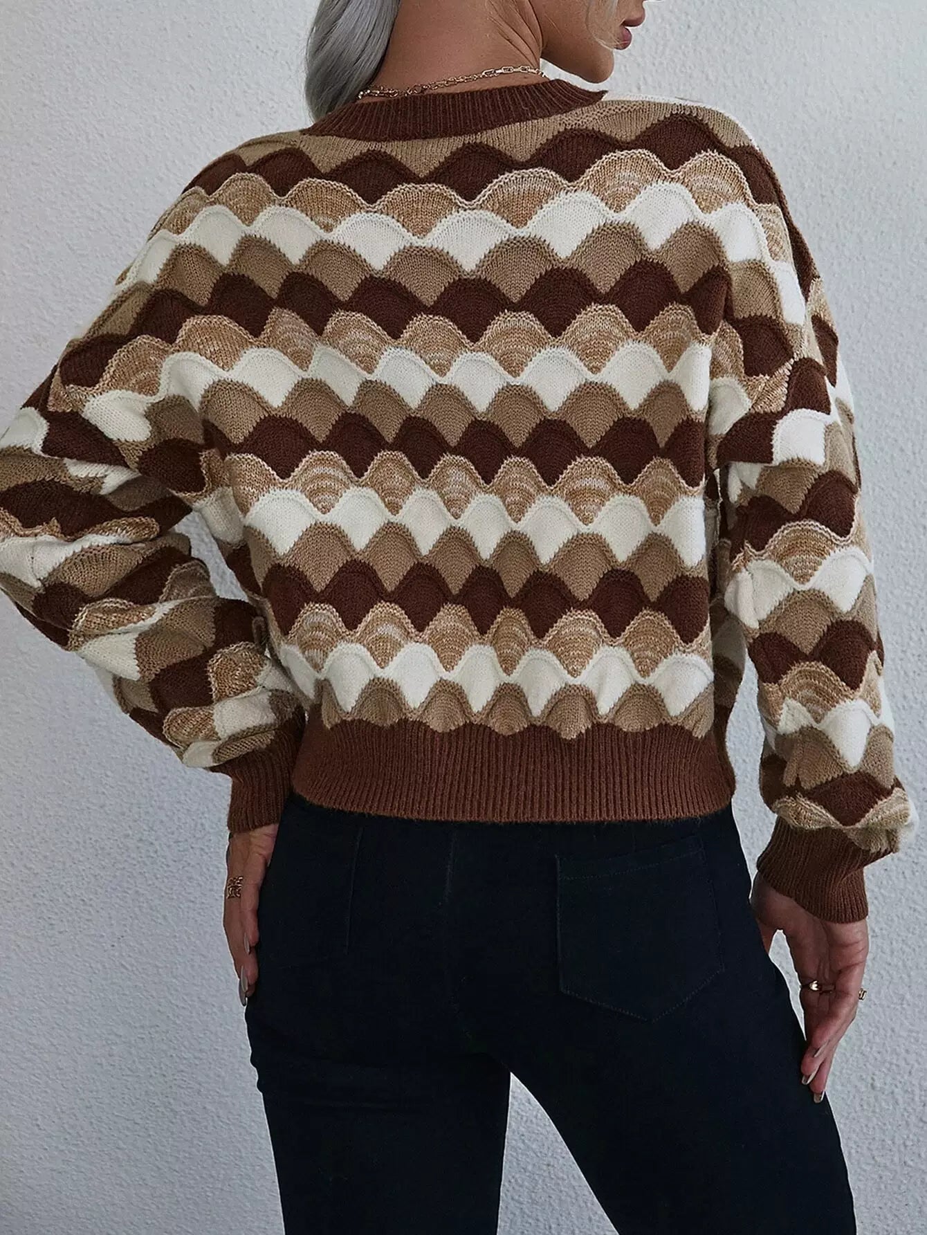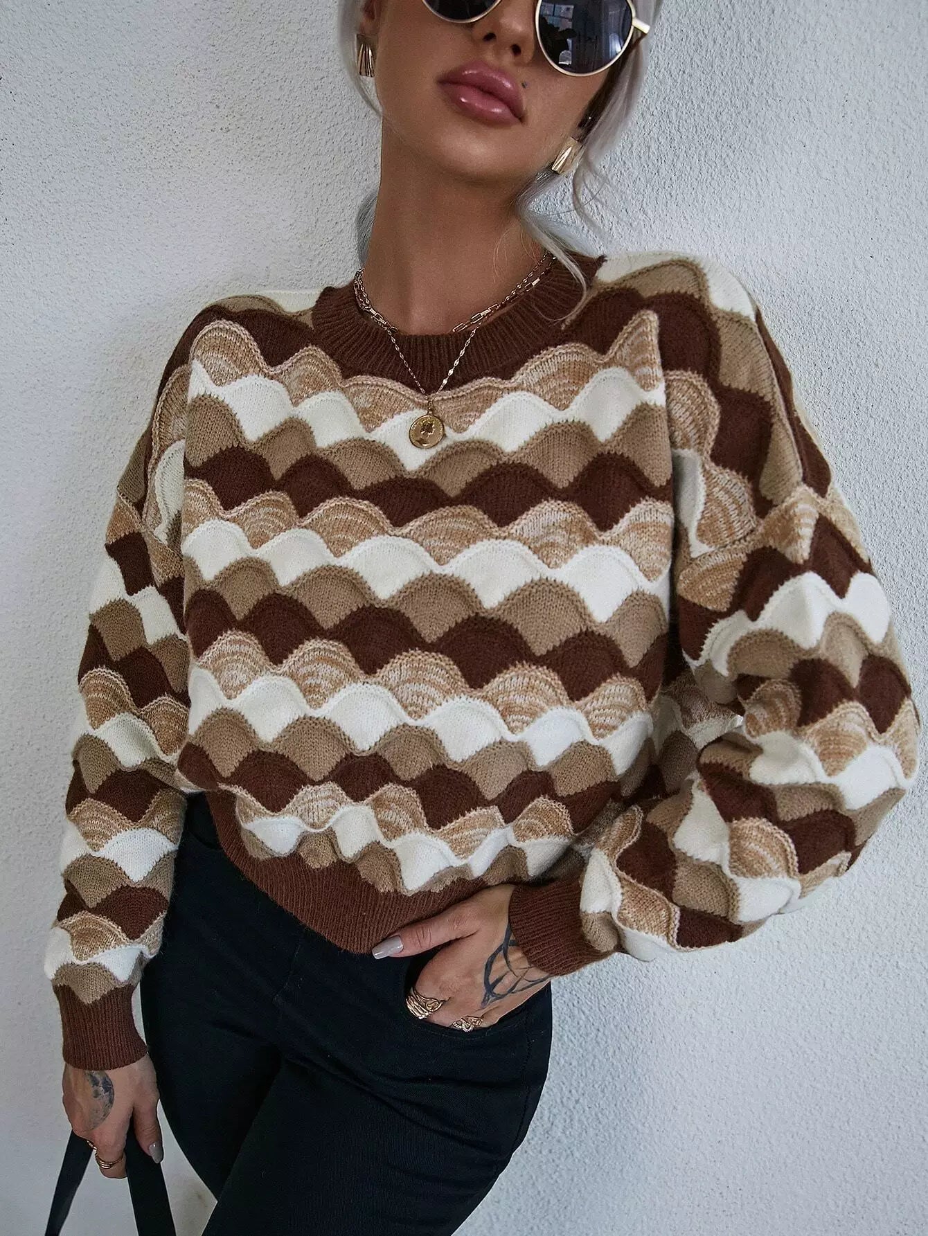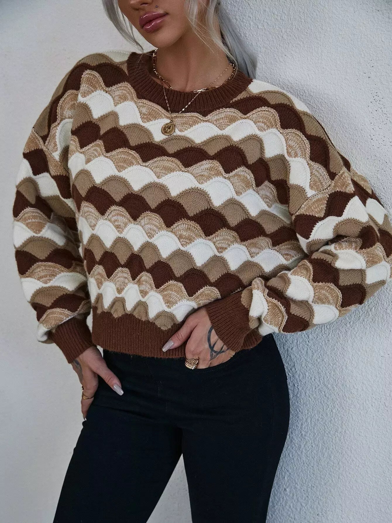 Women - Fish Scales Pattern Drop Shoulder Sweater