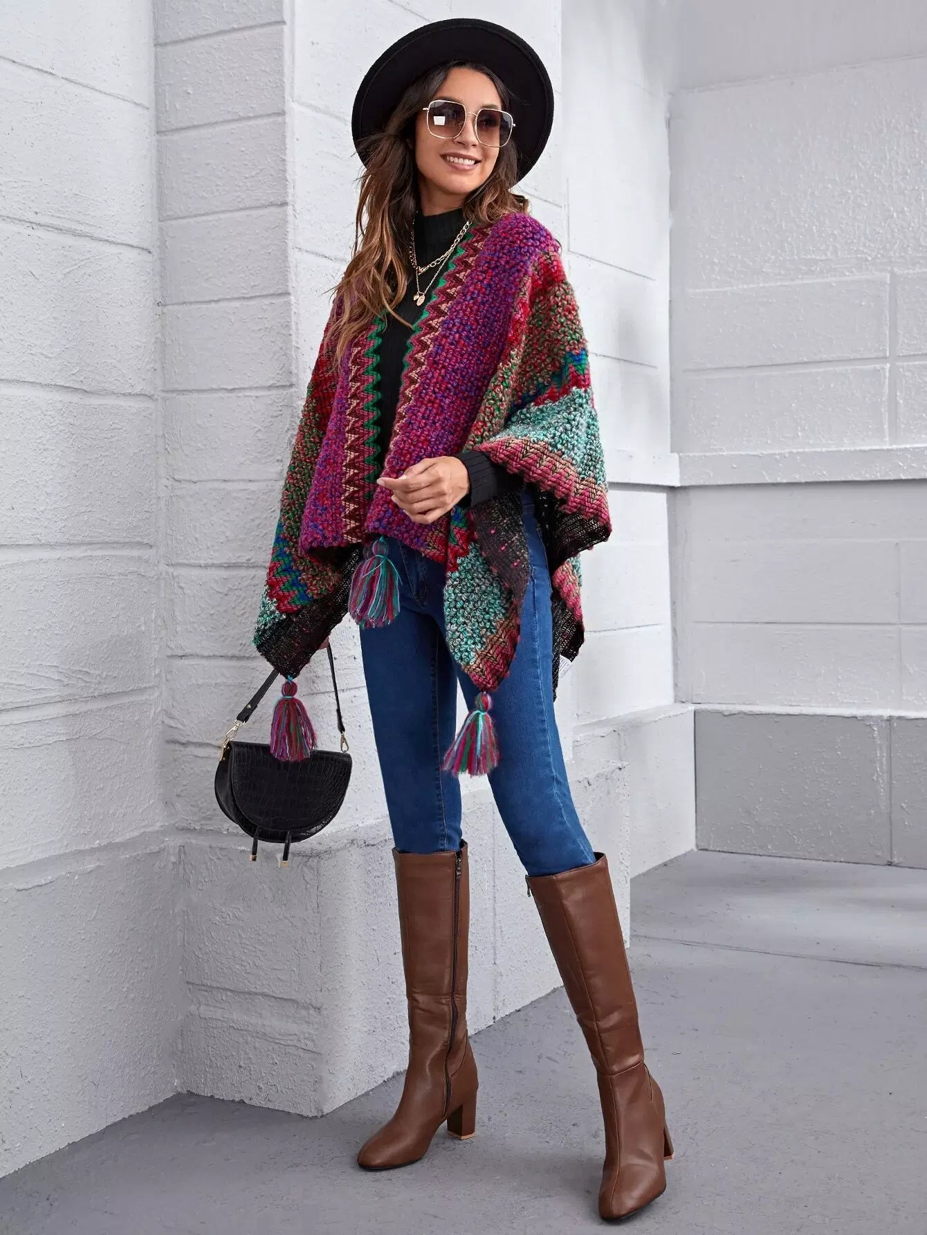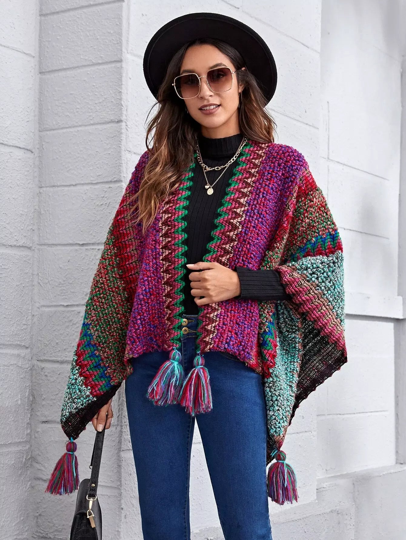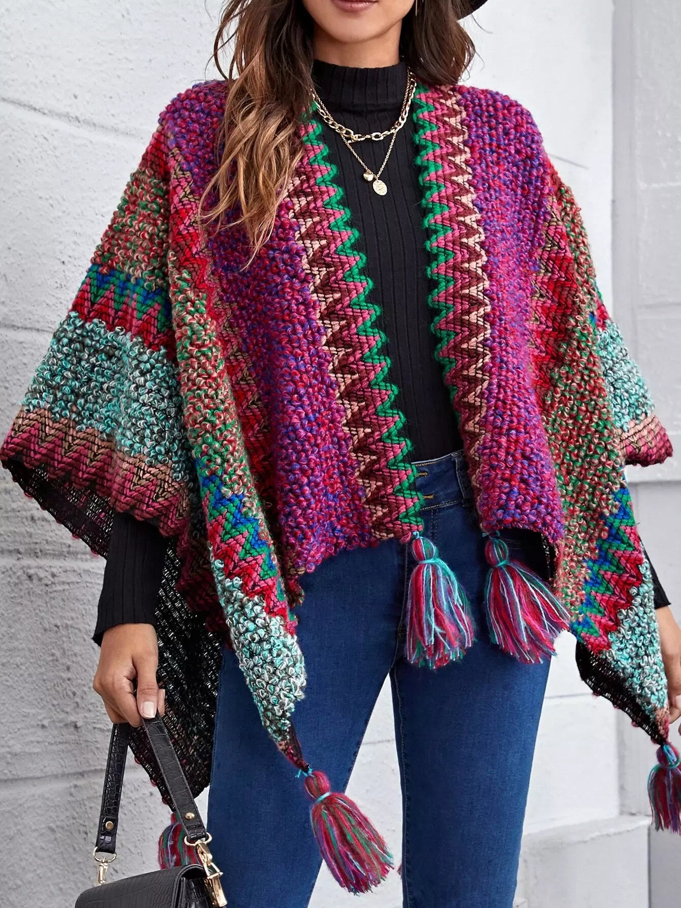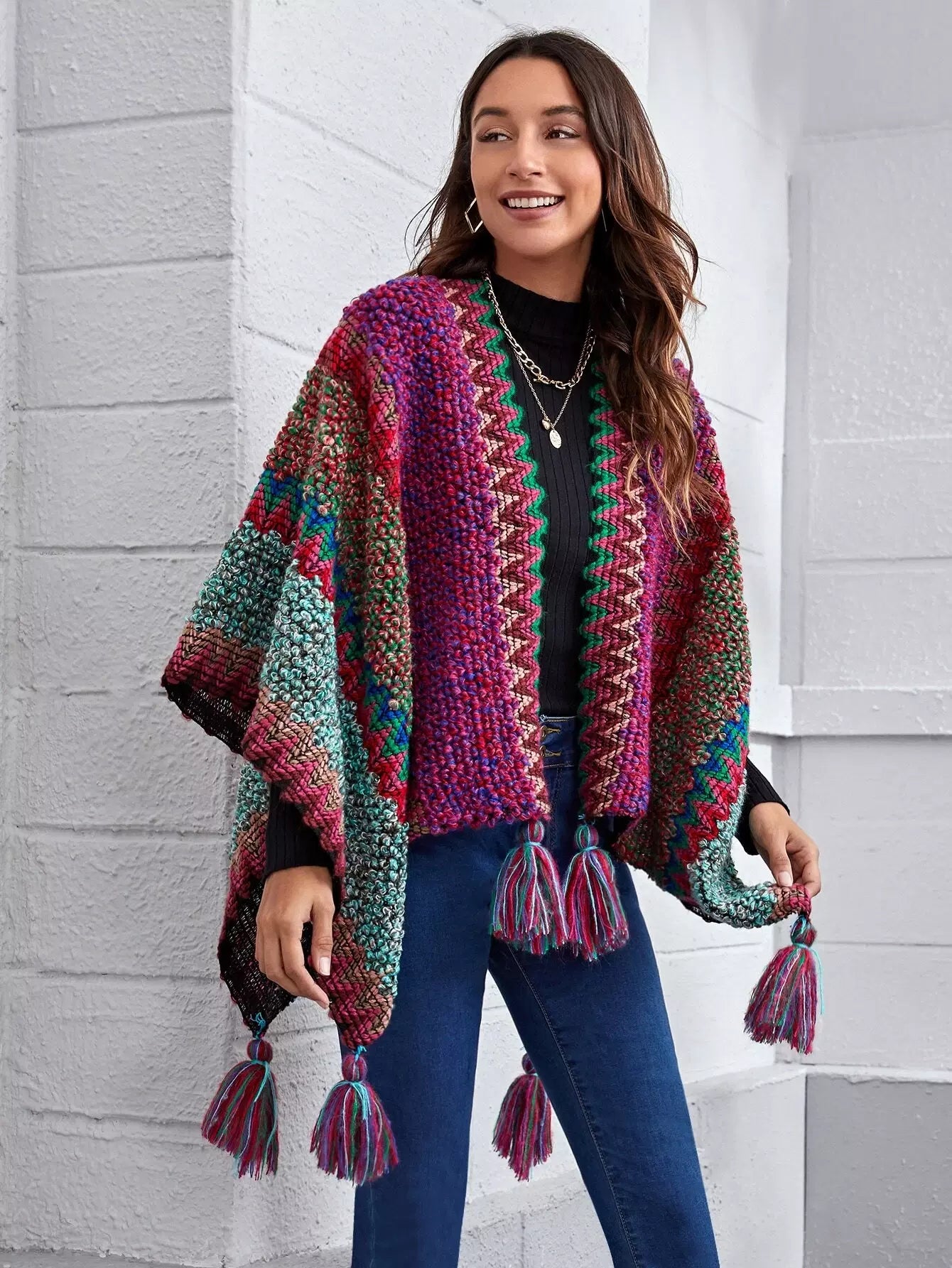 Fringe Hem Cloak Sleeve Cardigan