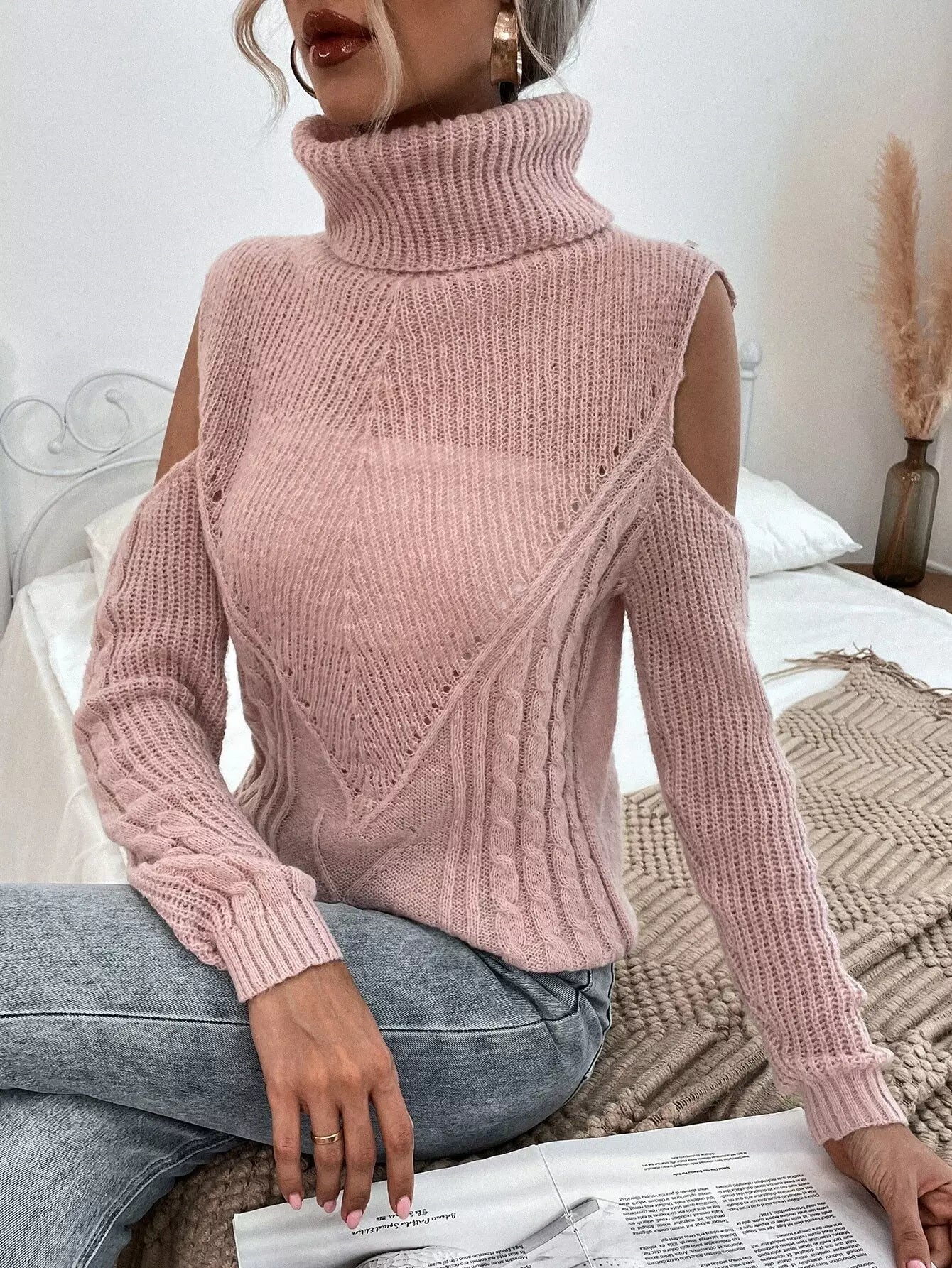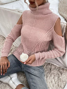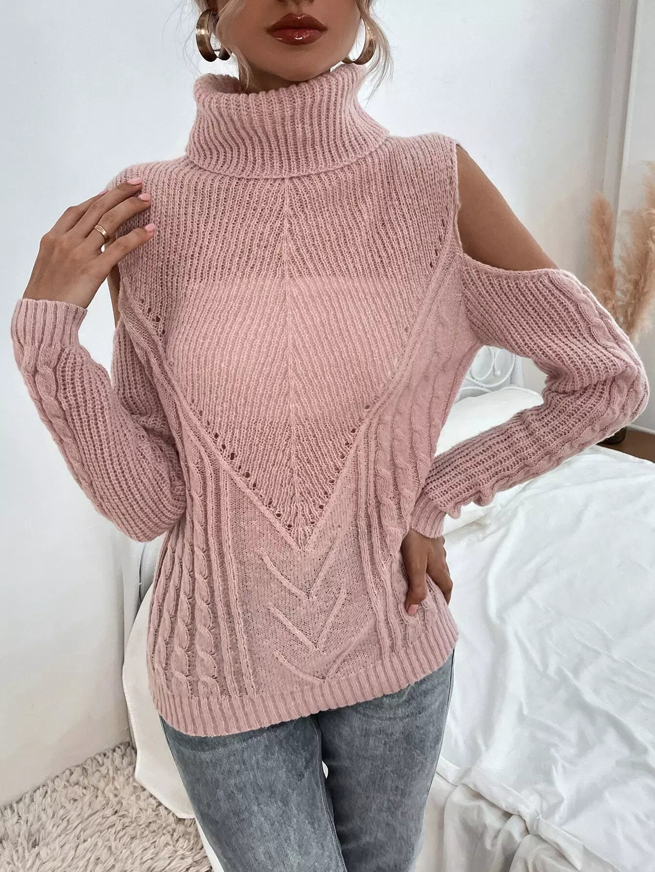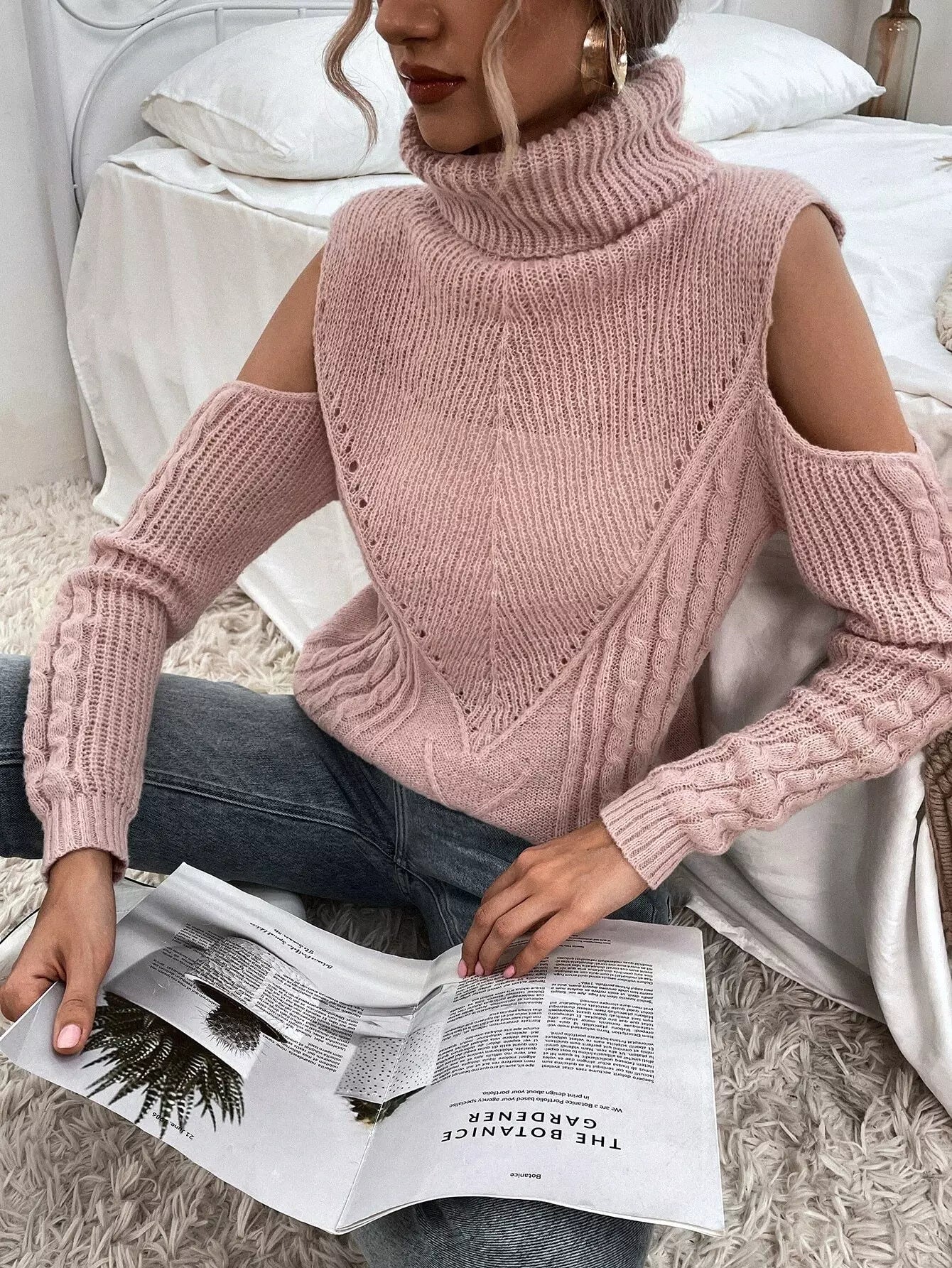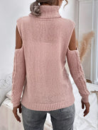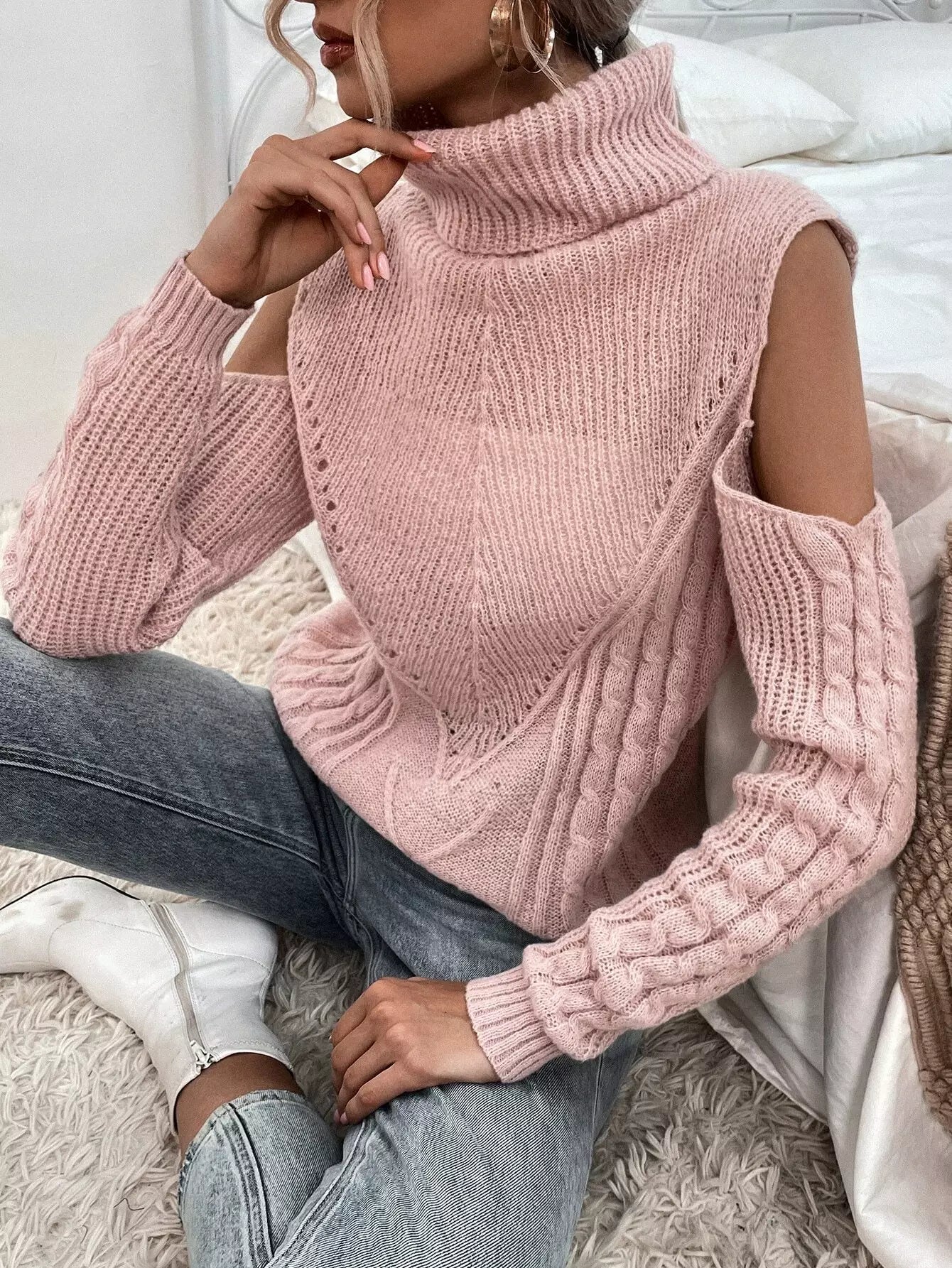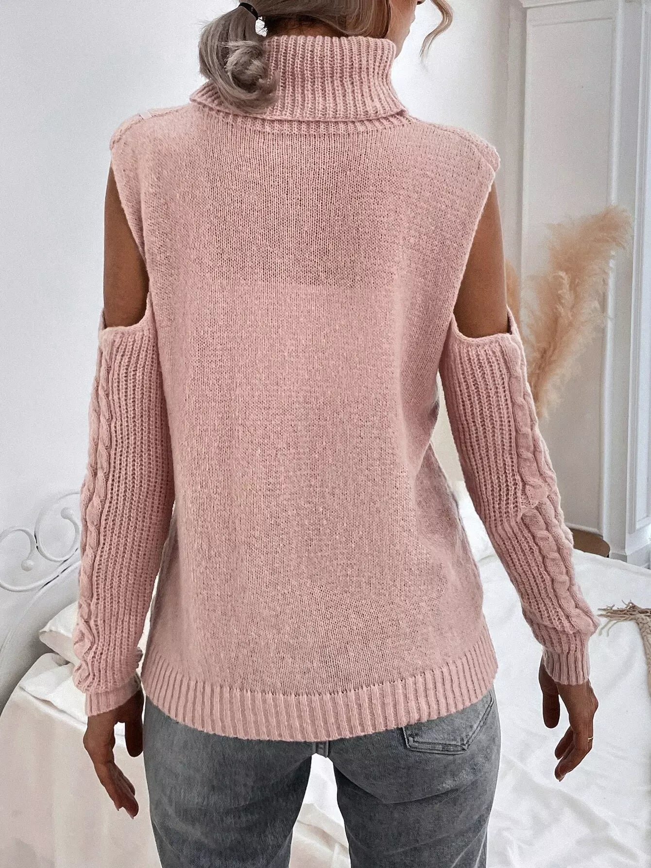 Funnel Collar Cold Shoulder Cable Knit Sweater