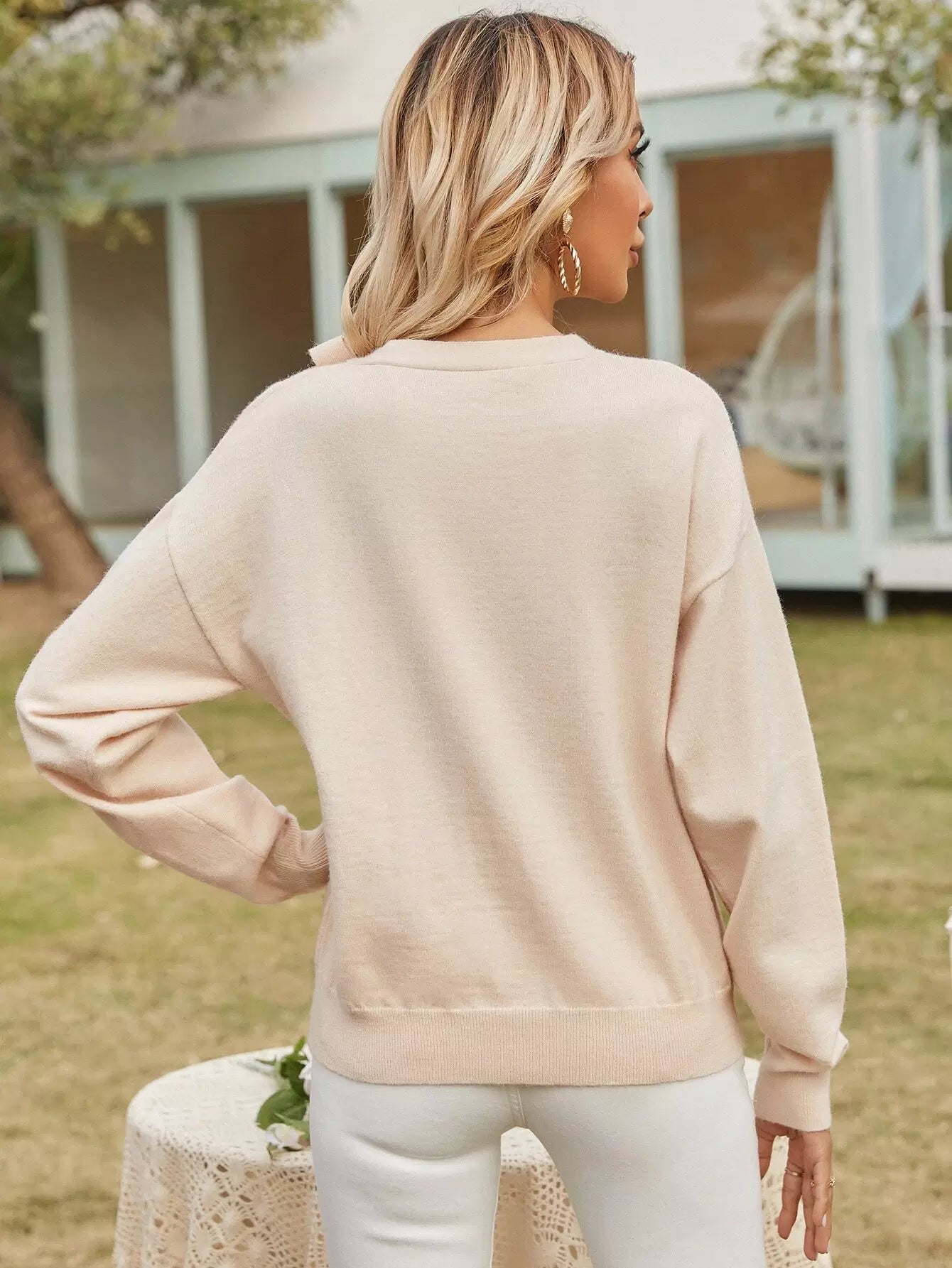 Knot Front Drop Shoulder Sweater