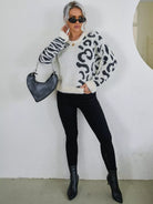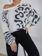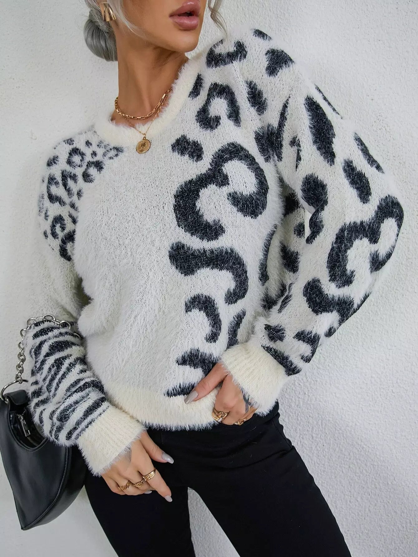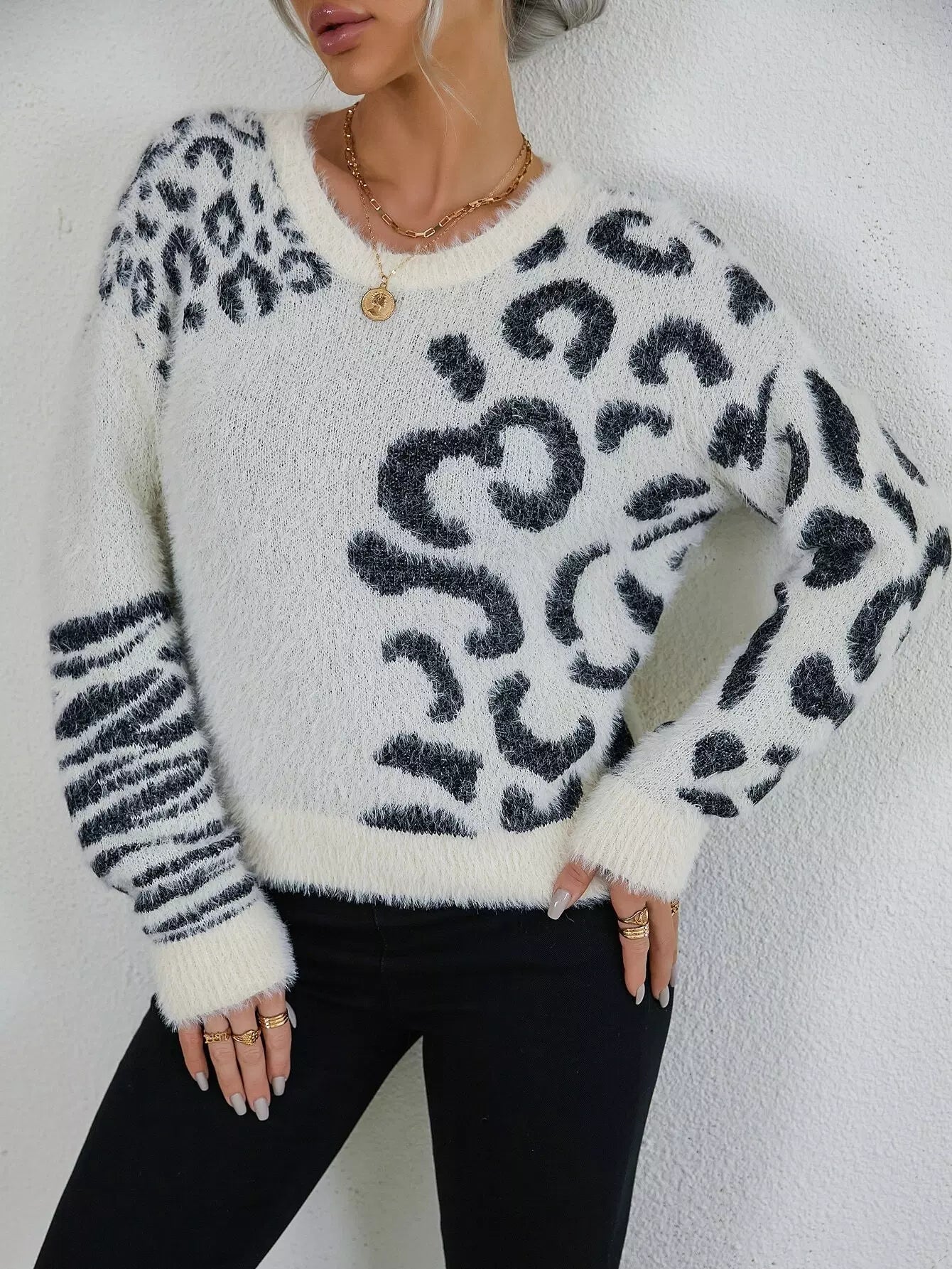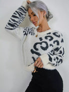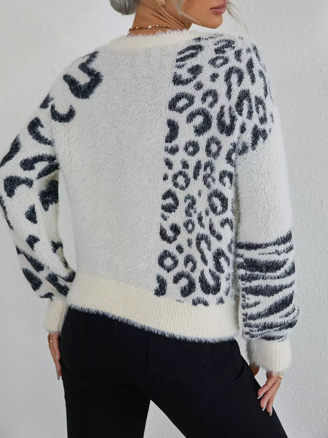 Leopard & Zebra Stripe Pattern Fluffy Knit Sweater