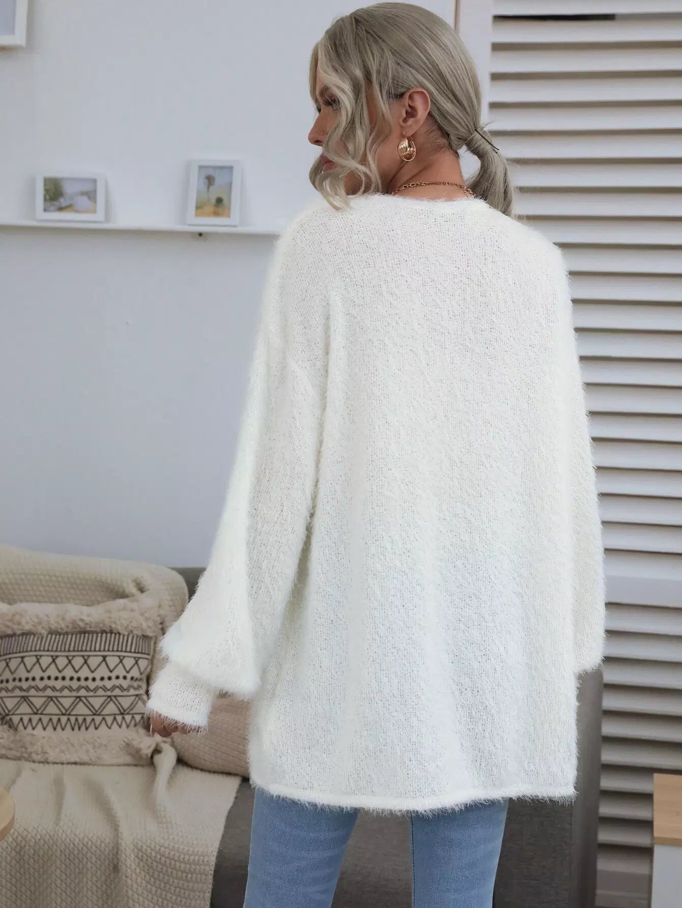 Women - Open Front Drop Shoulder Fuzzy Cardigan
