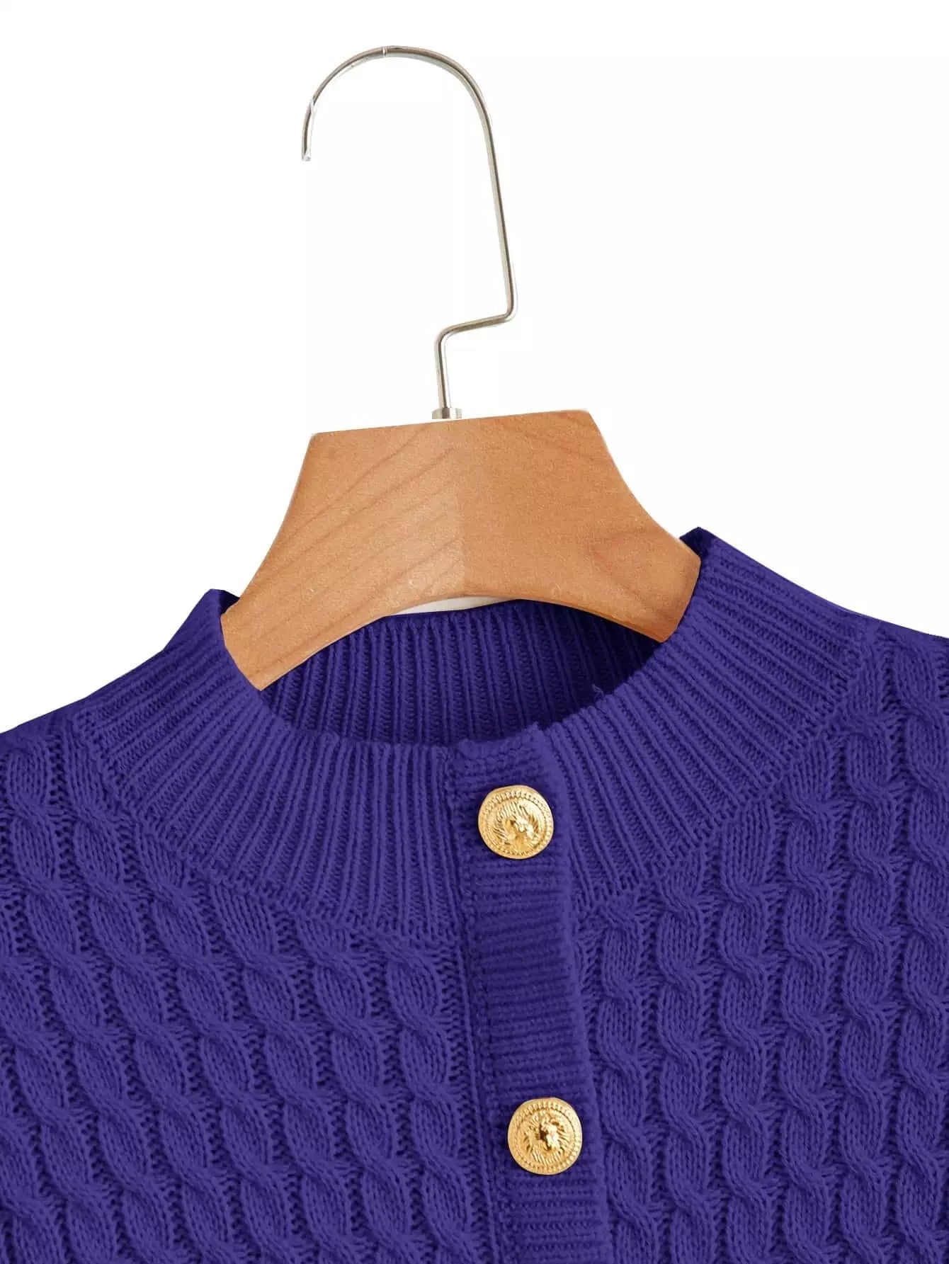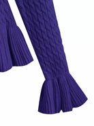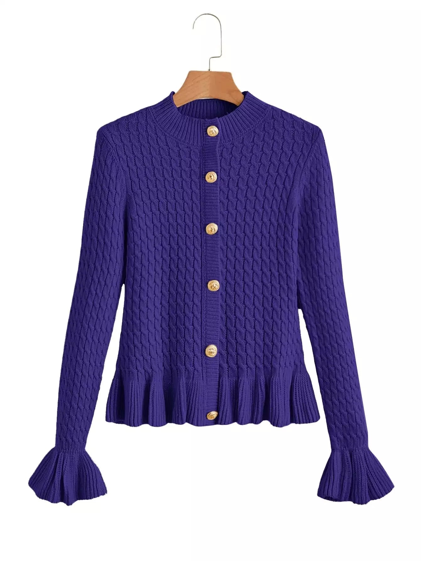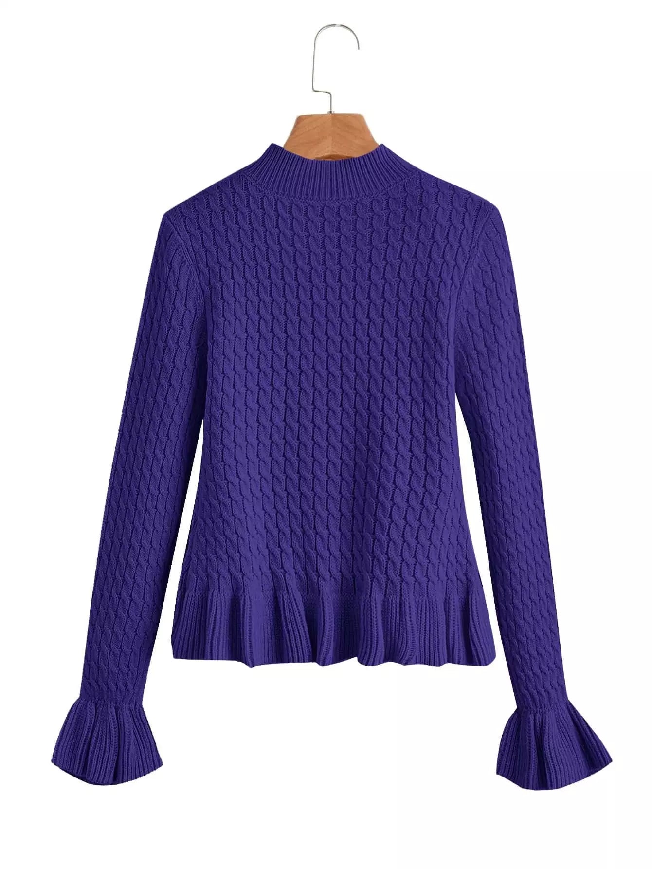 Peplum Hem Flounce Sleeve Mock Neck Cable Knit Sweater