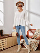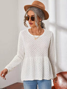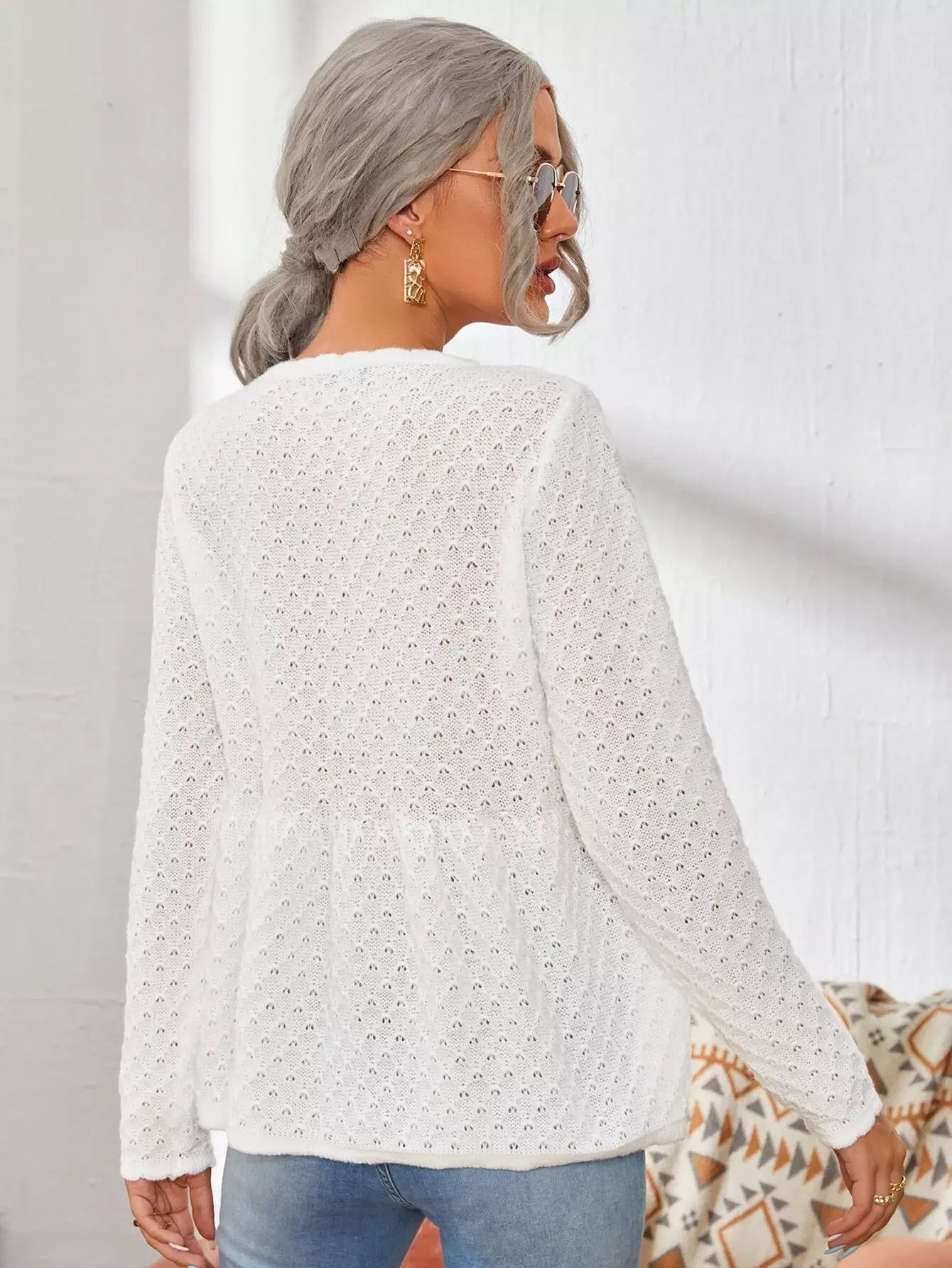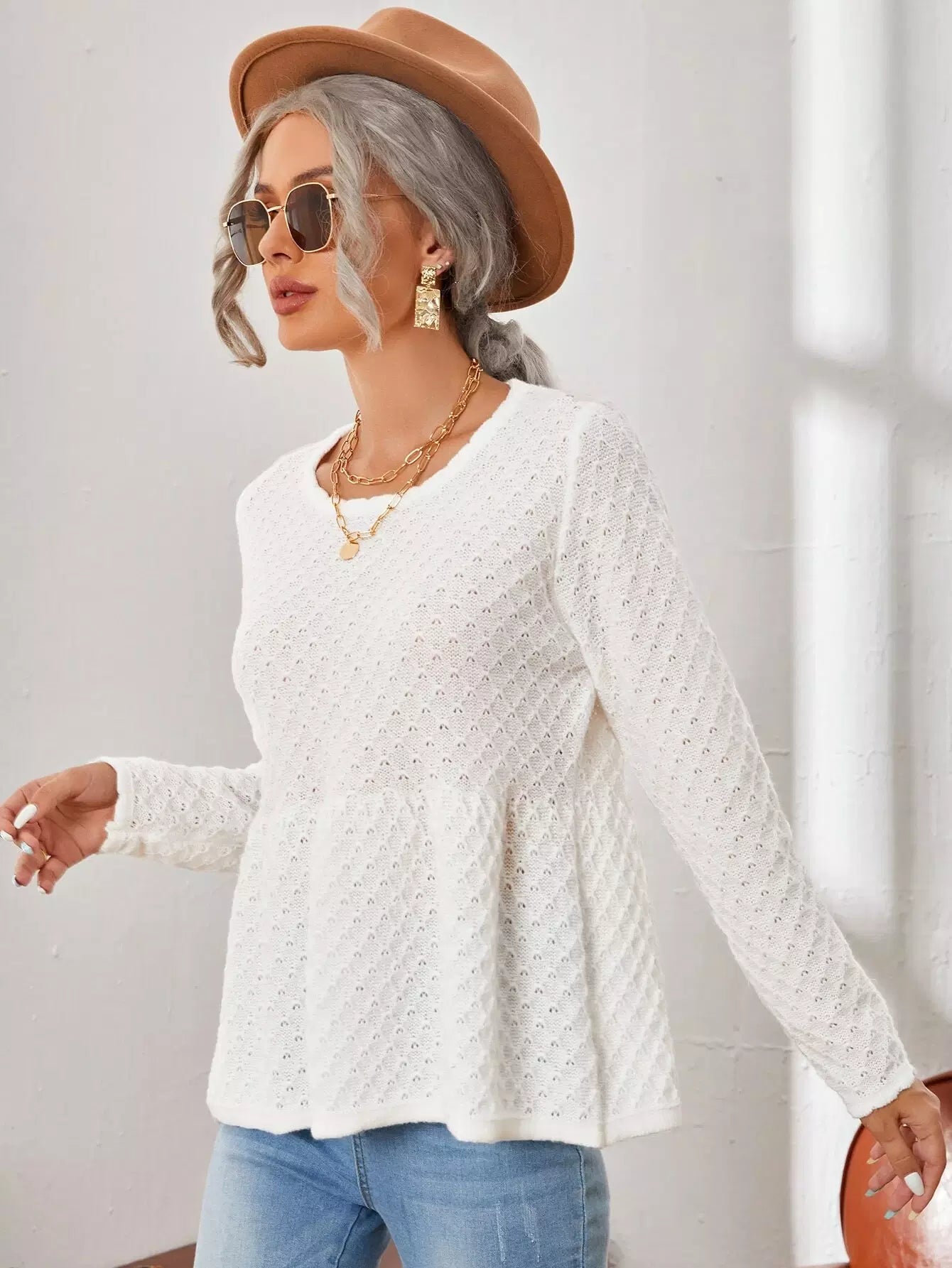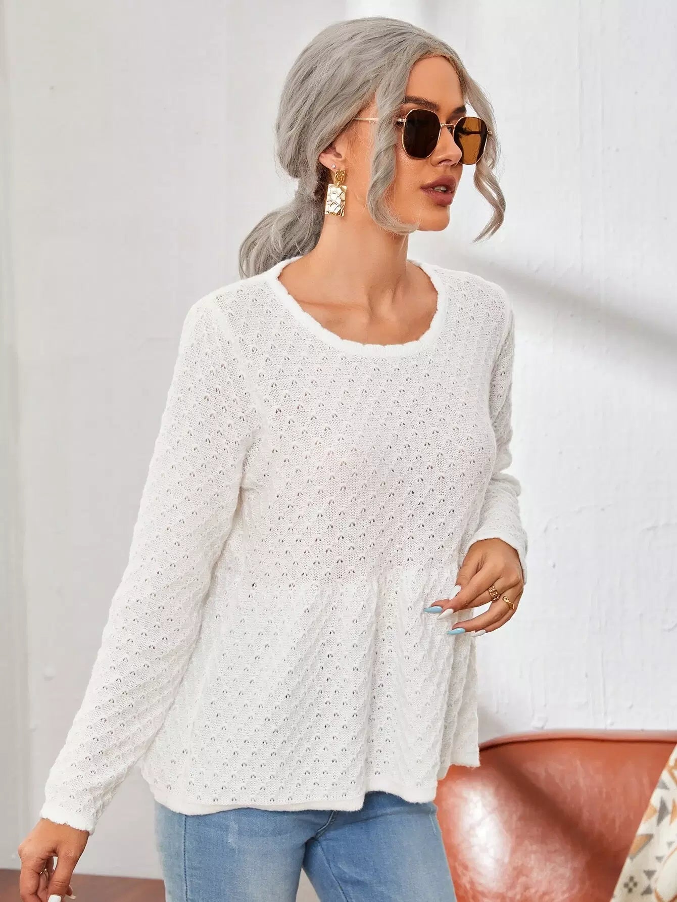 Pointelle Knit Ruffle Hem Peplum Sweater
