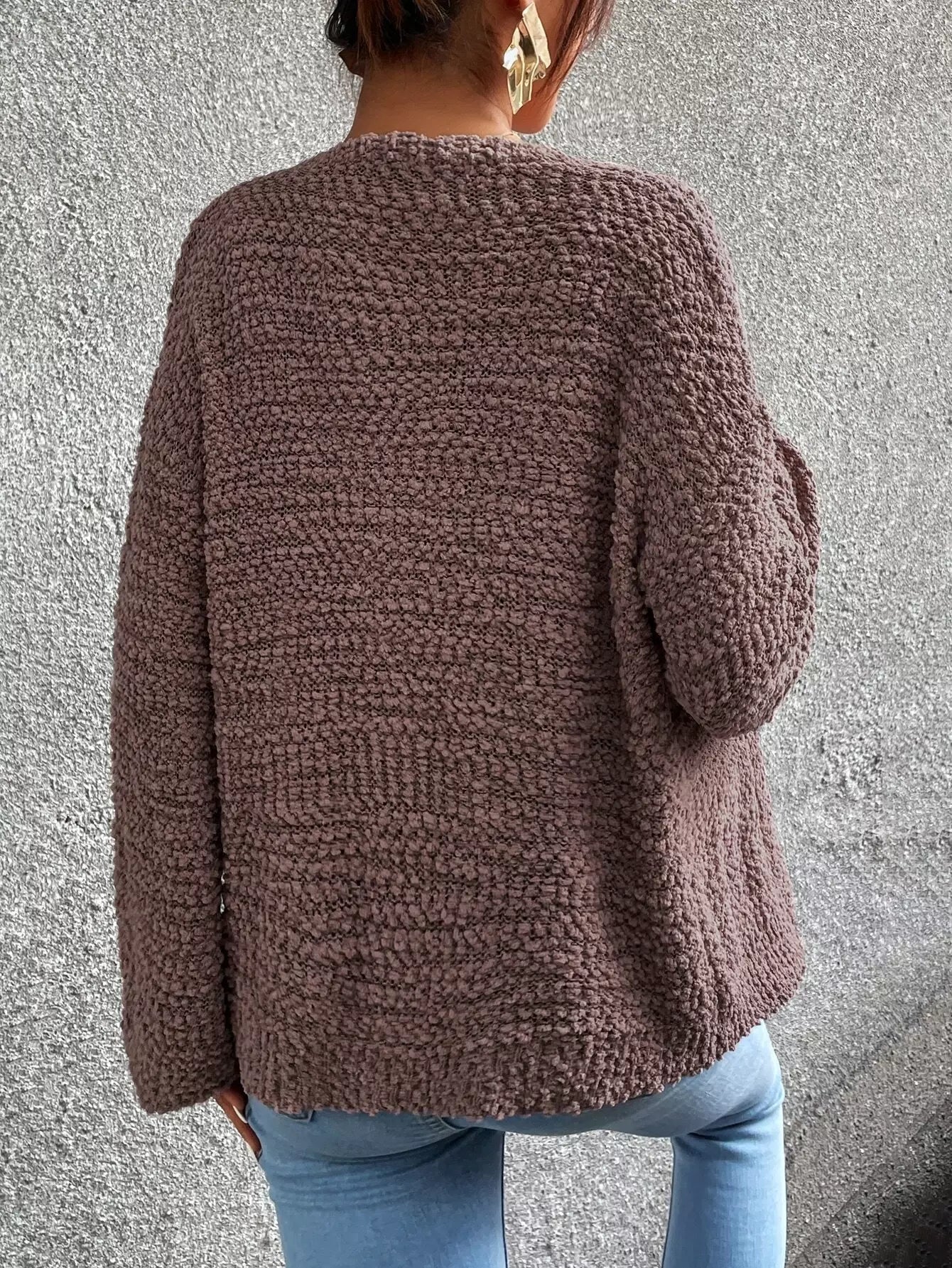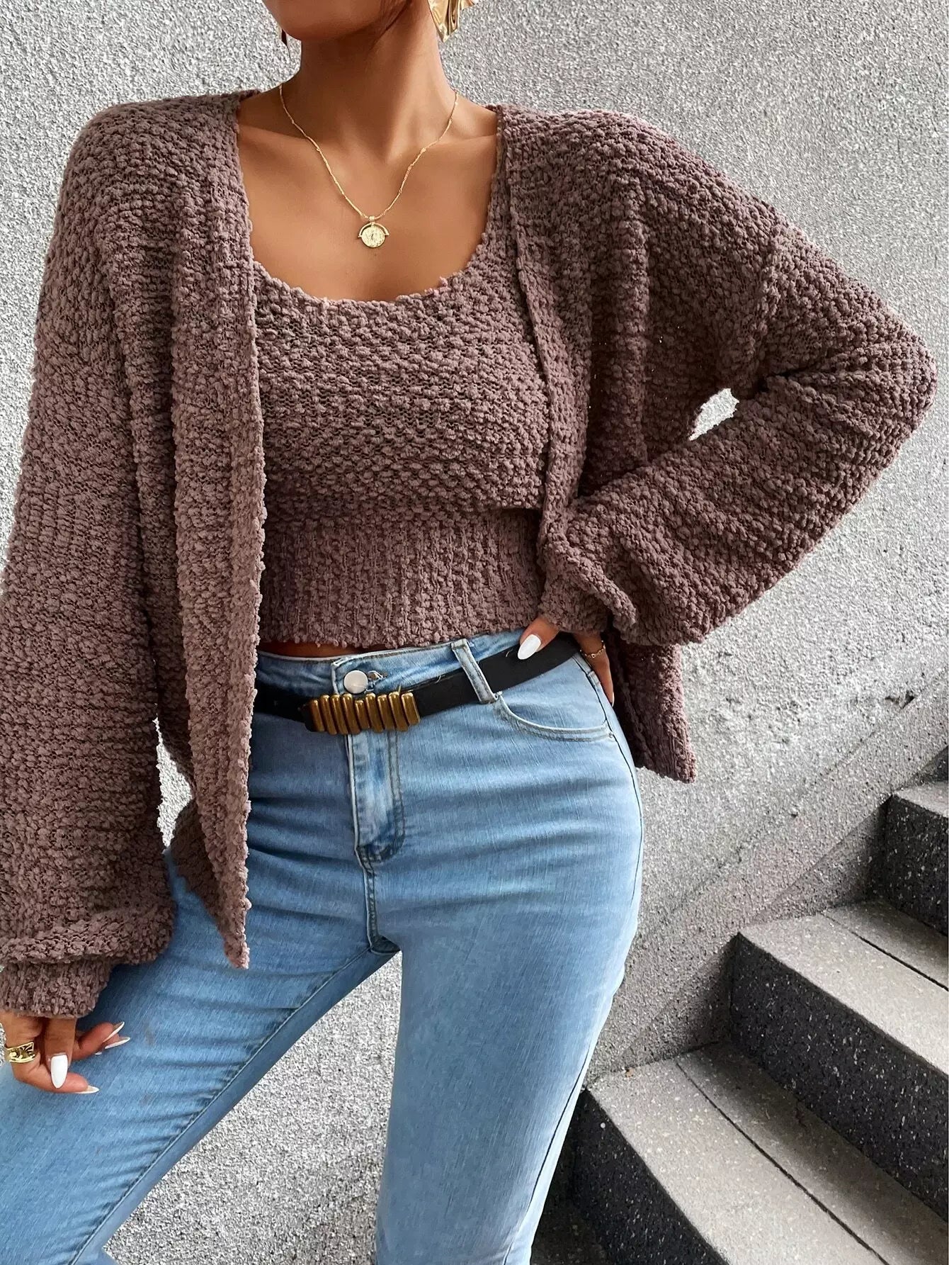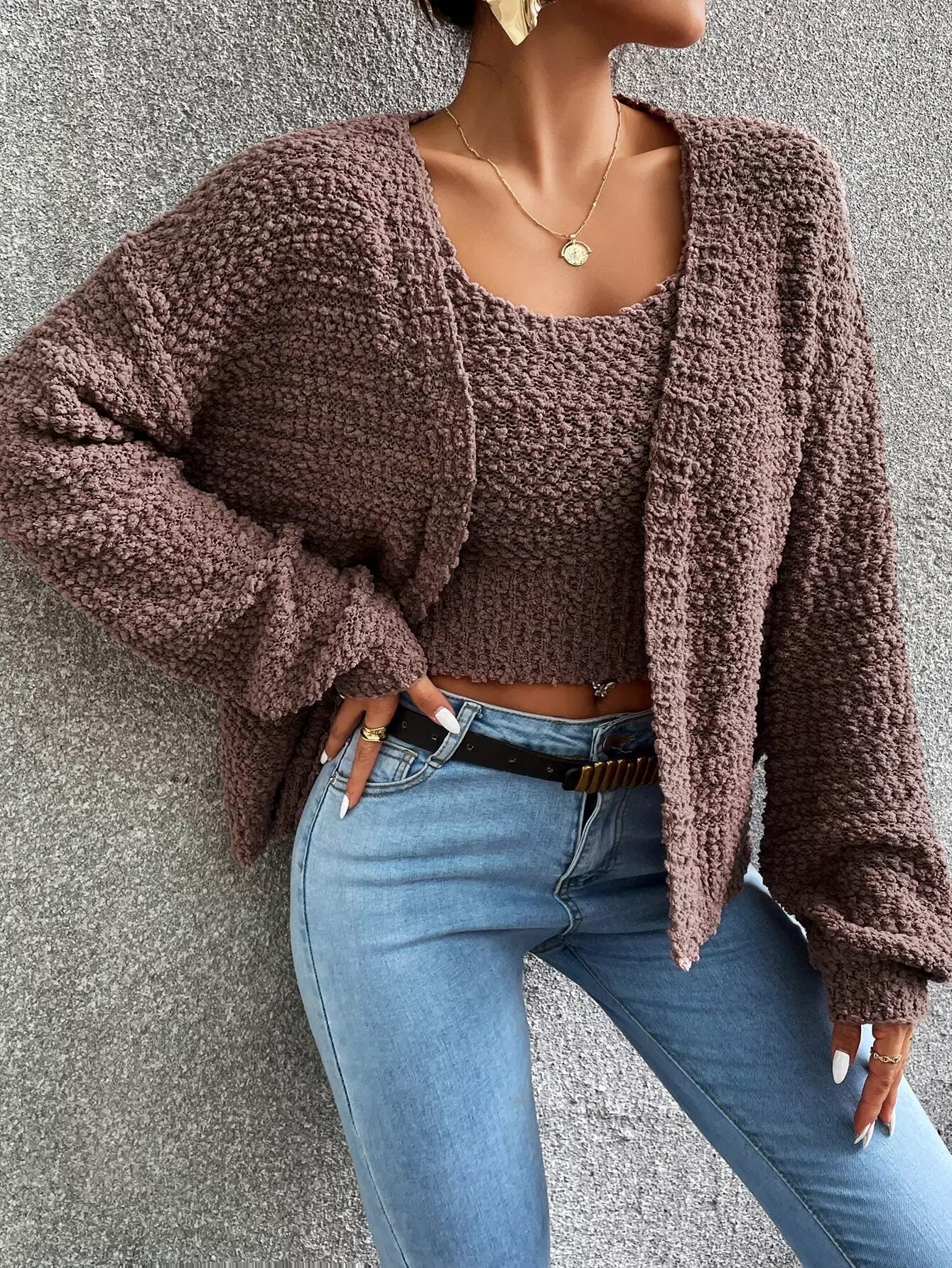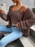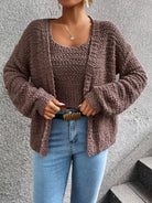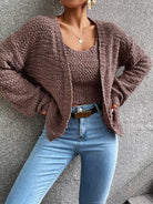 Popcorn Knit Drop Shoulder Cardigan & Knit Top