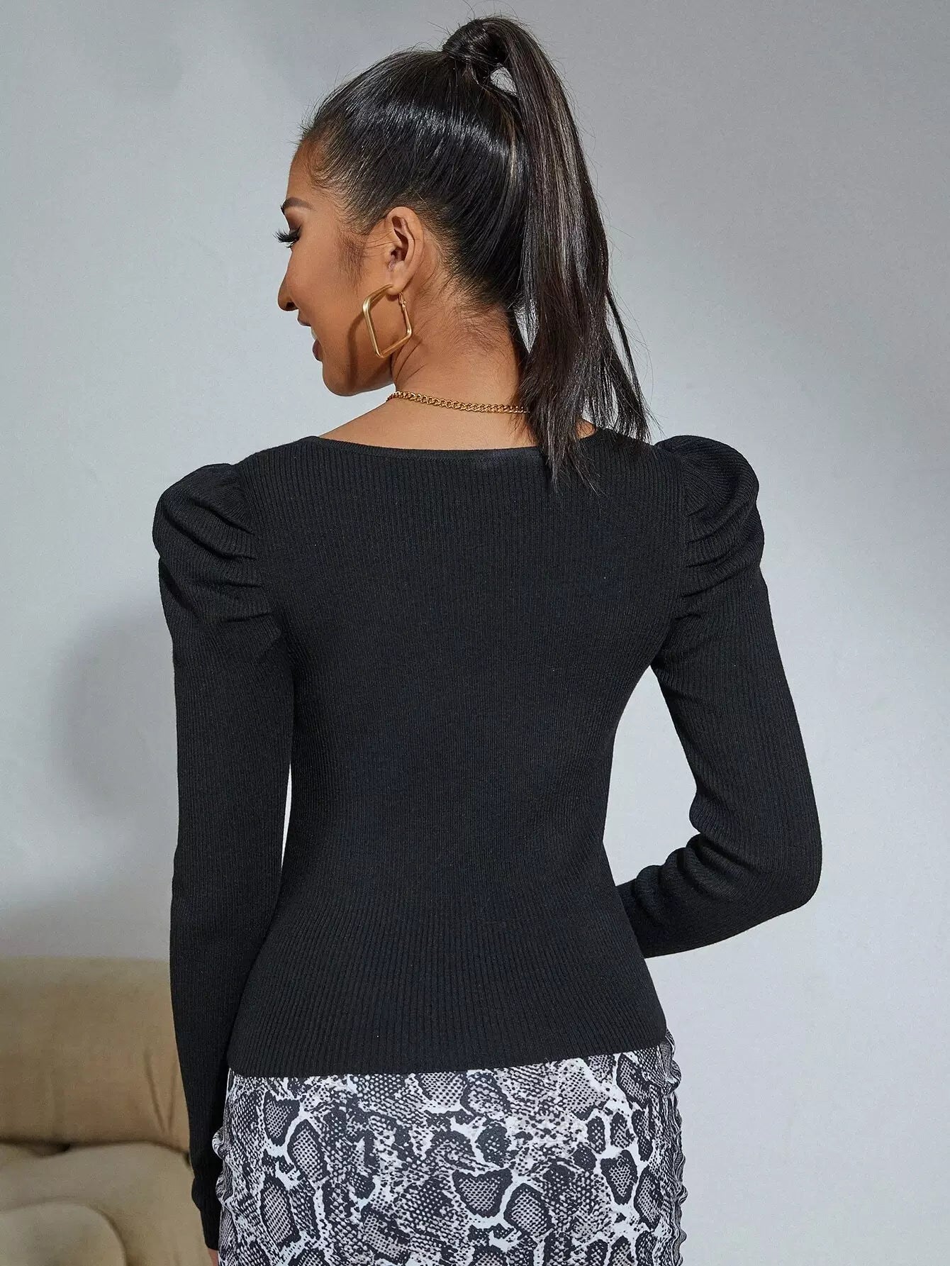 Puff Sleeve Ribbed Knit Sweater