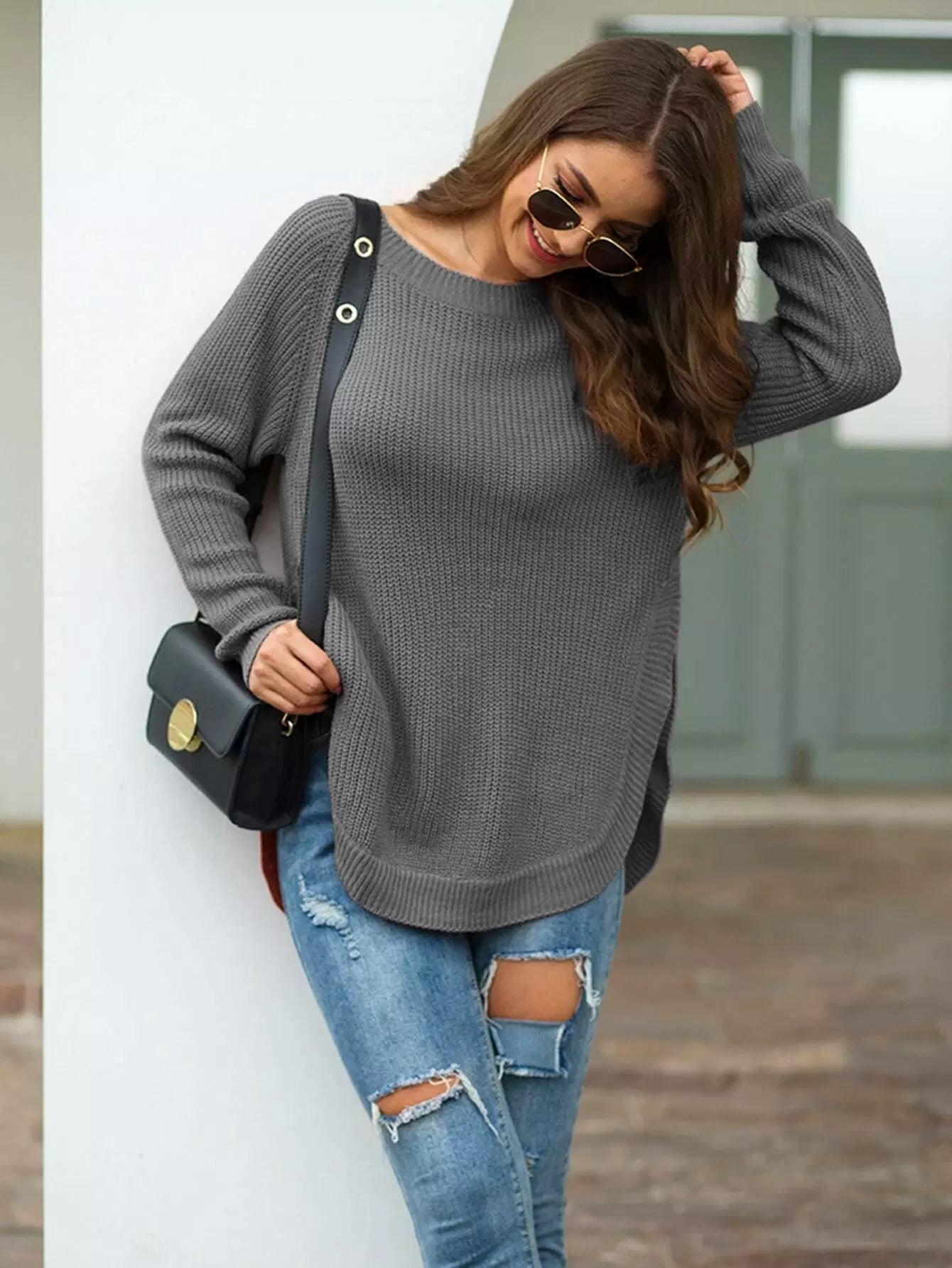 Raglan Sleeve Split Hem Sweater