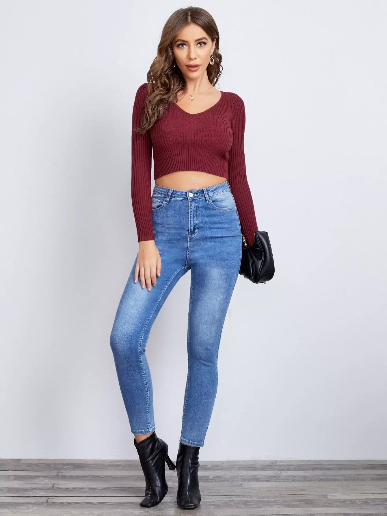 Rib-knit Solid Crop Sweater
