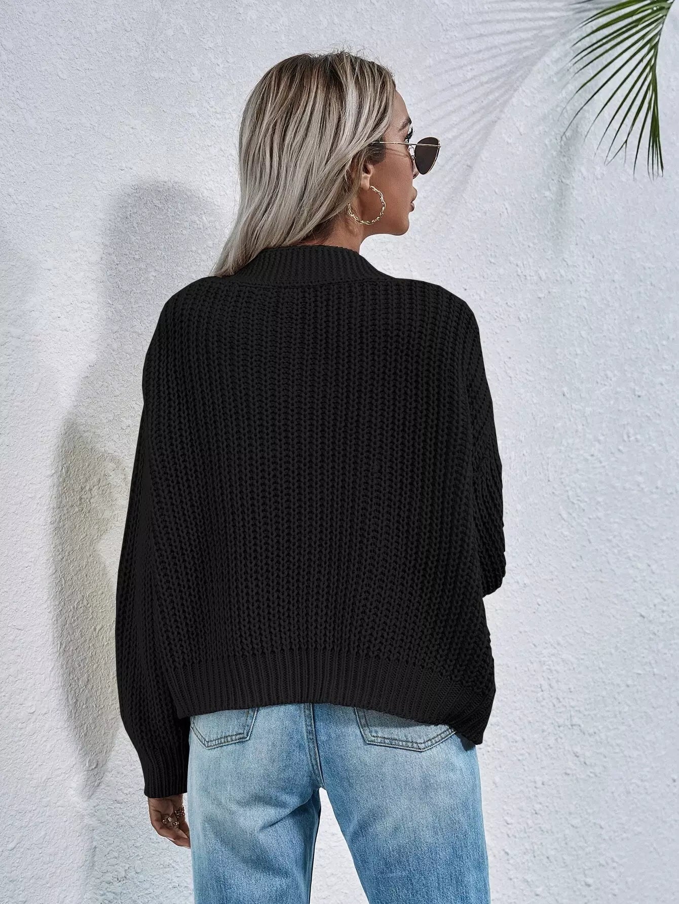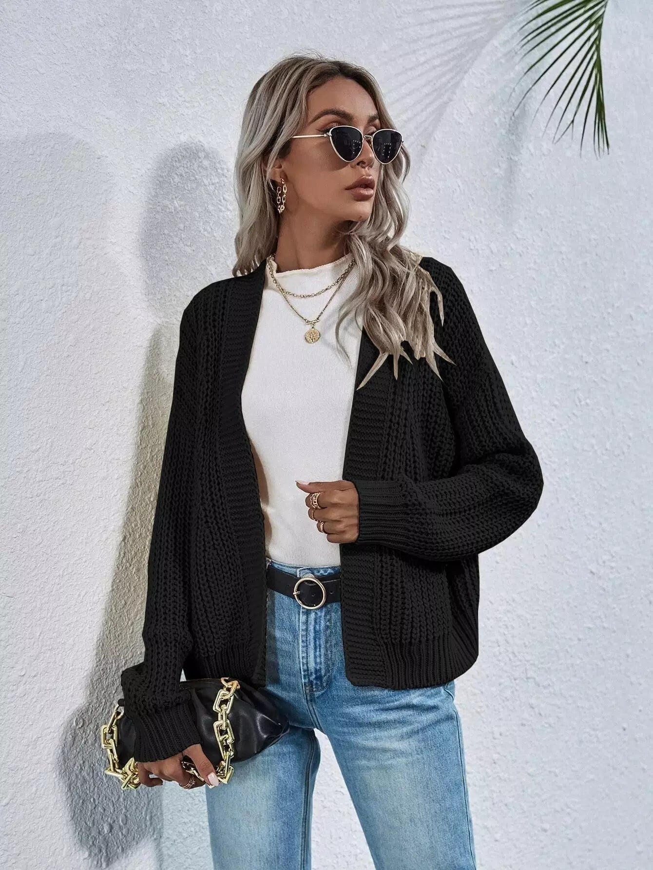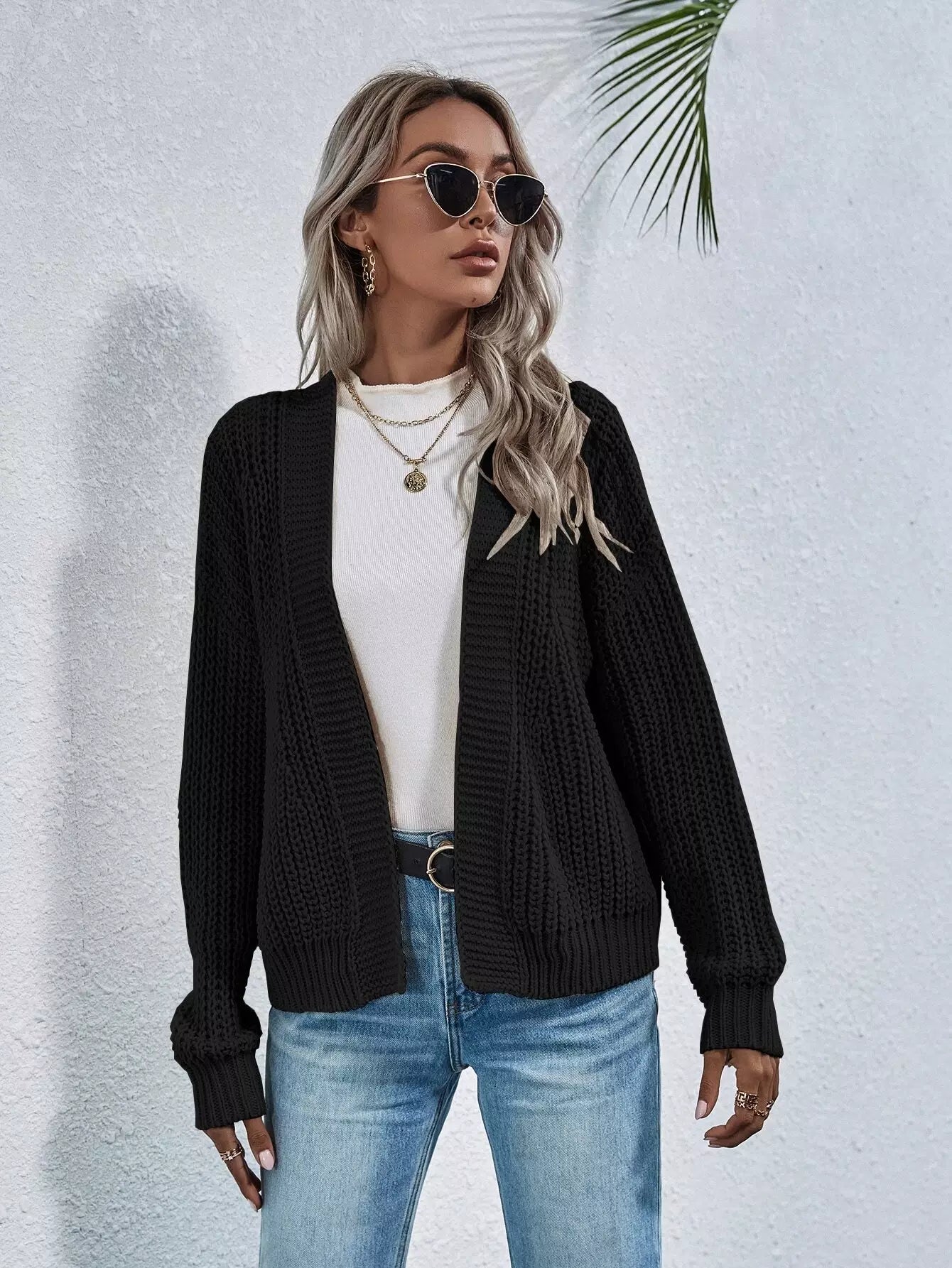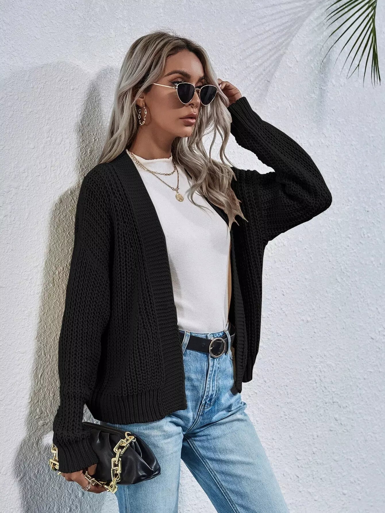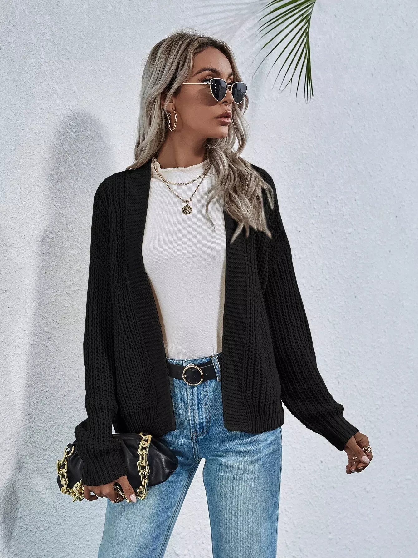 Ribbed Knit Drop Shoulder Solid Cardigan