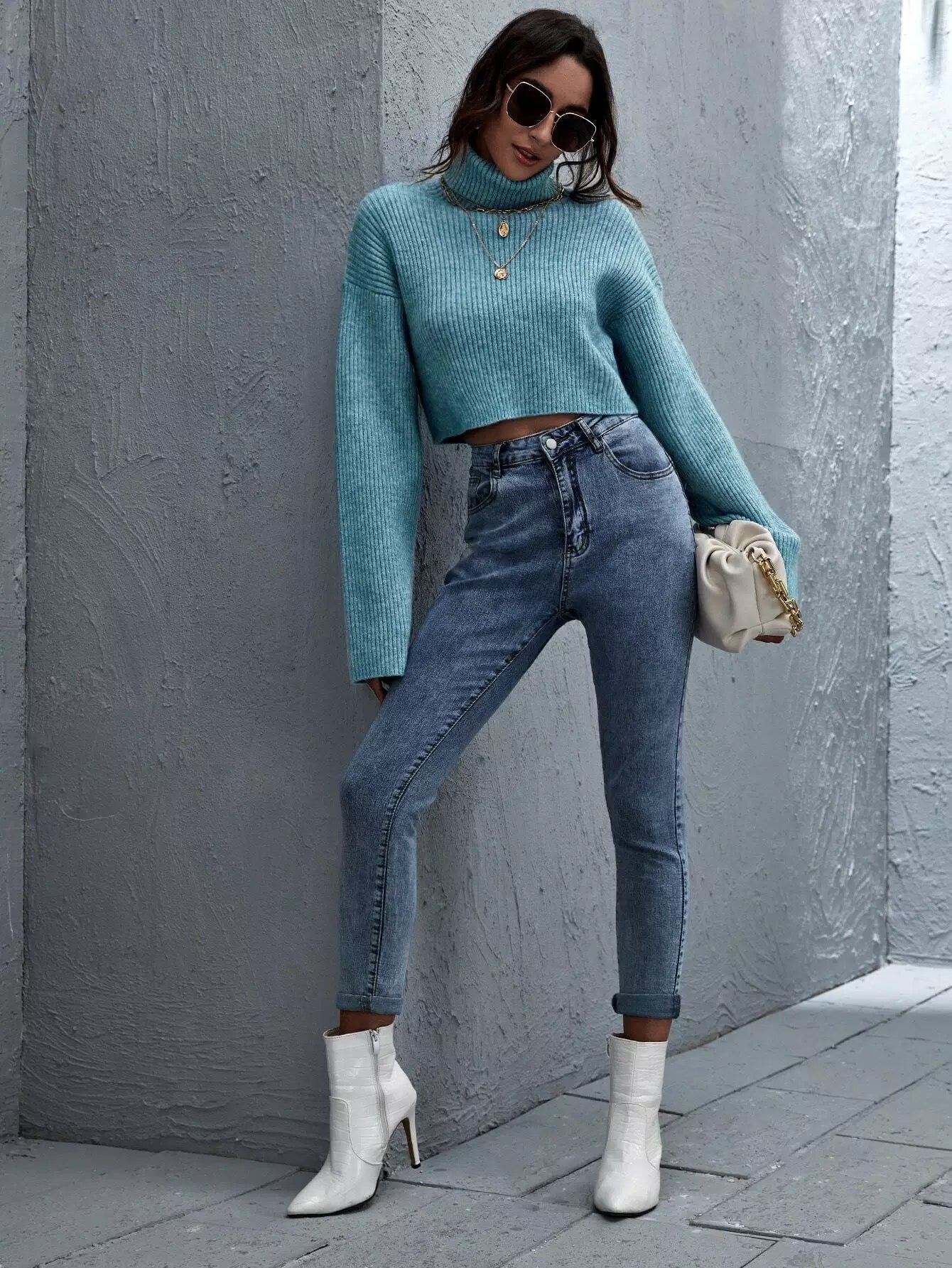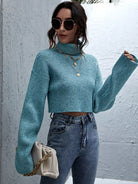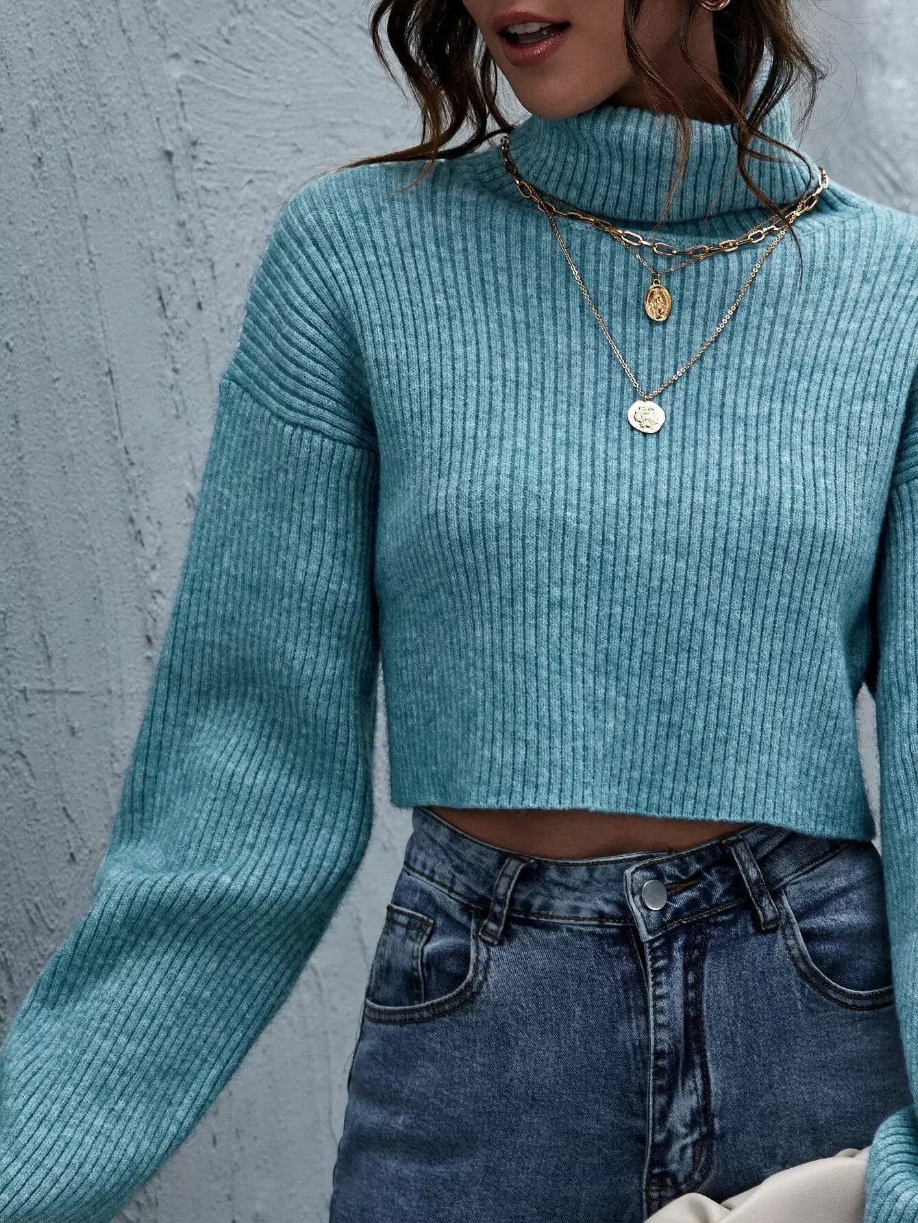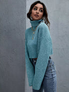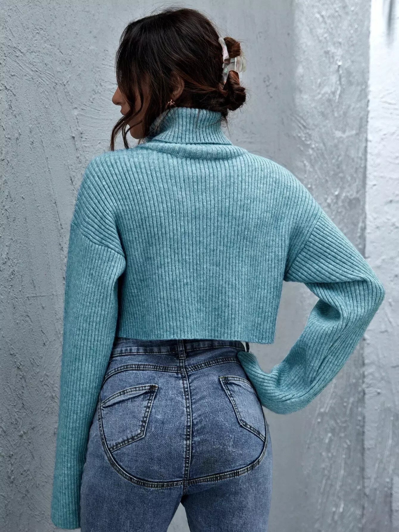 Women - Rolled Neck Drop Shoulder Crop Sweater