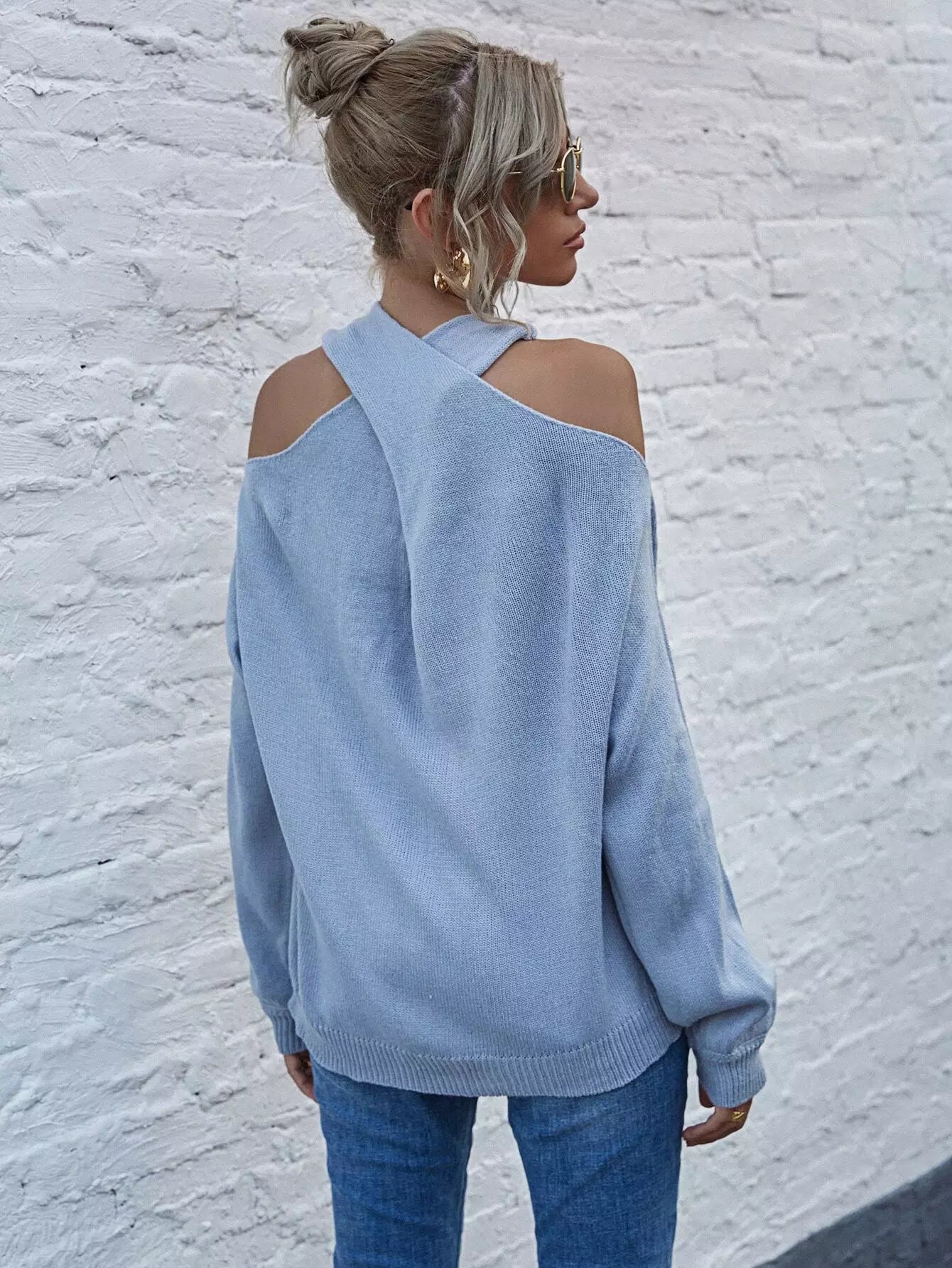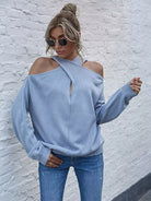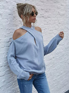 Solid Criss Cross Cold Shoulder Sweater
