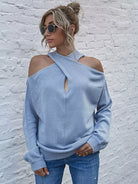 Sweaters & Cardigans - Solid Criss Cross Cold Shoulder Sweater