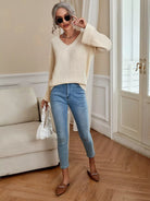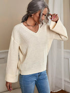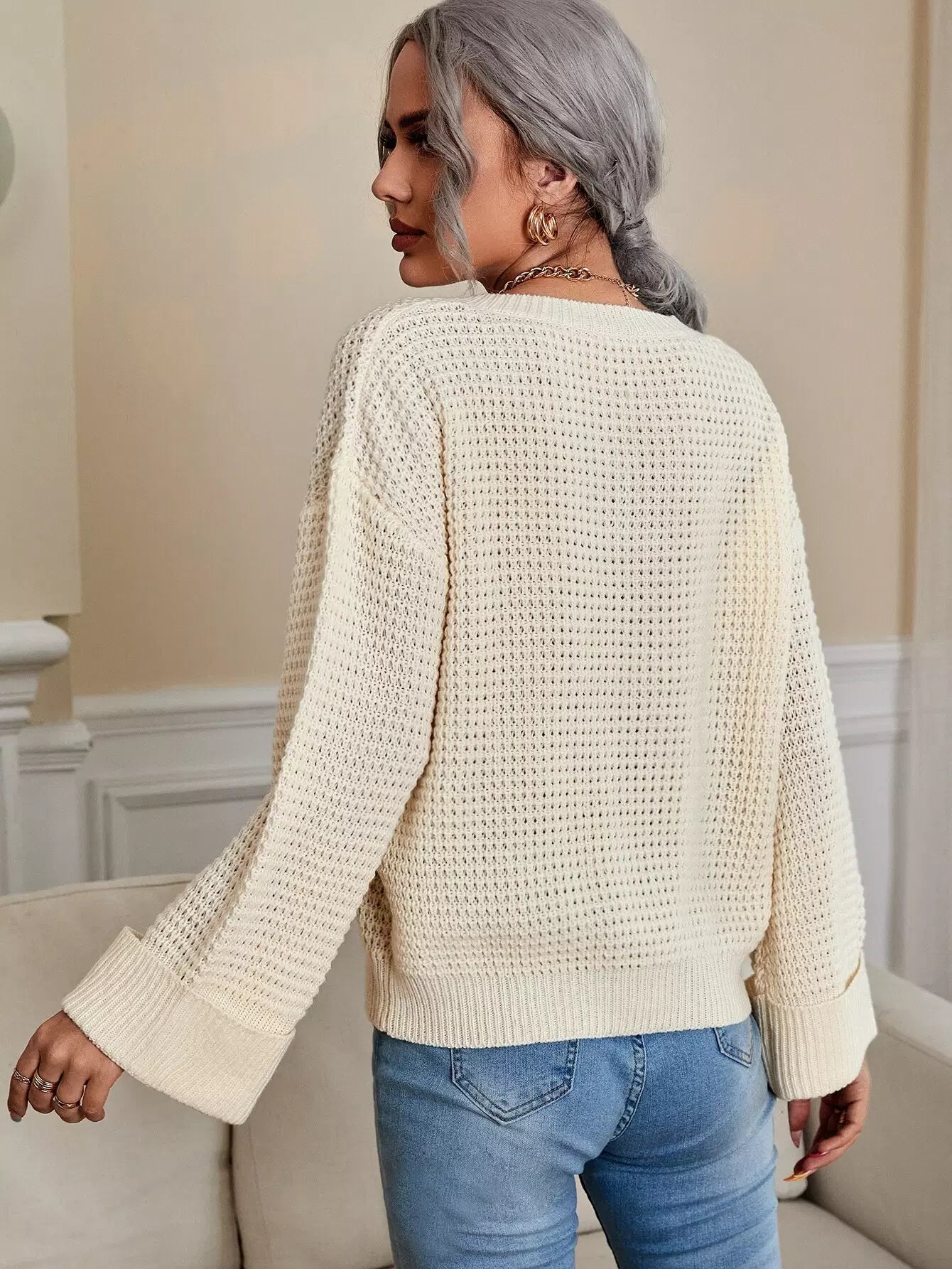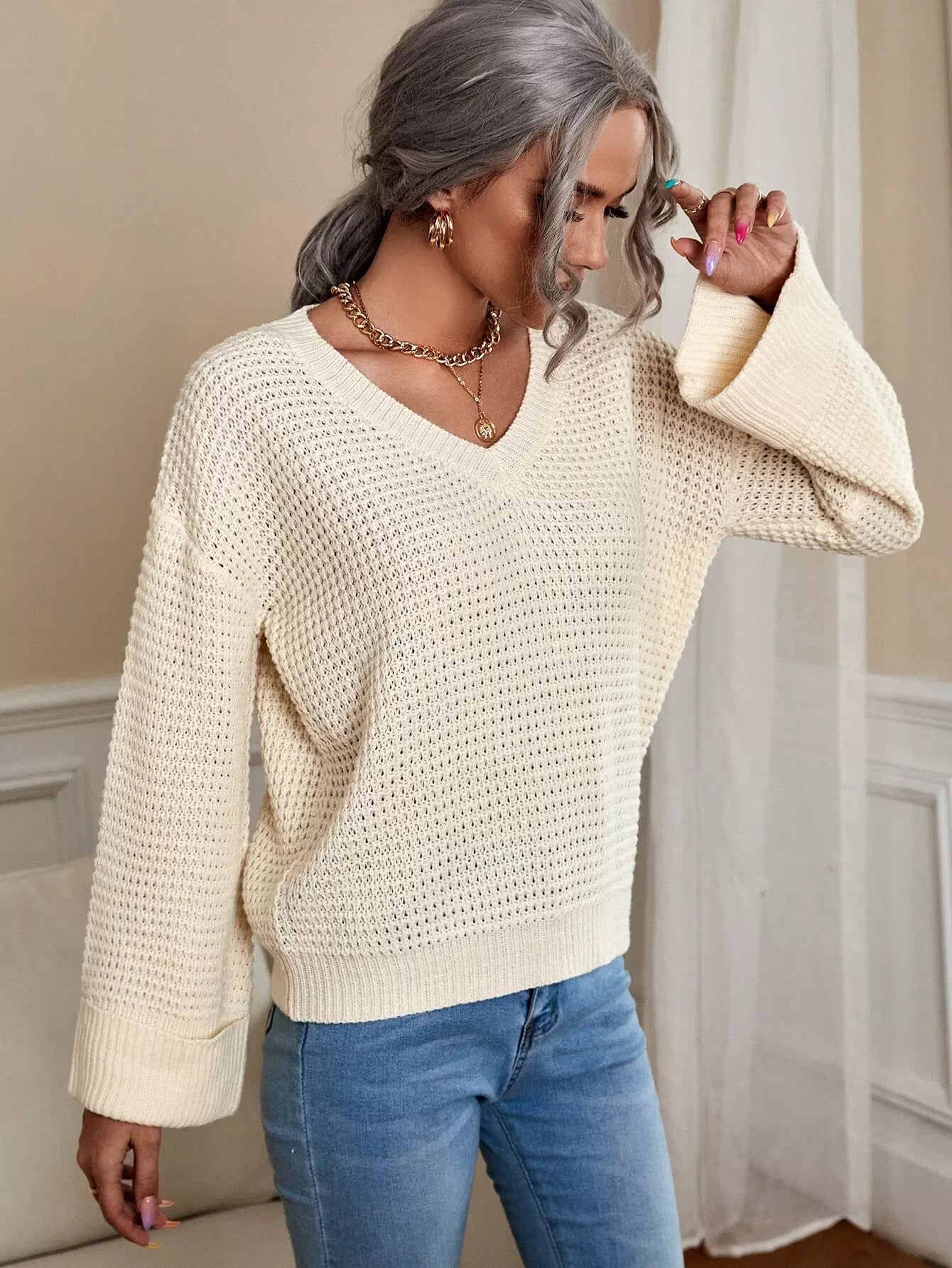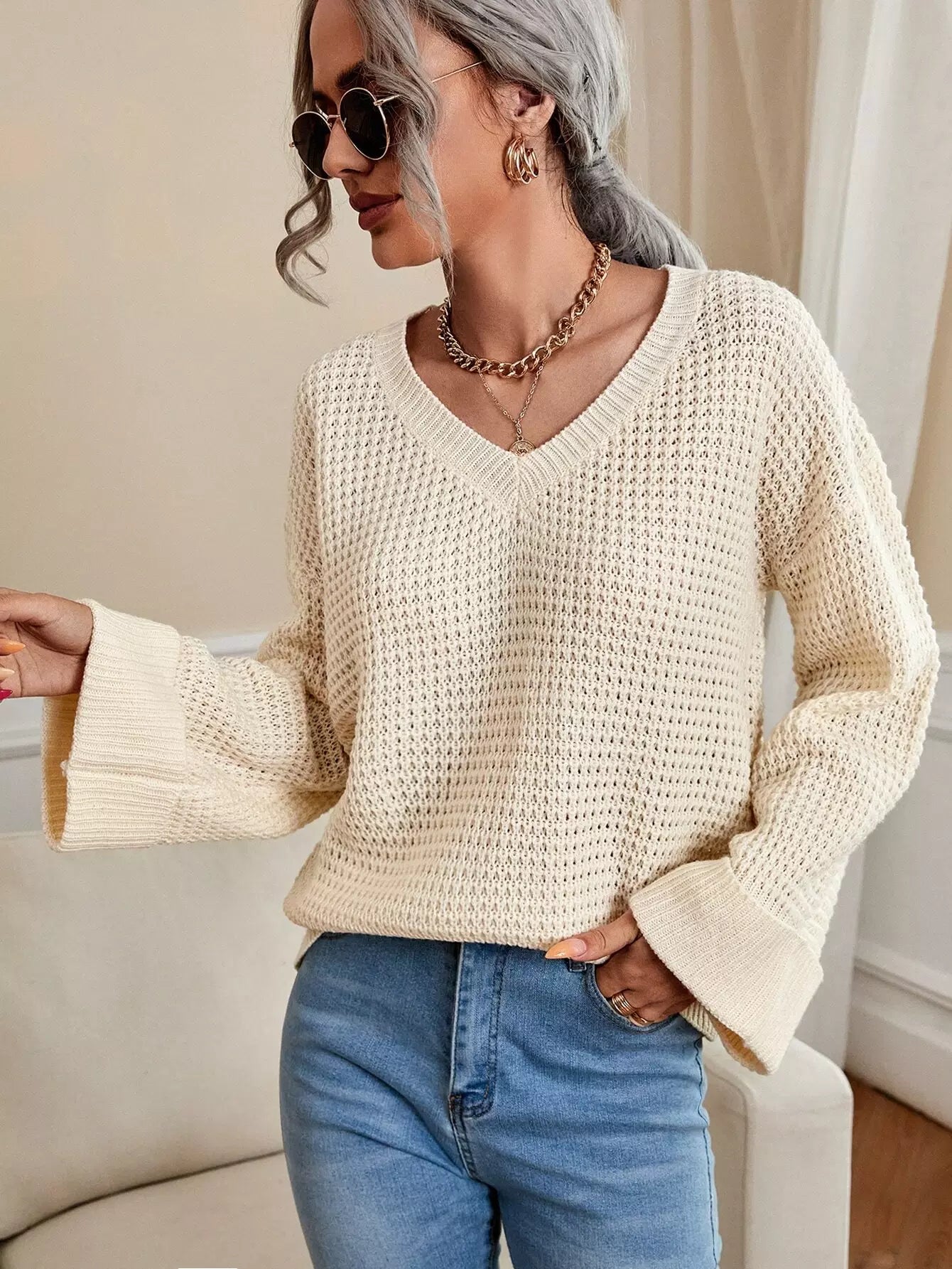 Solid Drop Shoulder Flounce Sleeve Sweater