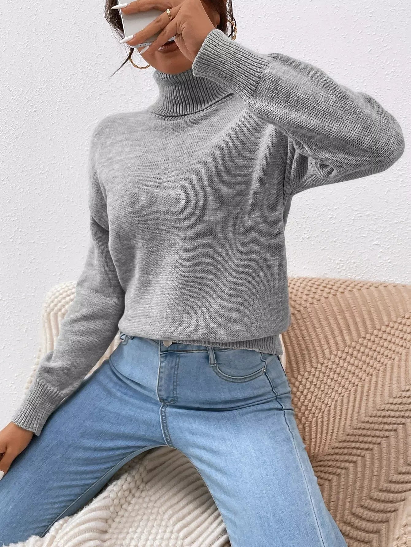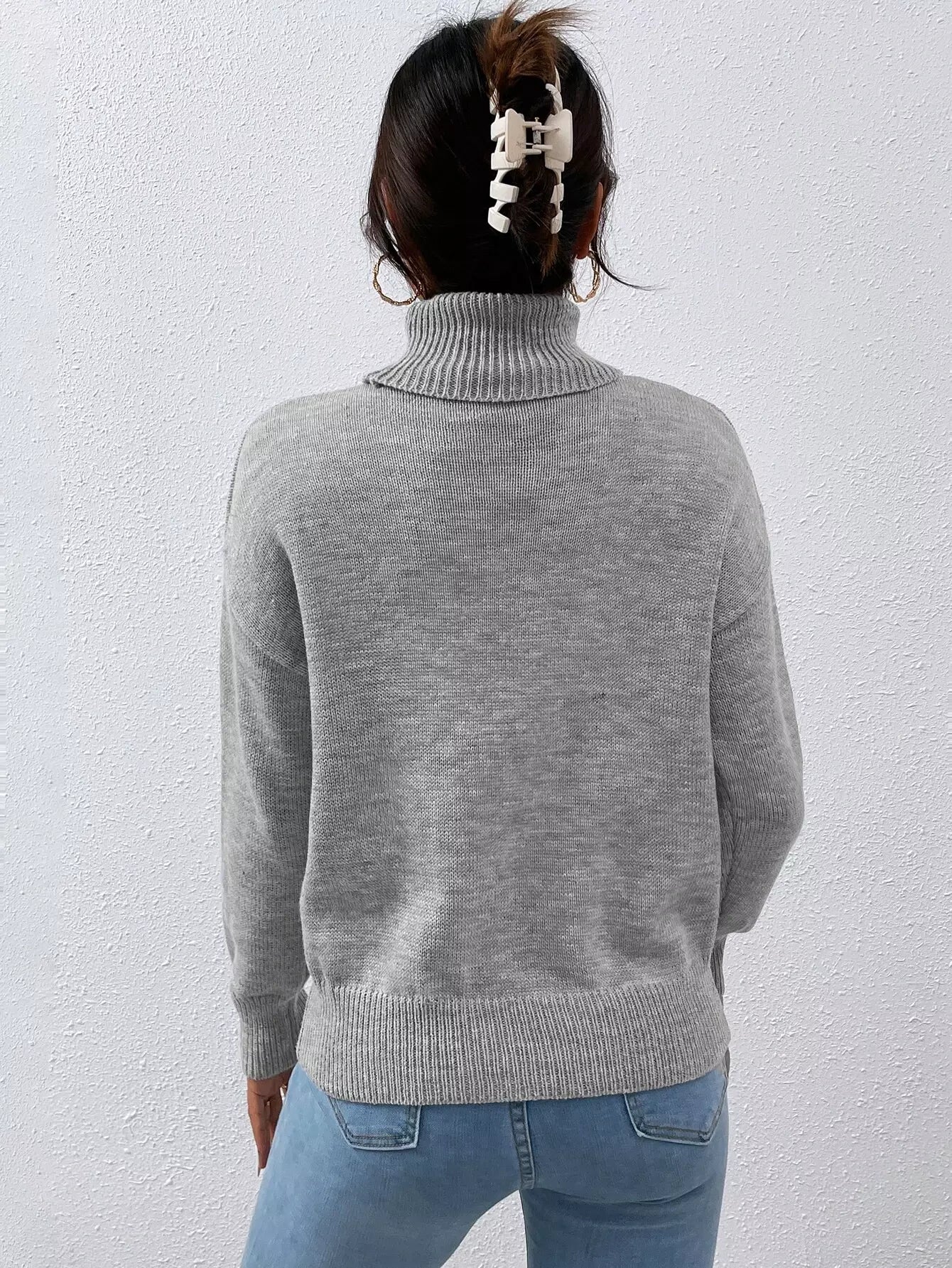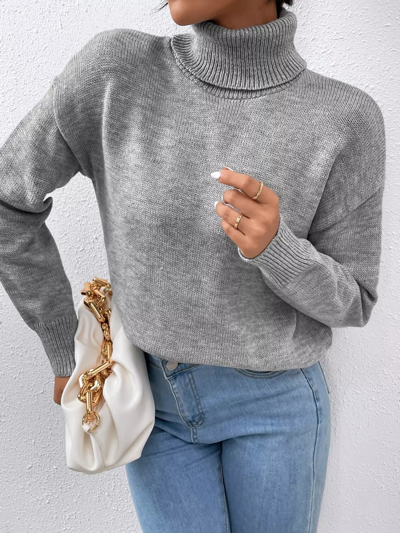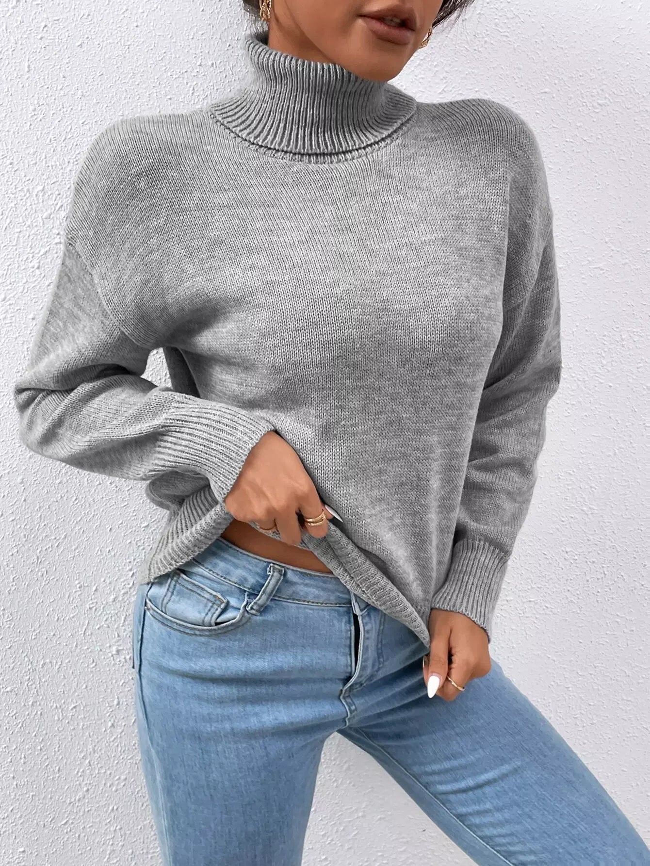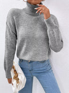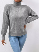 Solid Turtle Neck Drop Shoulder Sweater