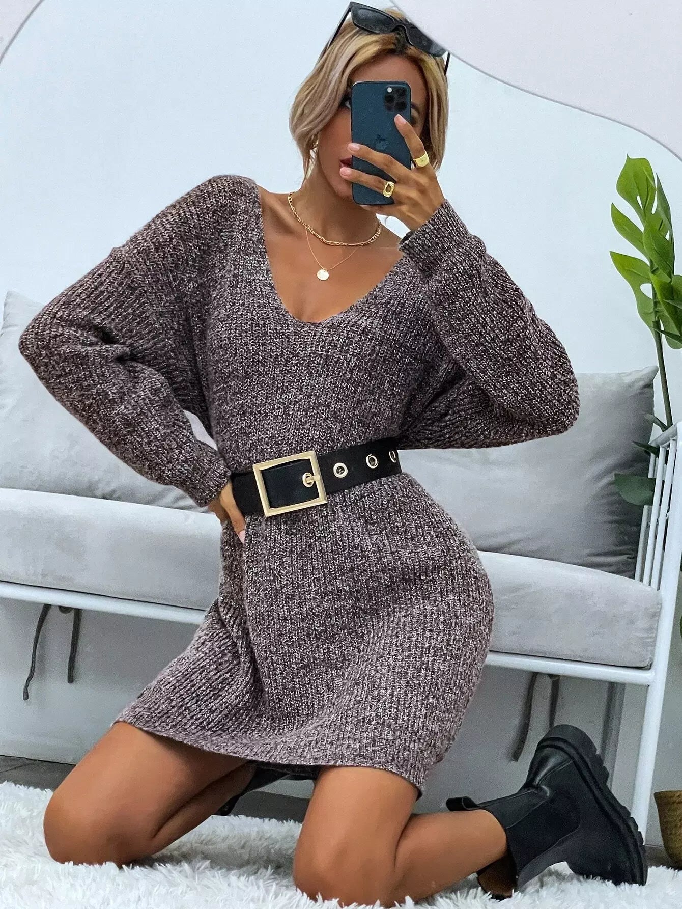 Space Dye Dolman Sleeve Sweater Dress Without Belt