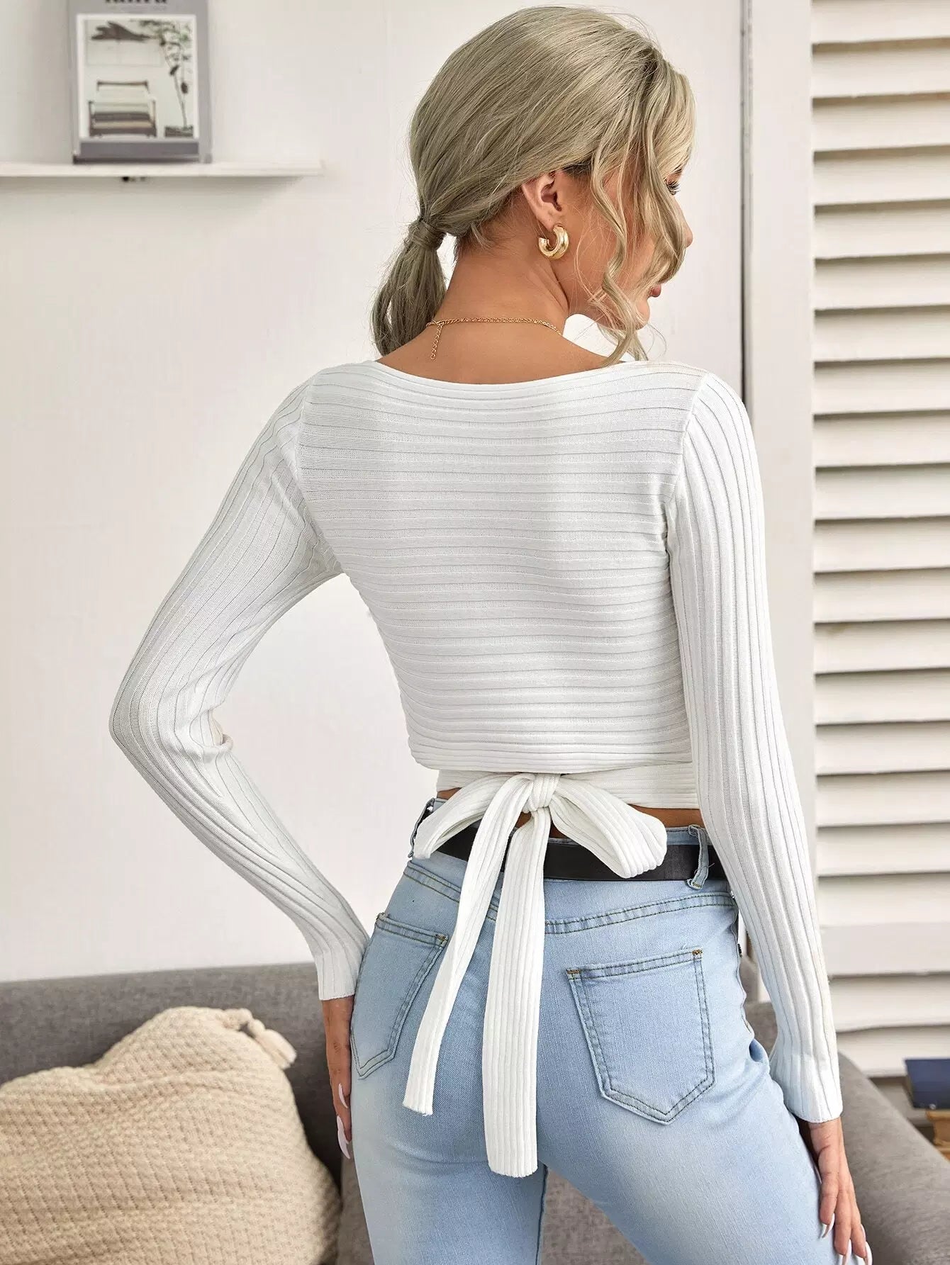 Tie Back Rib-knit Sweater