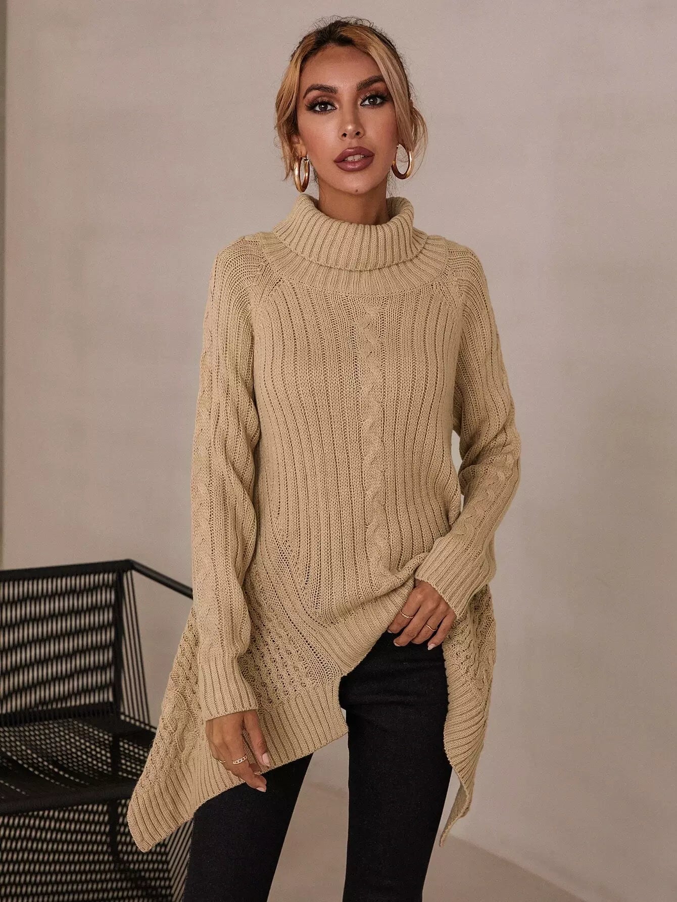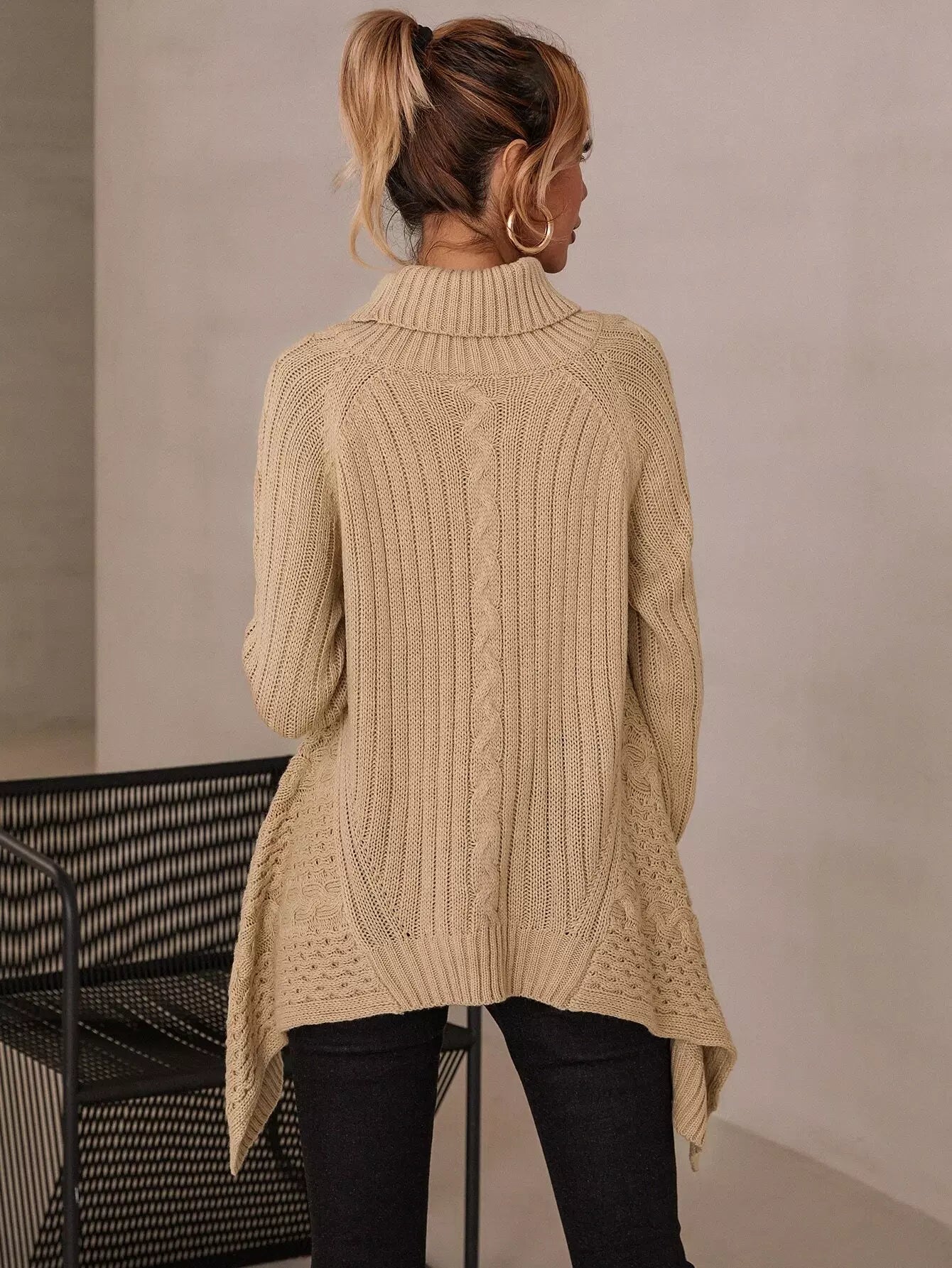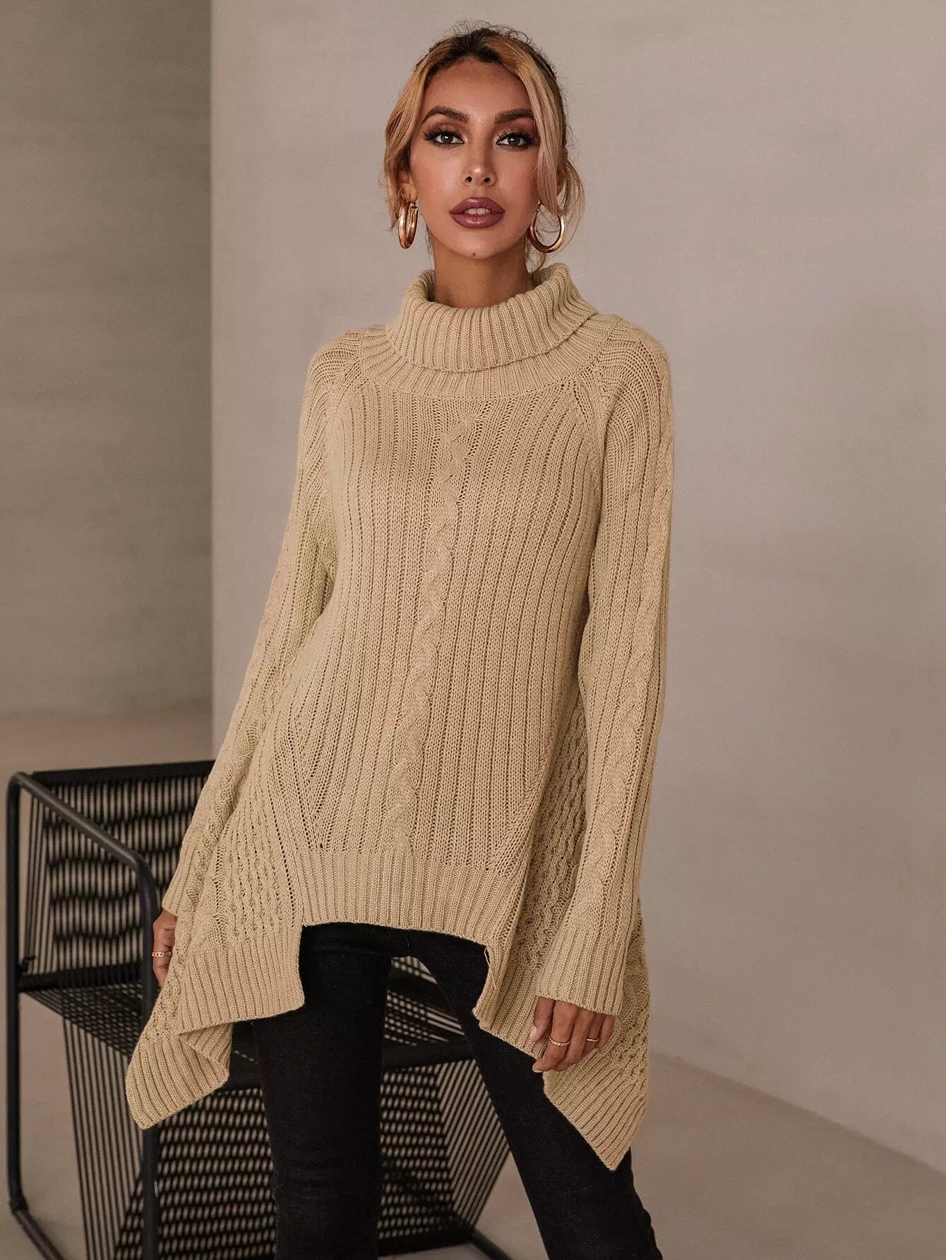 Turtleneck Raglan Sleeve Asymmetric Hem Sweater