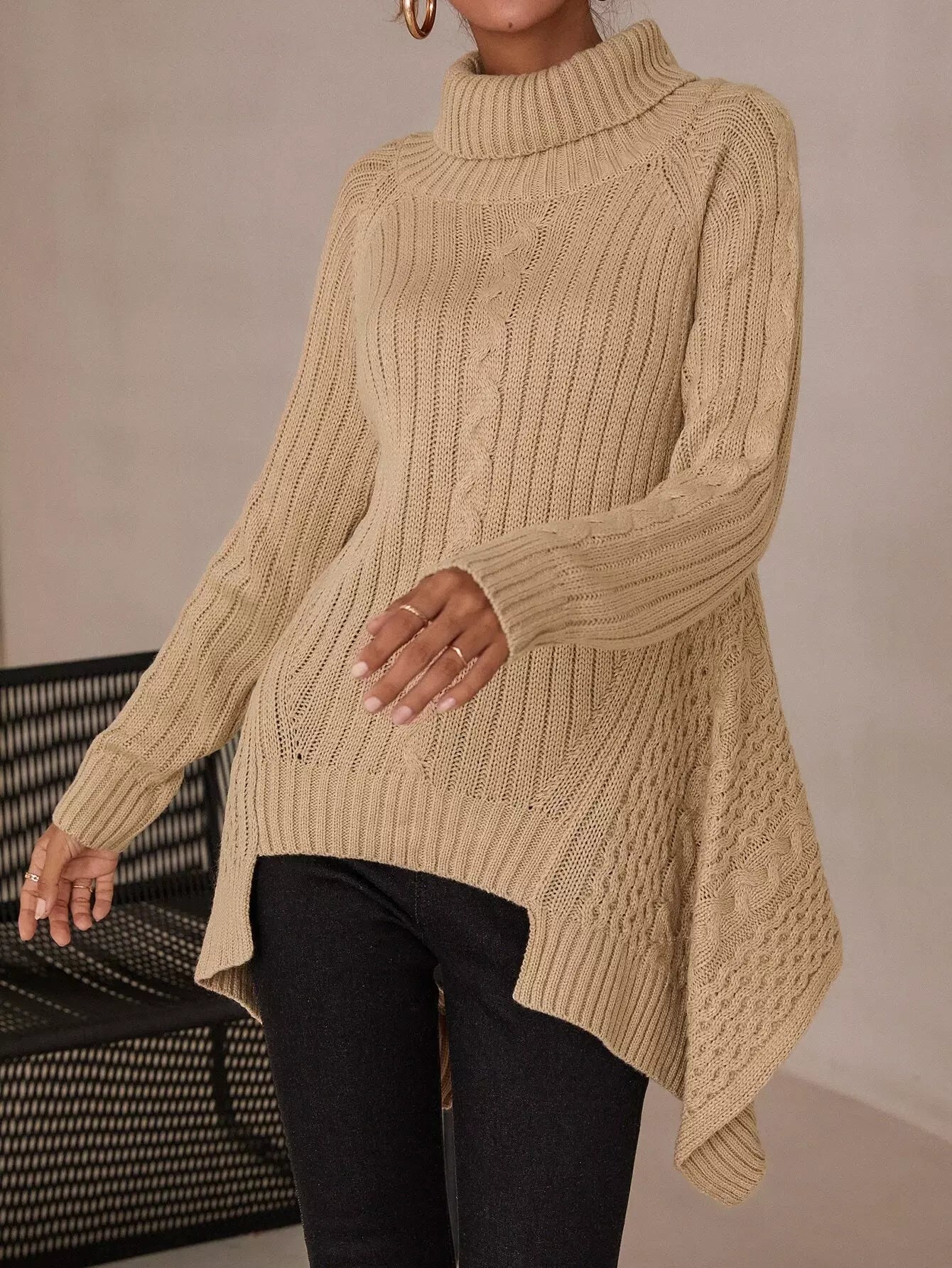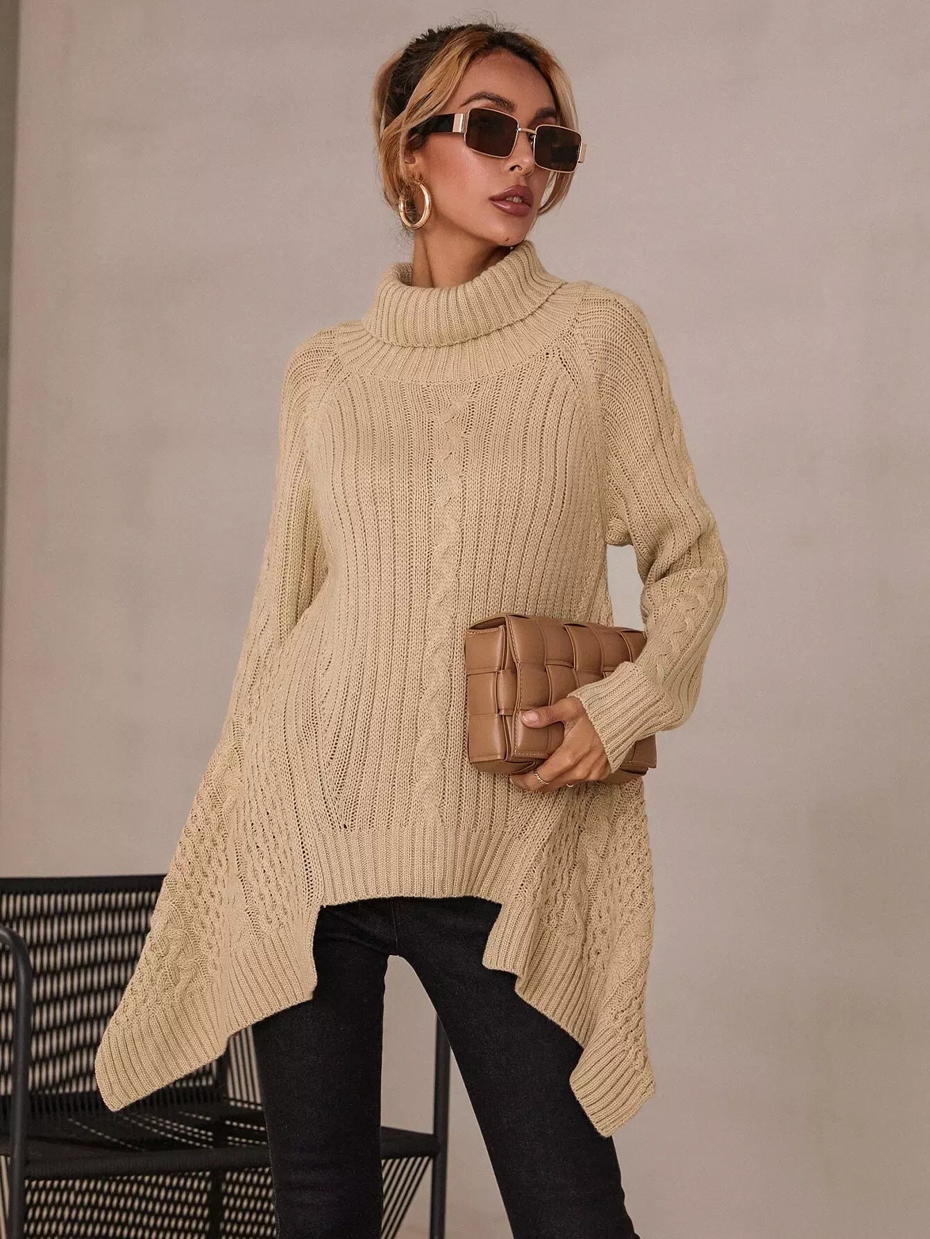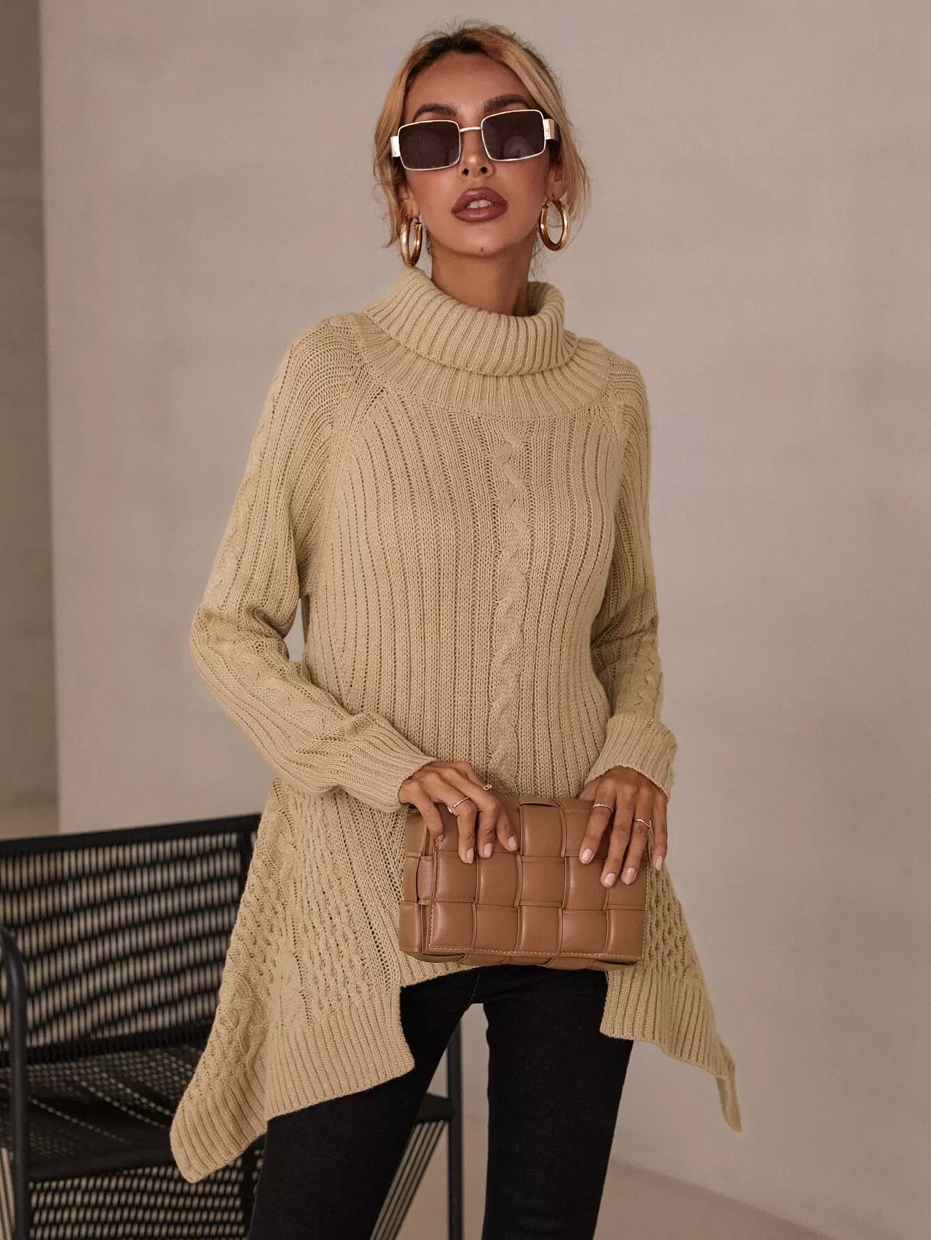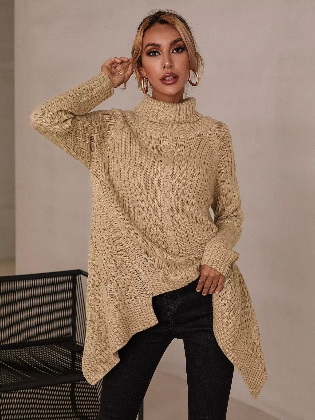 Turtleneck Raglan Sleeve Asymmetric Hem Sweater