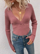 Wrap Bust Drop Shoulder Rib-knit Sweater