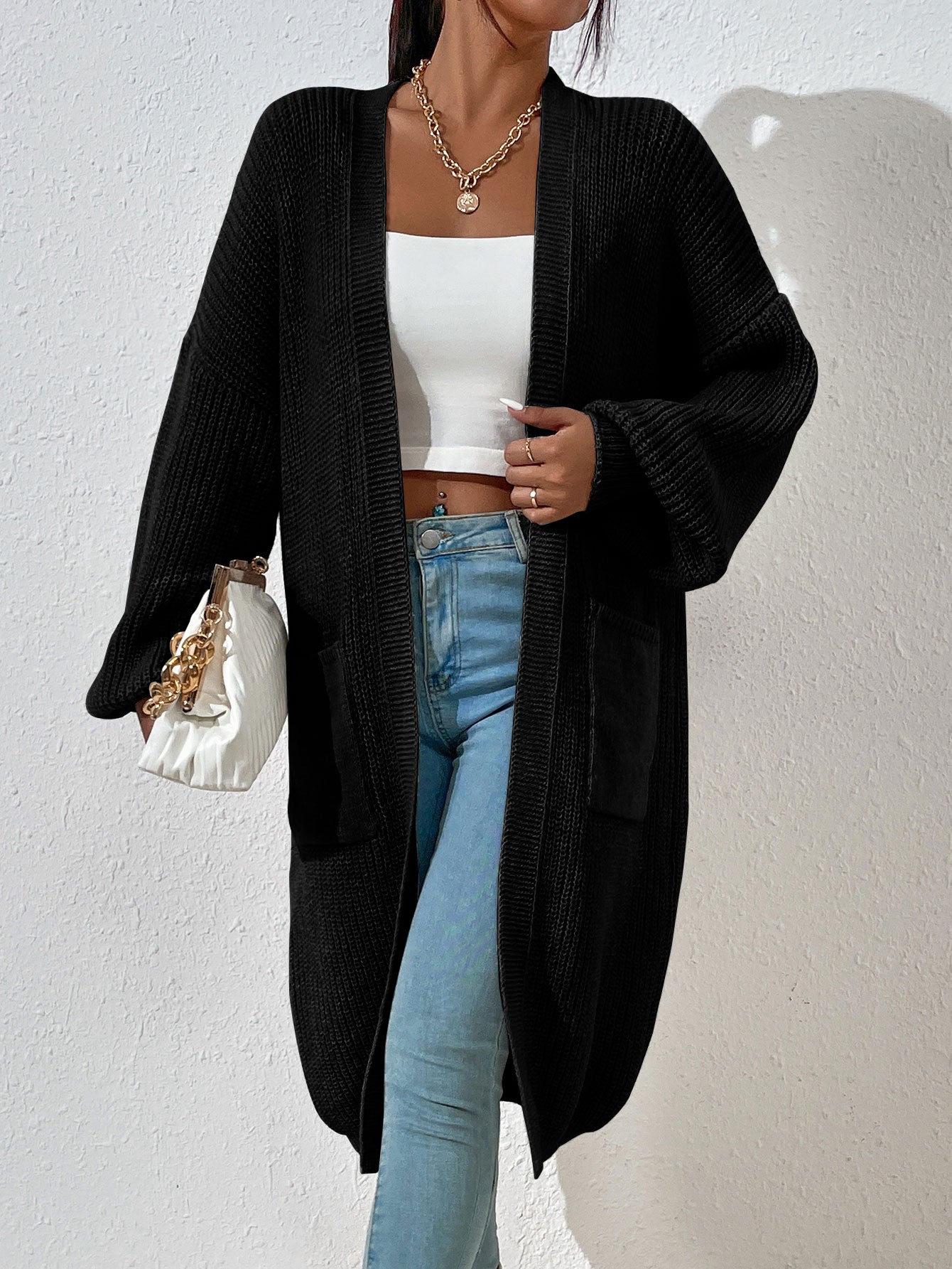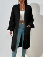Chiquease Dual Pocket Drop Shoulder Cardigan Long Sleeve Tops Fall Winter Cloth For Women