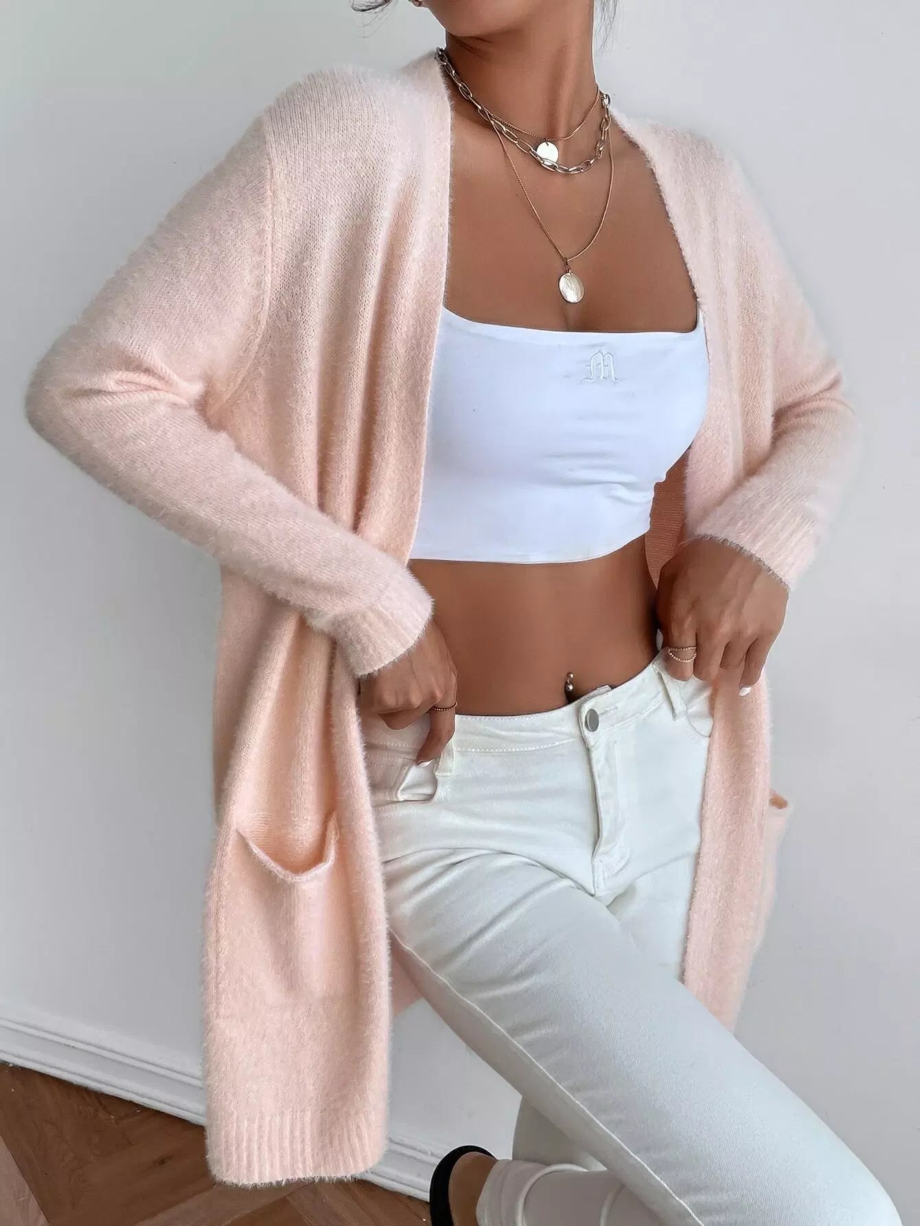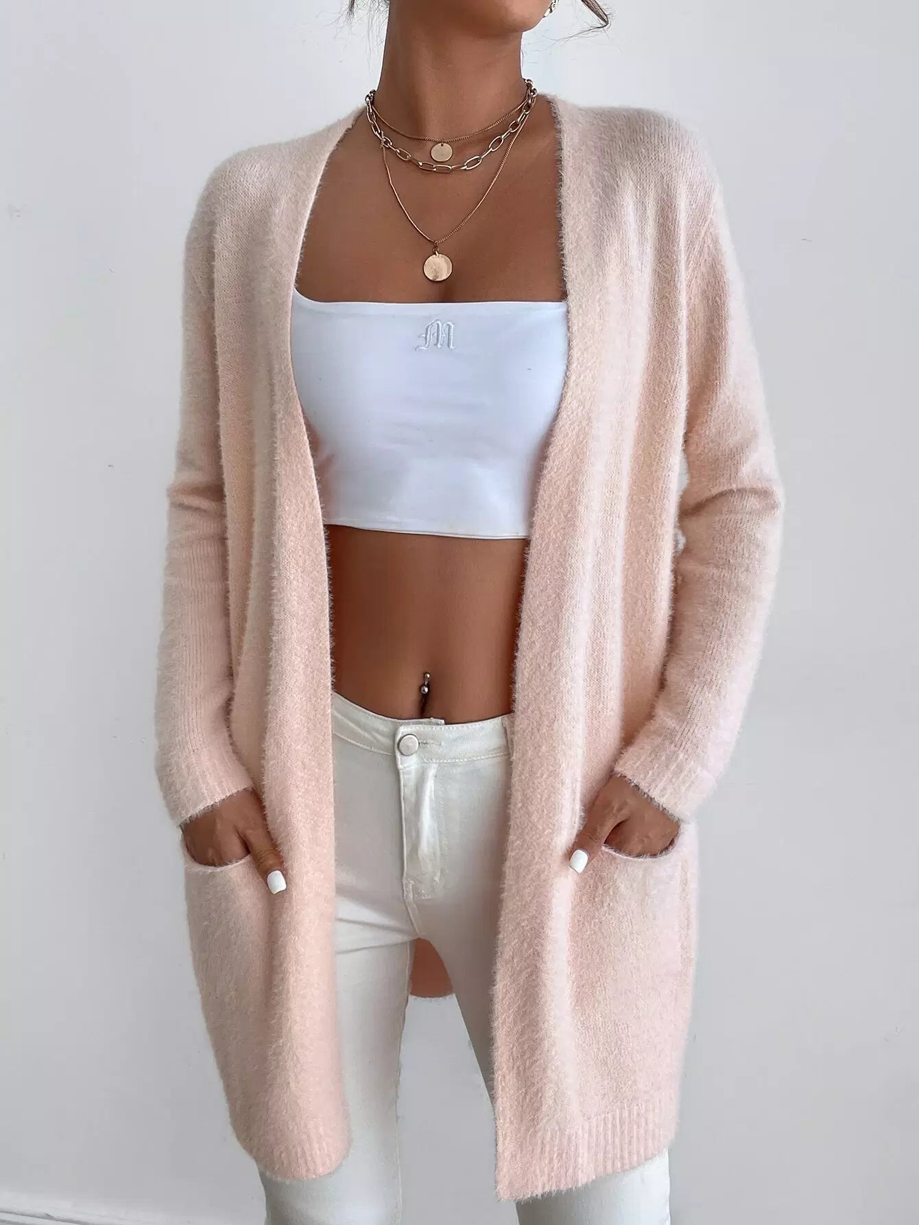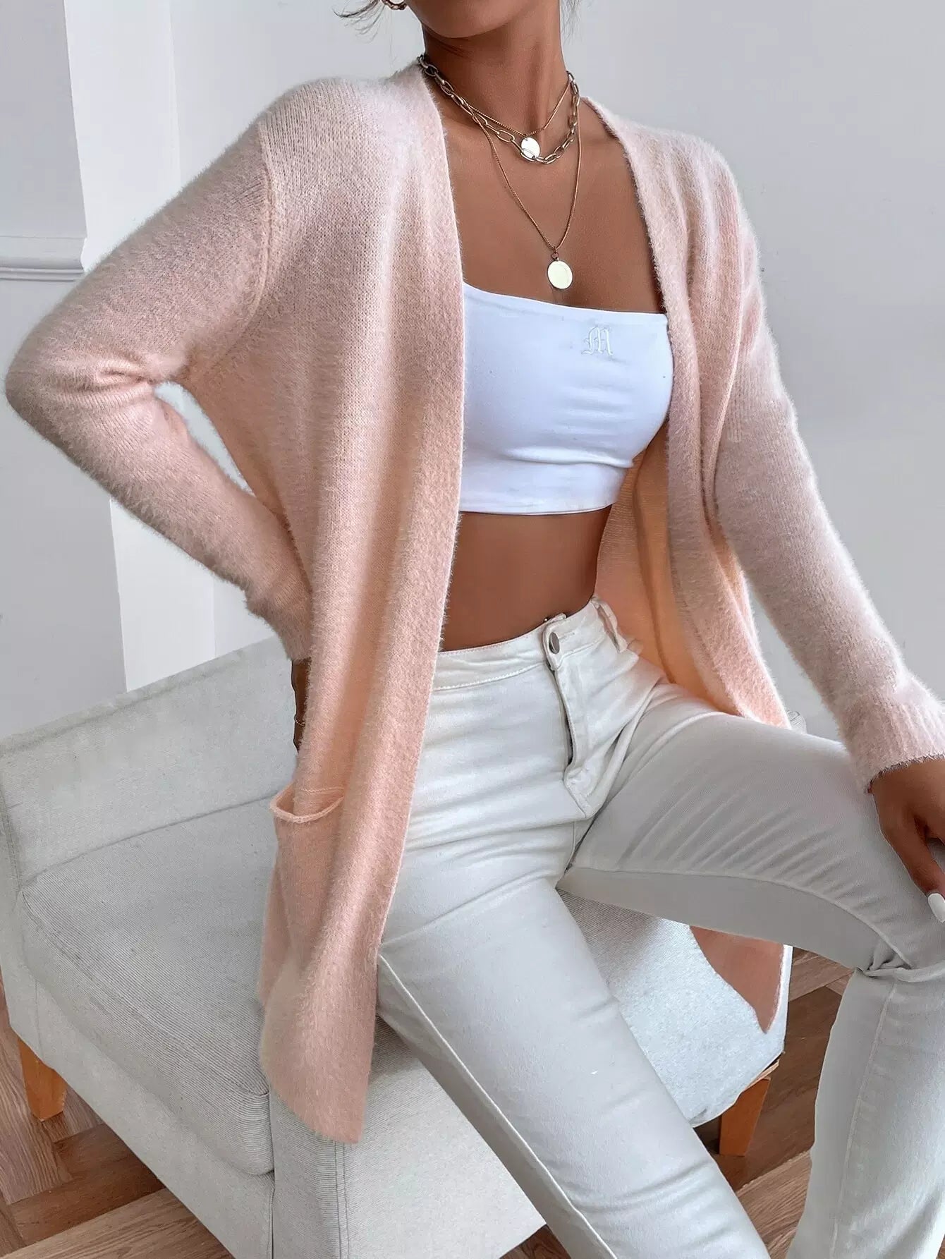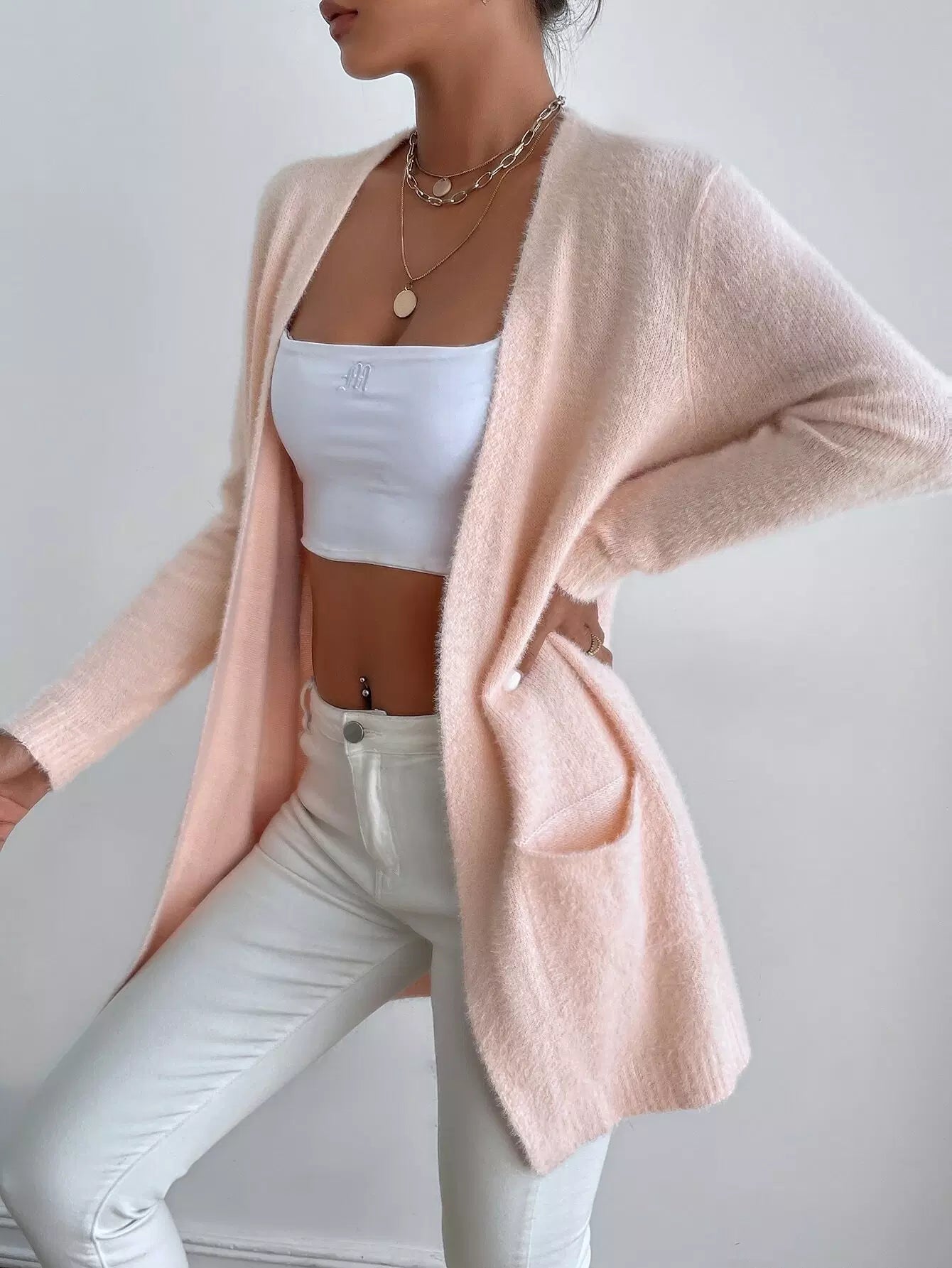 Drop Shoulder Dolman Sleeve Open Front Cardigan