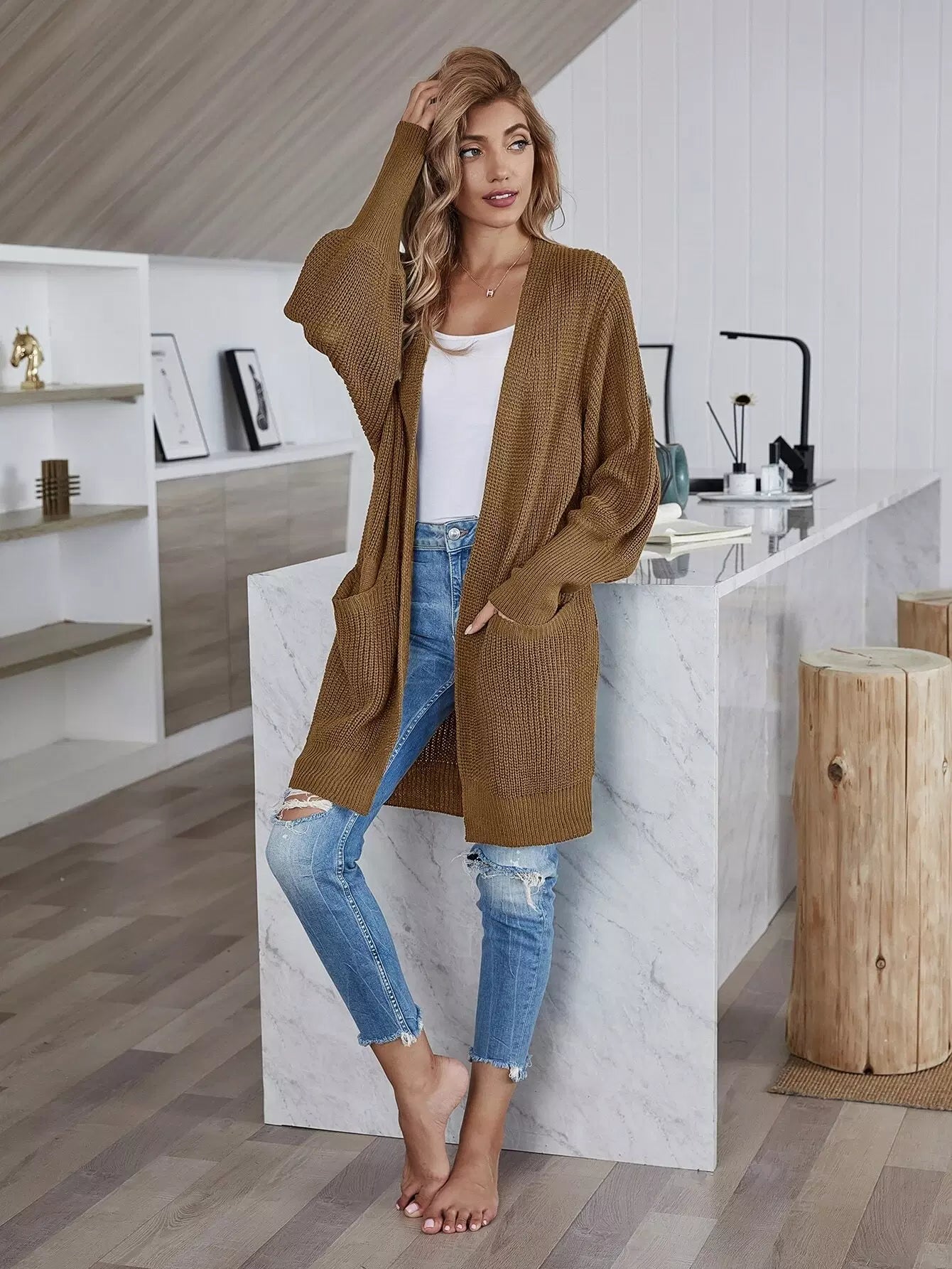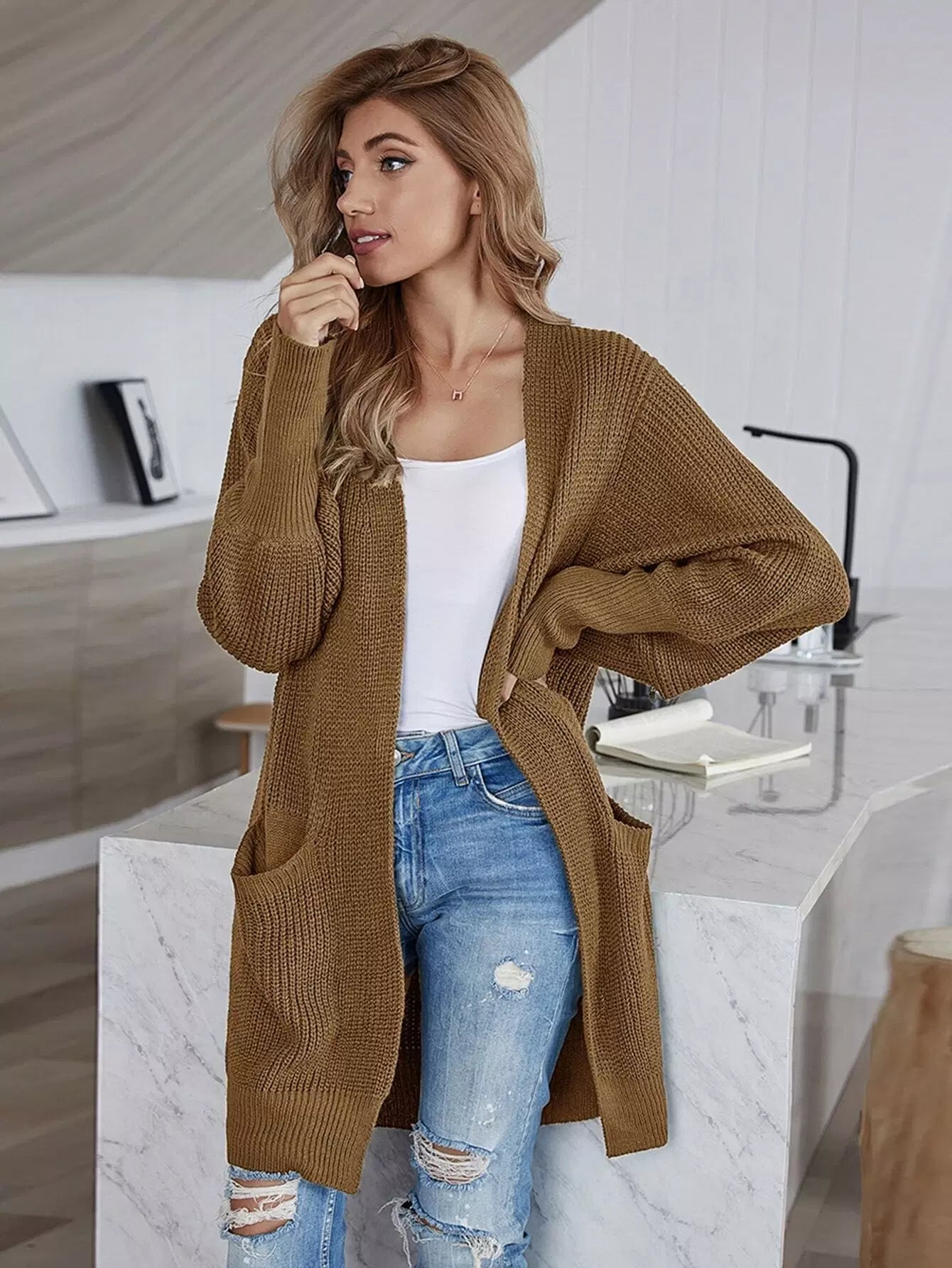Dual Pocket Batwing Sleeve Solid Cardigan
