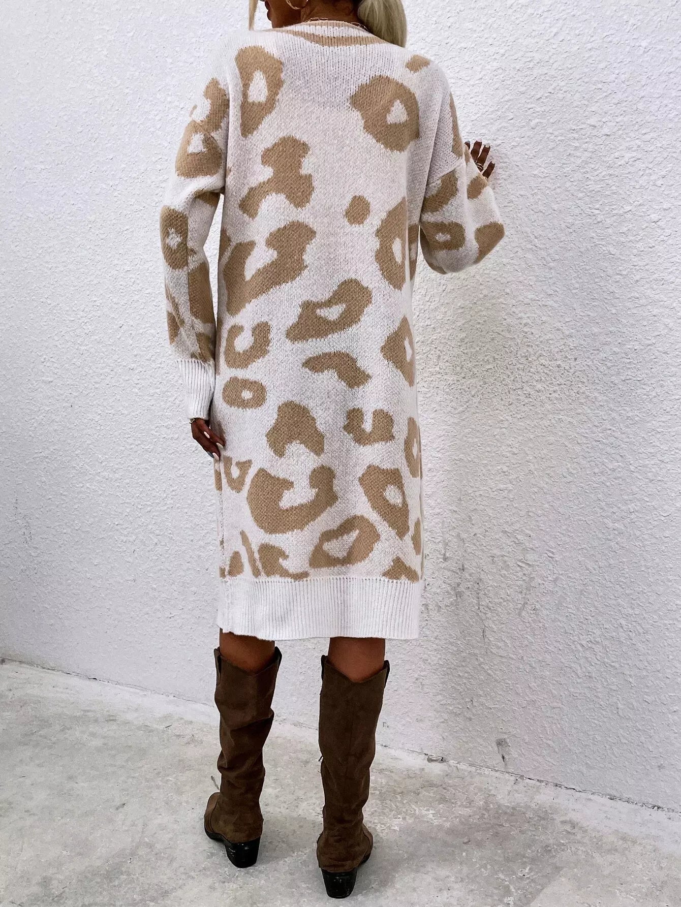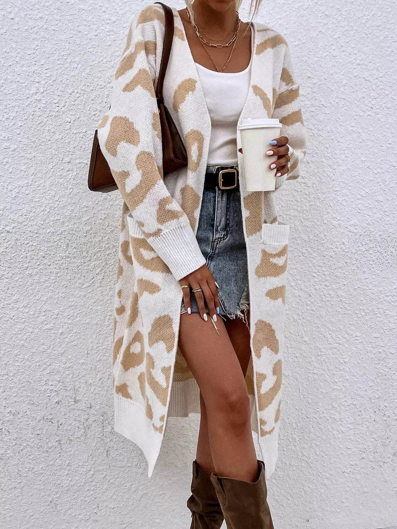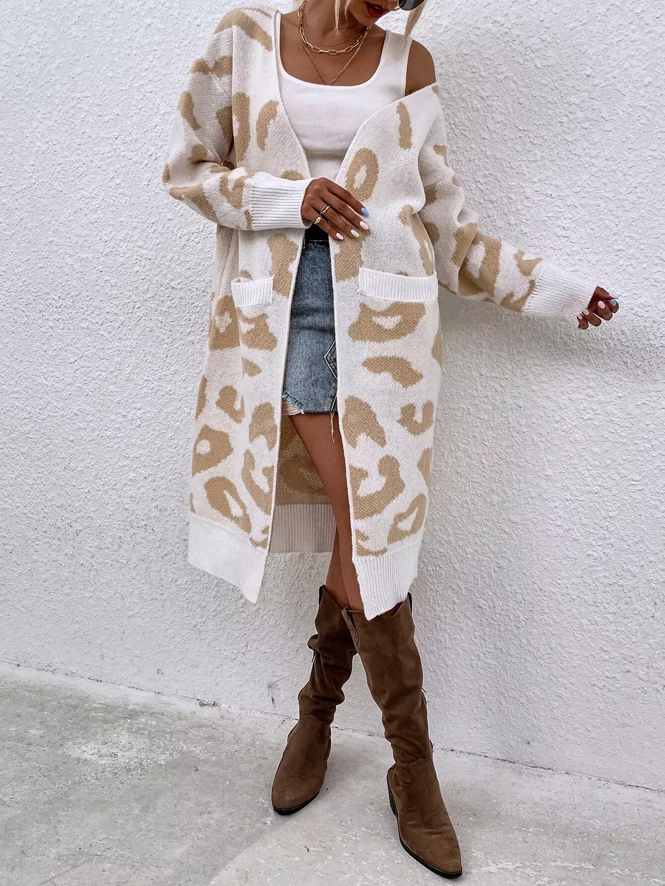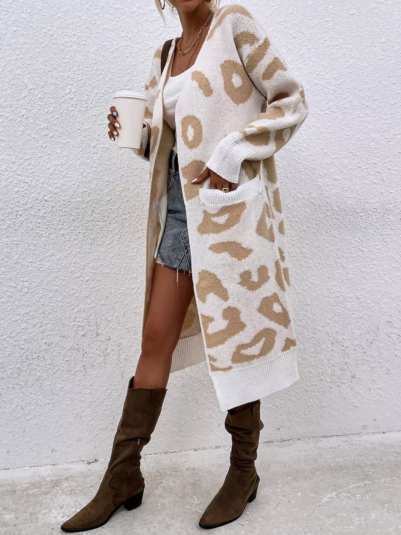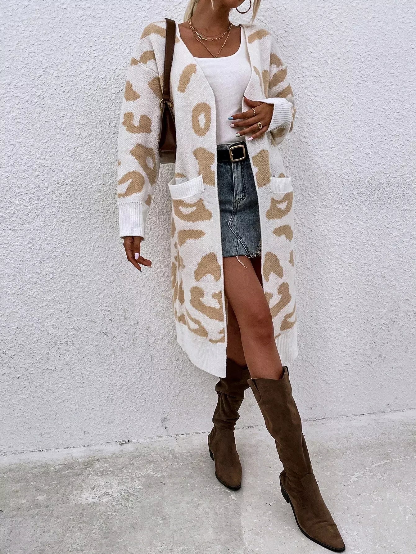 Graphic Pattern Drop Shoulder Dual Pocket Cardigan