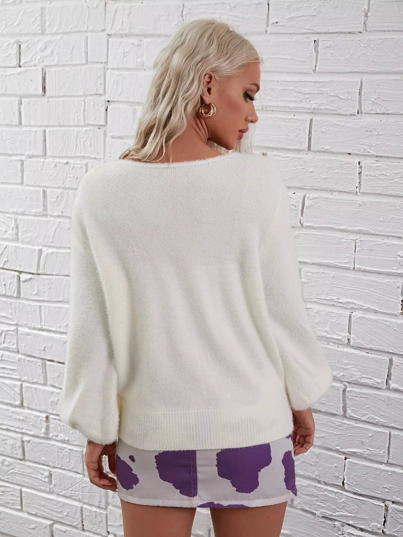 Lantern Sleeve Buttoned Front Fluffy Cardigan