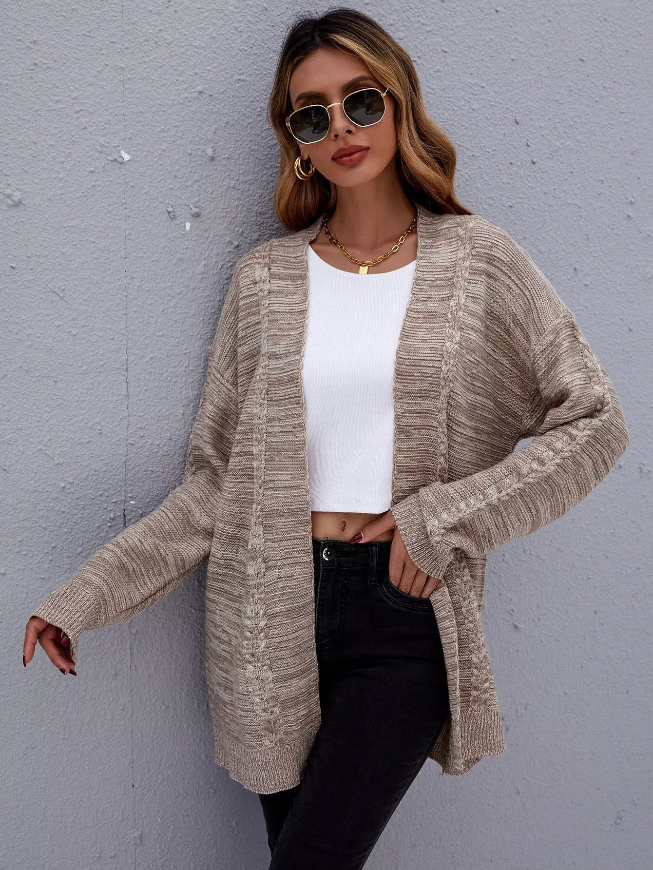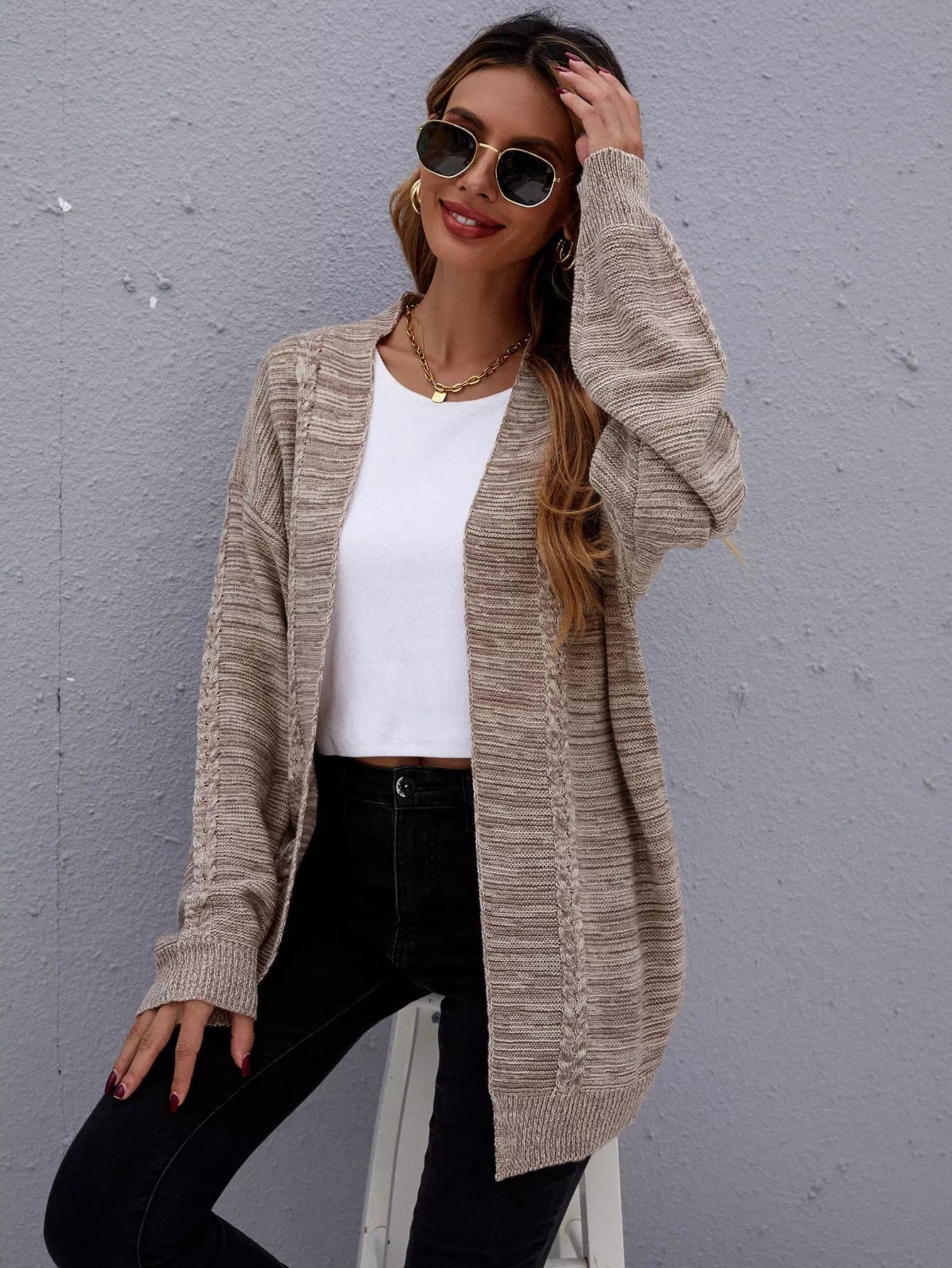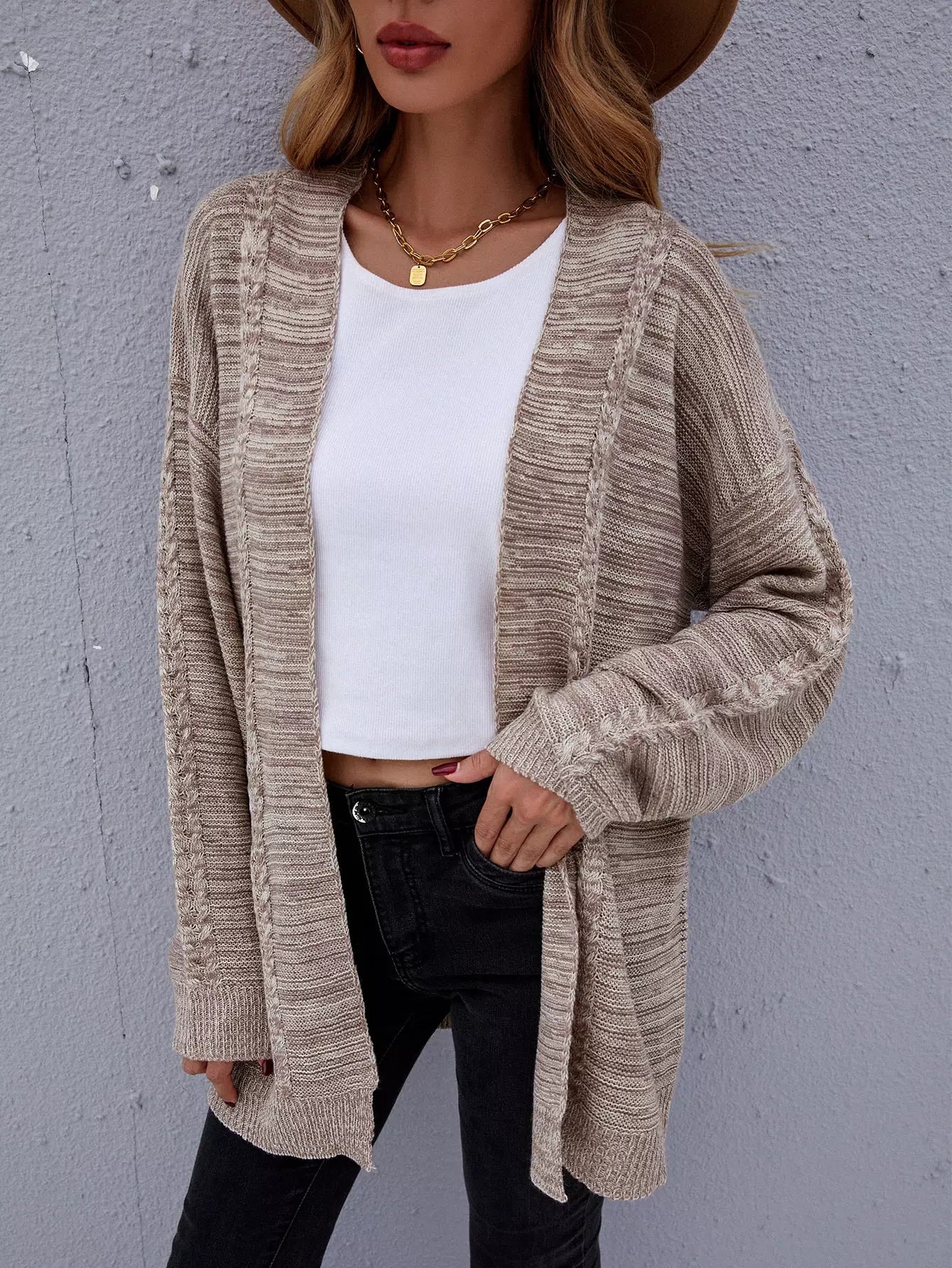 Marled Knit Drop Shoulder Open Front Cardigan