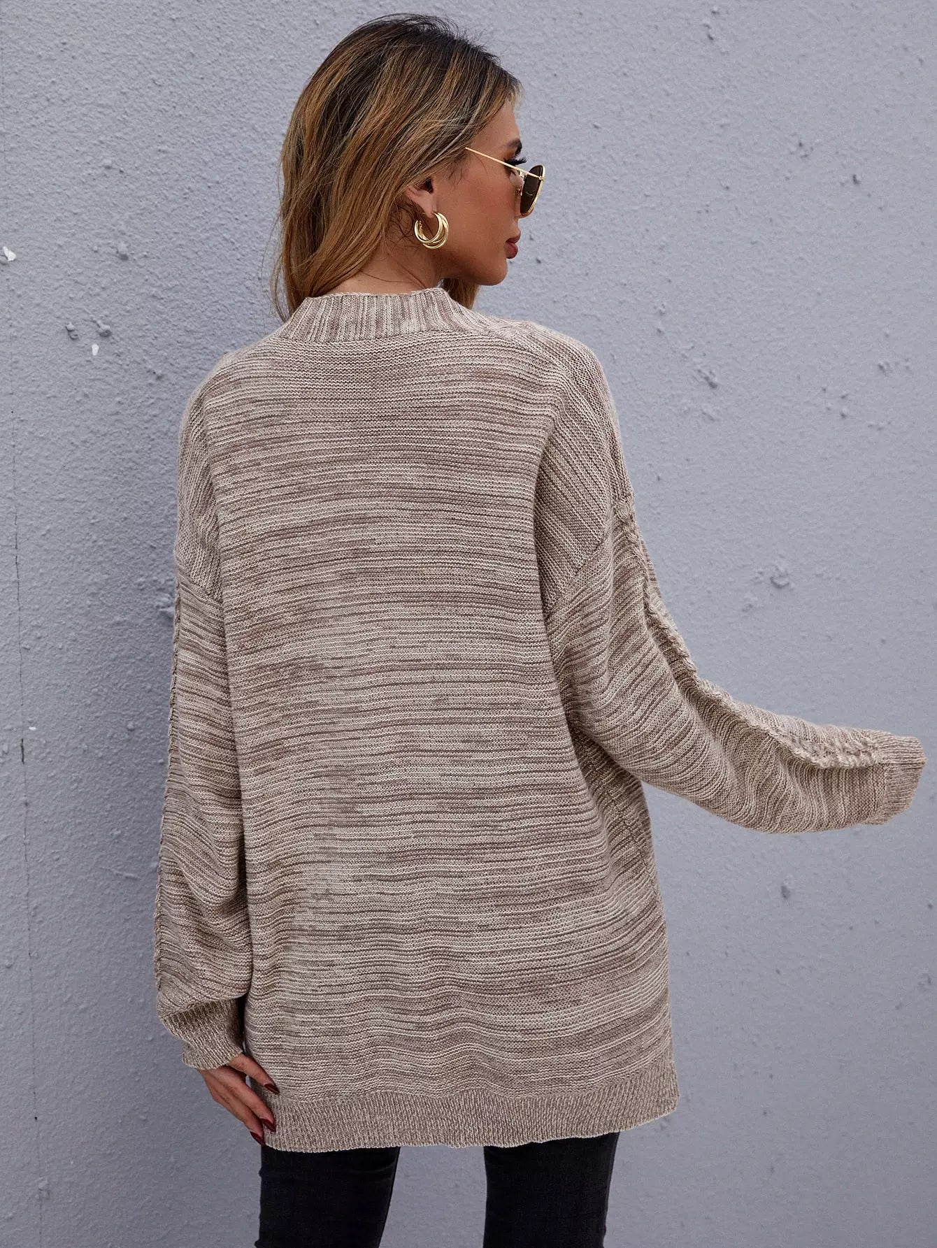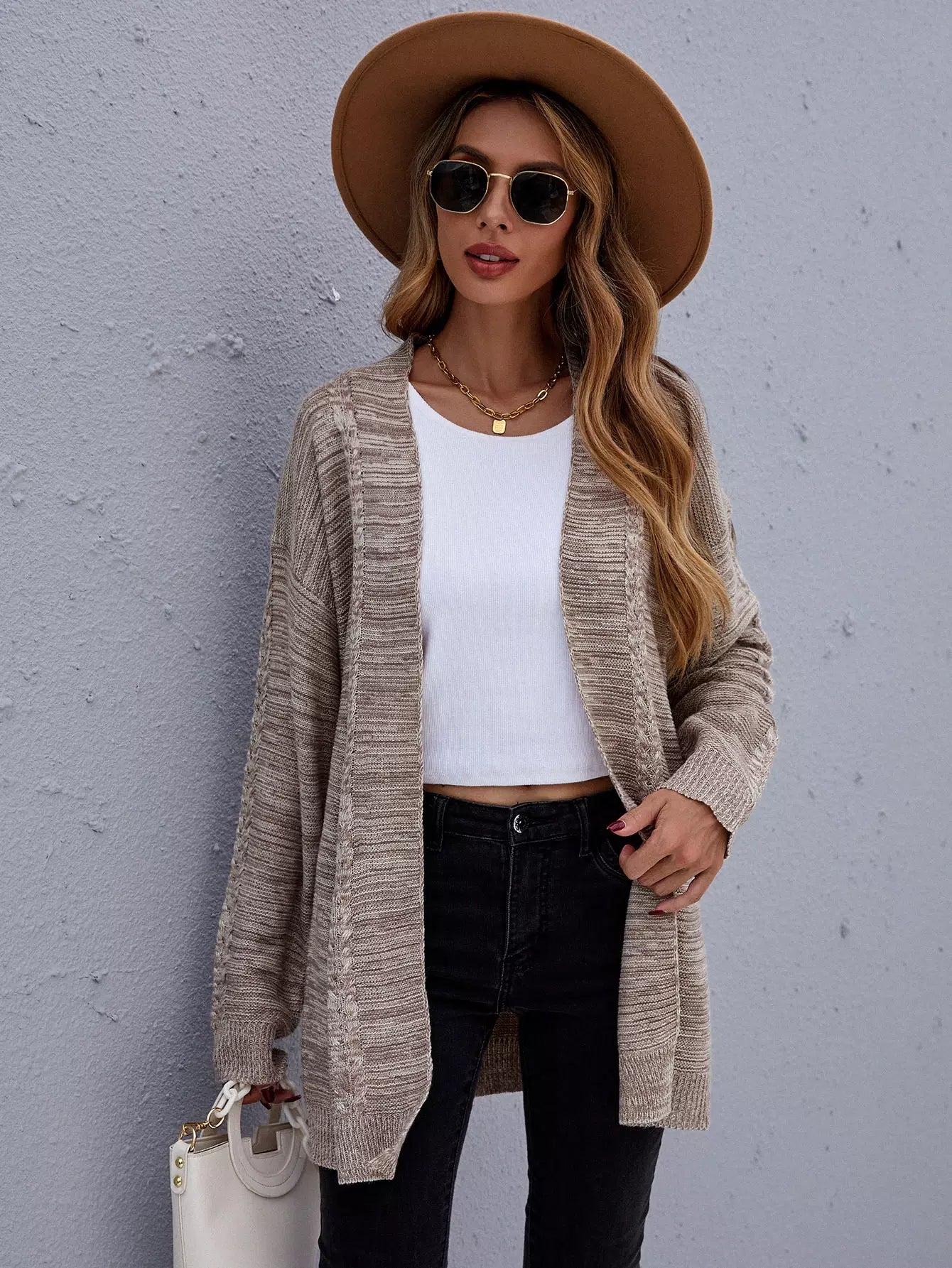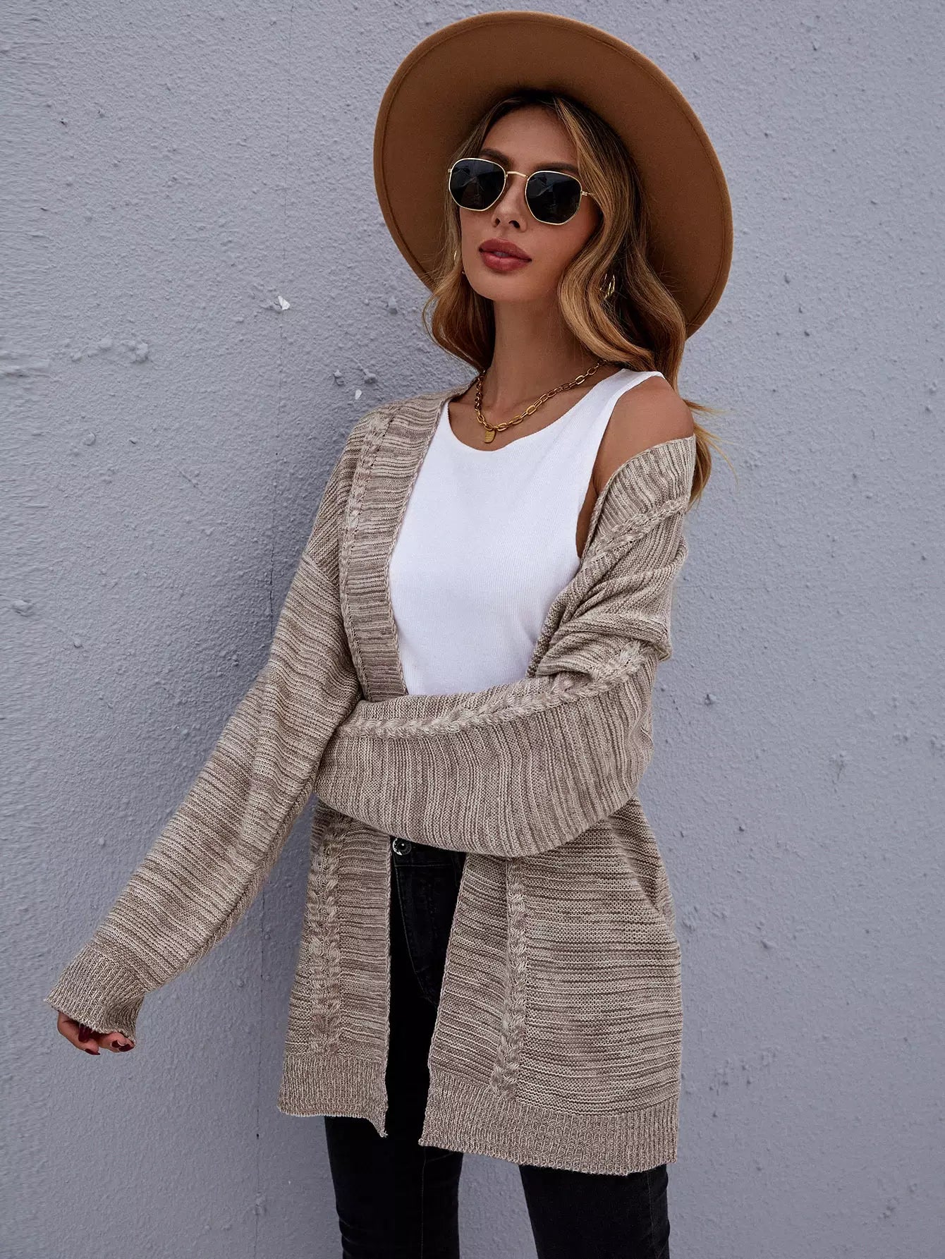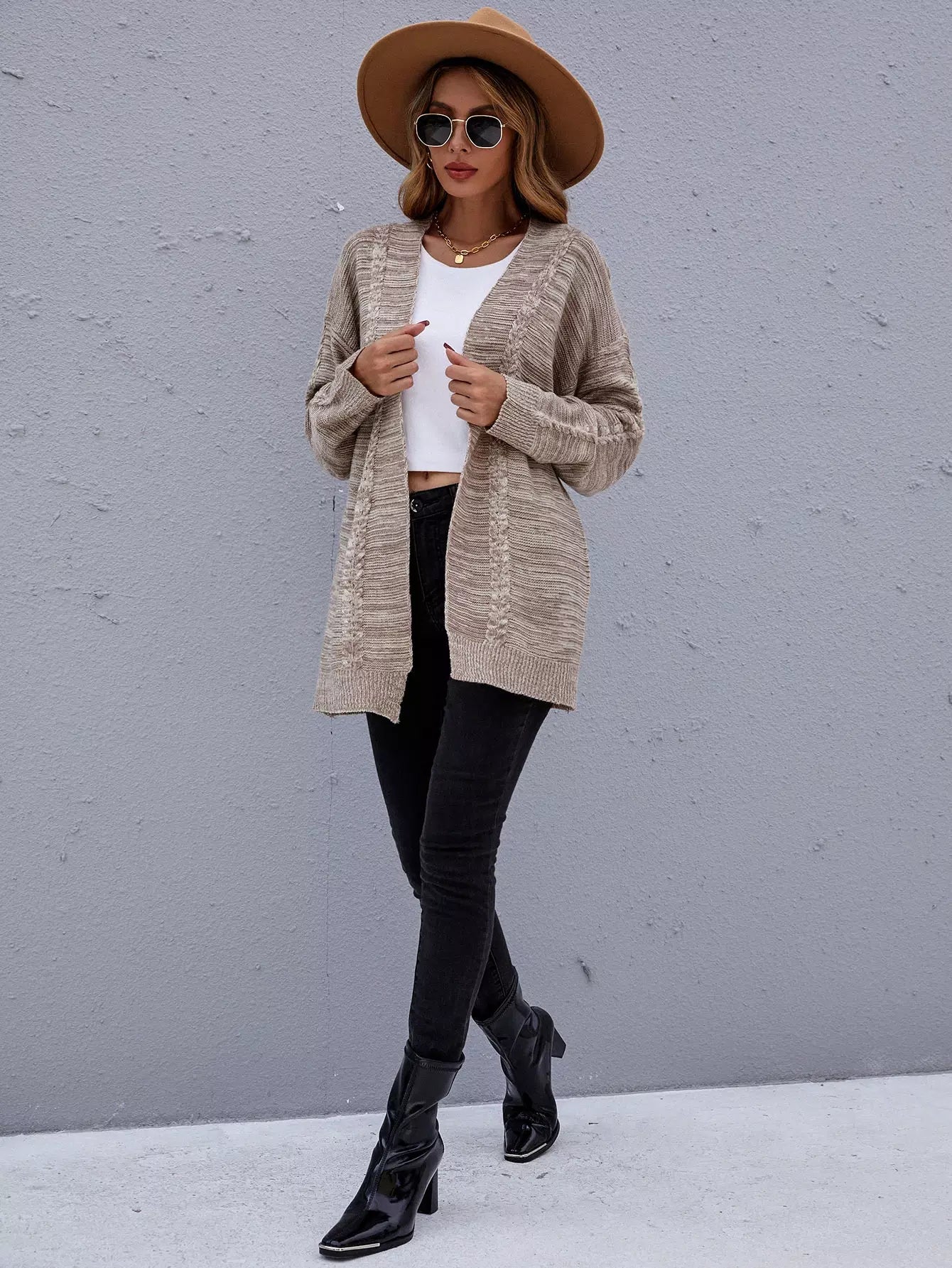 Marled Knit Drop Shoulder Open Front Cardigan