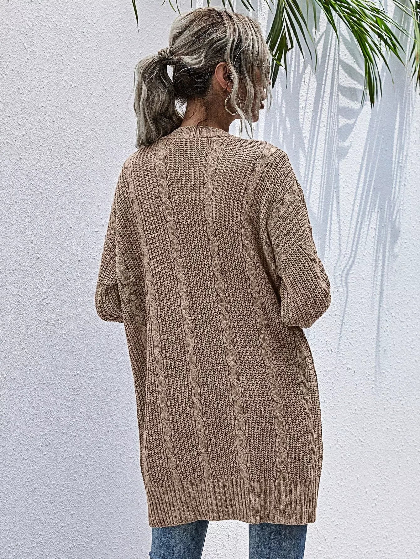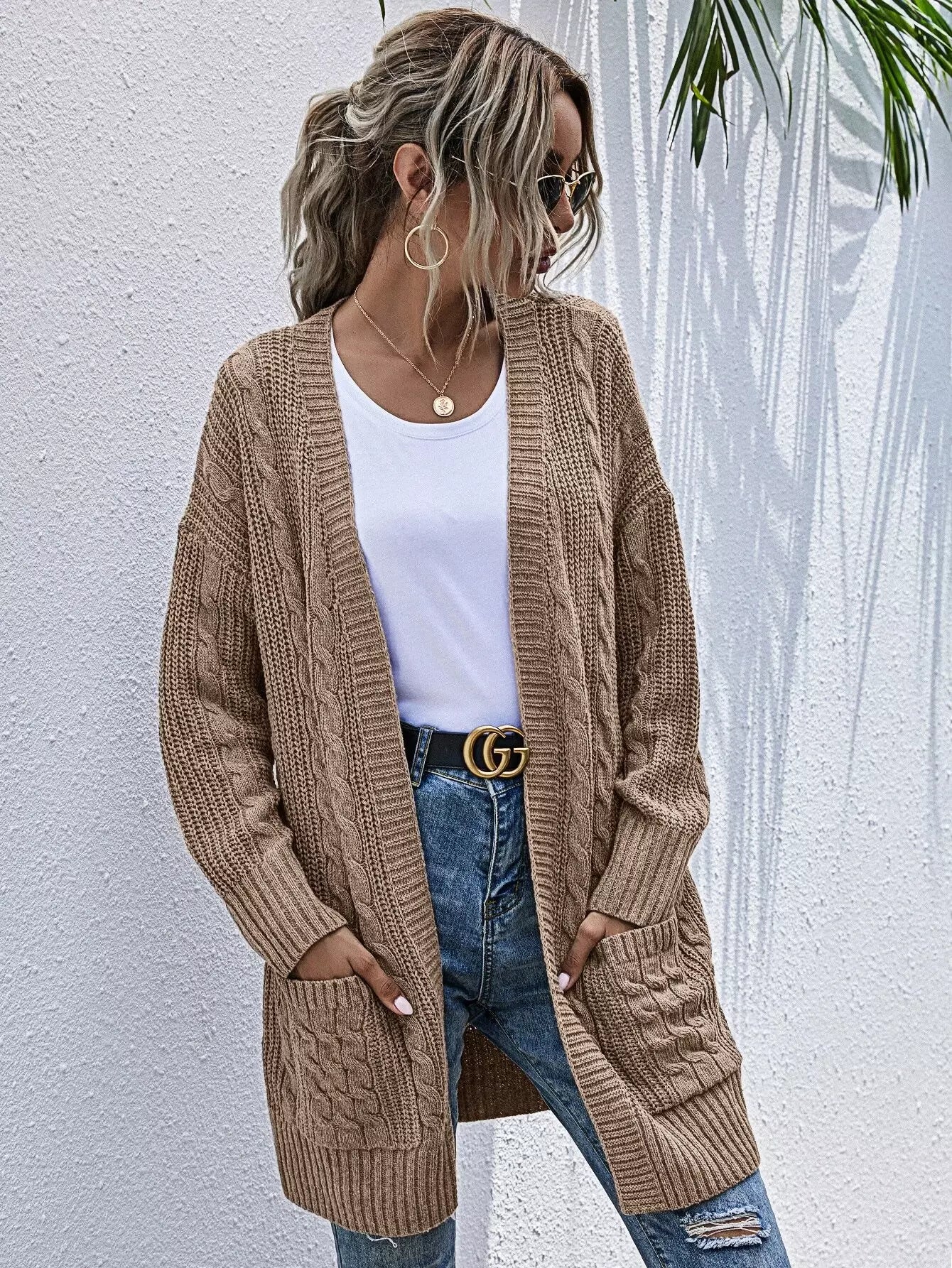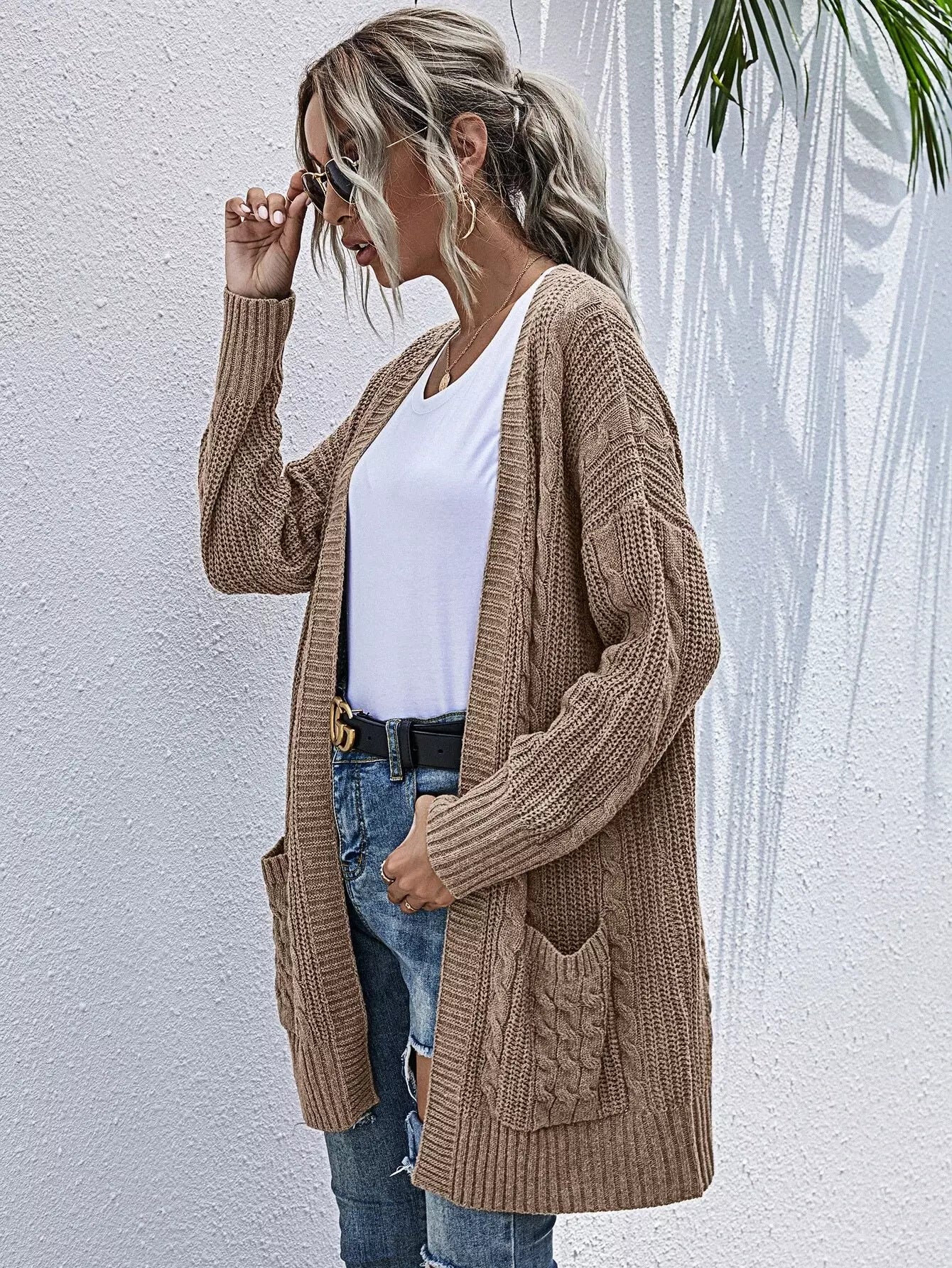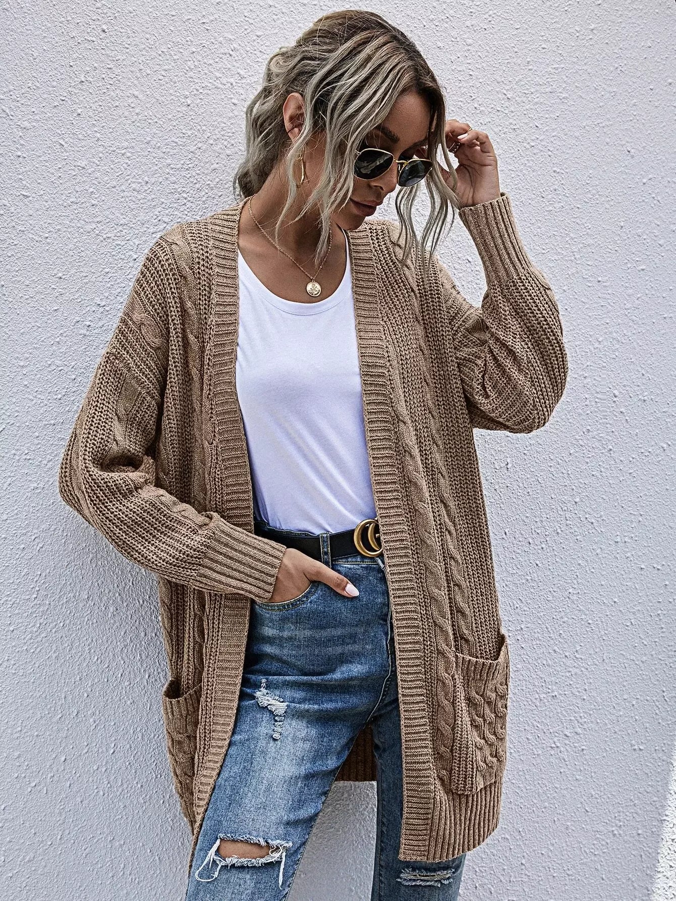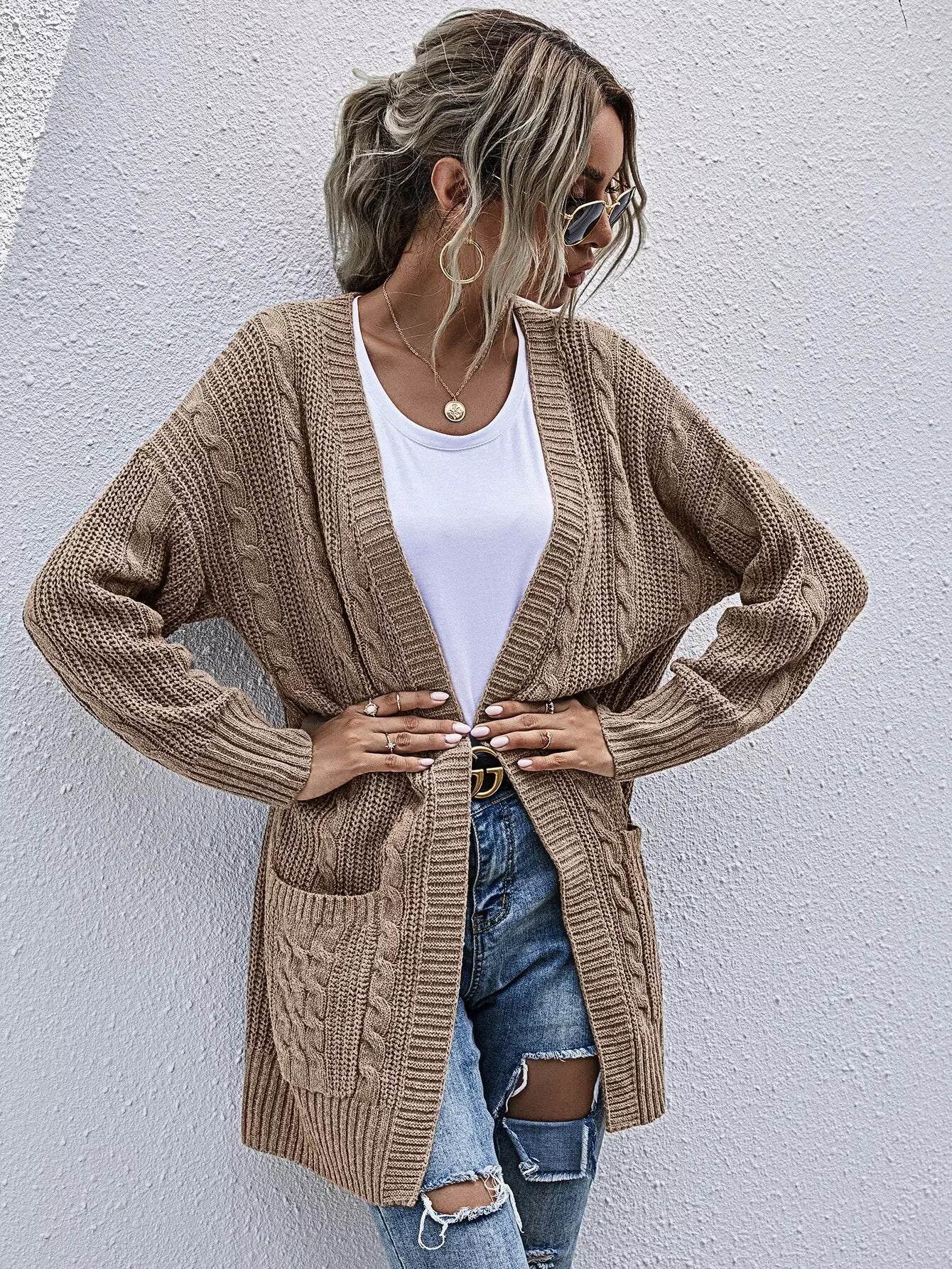 Pocket Patched Cable Knit Cardigan