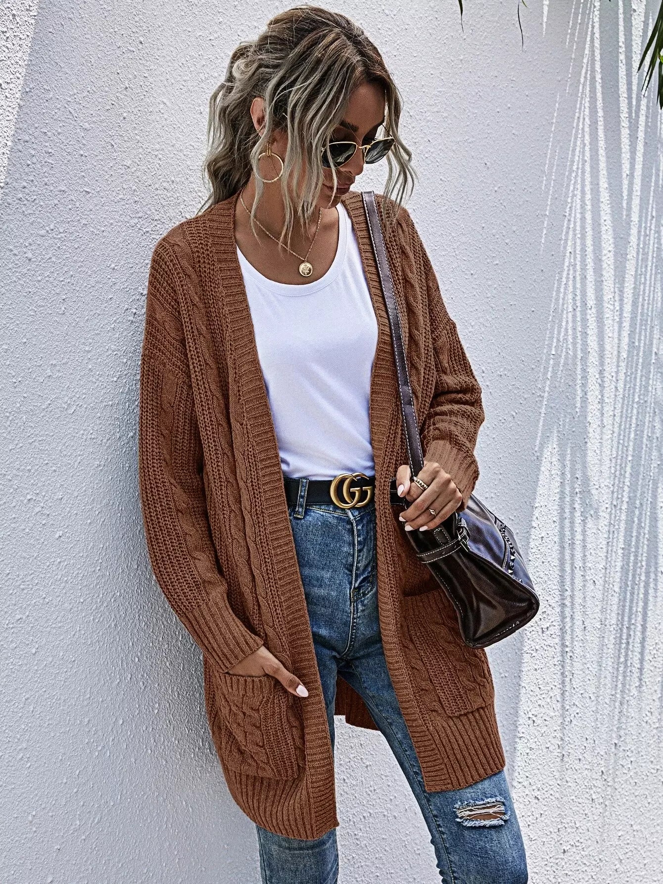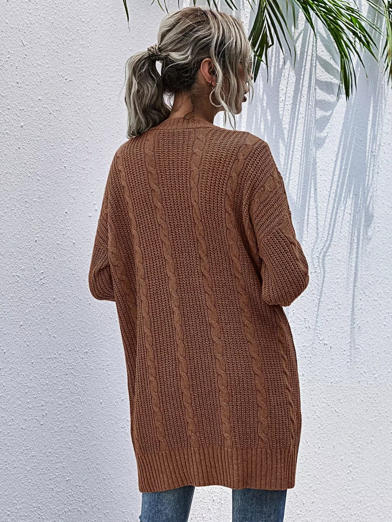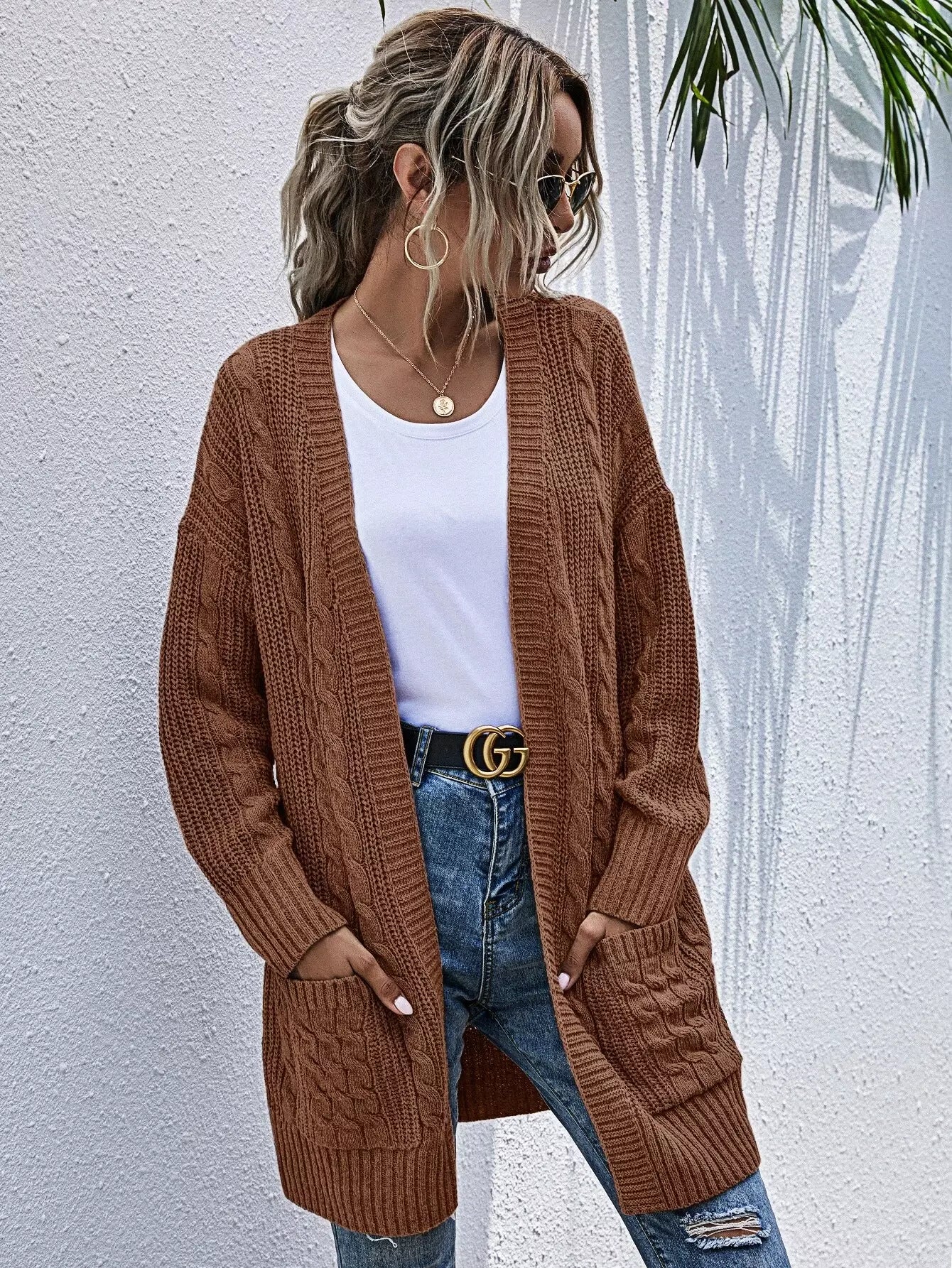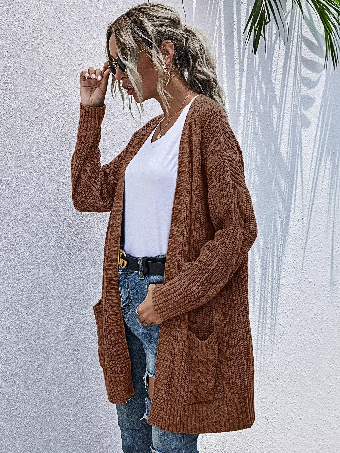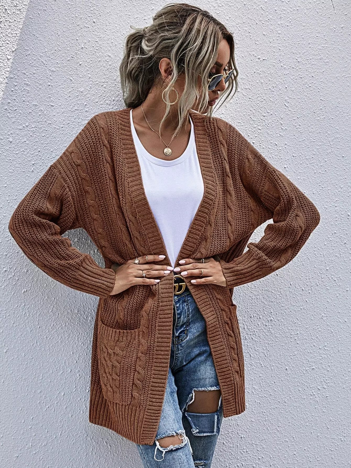 Pocket Patched Cable Knit Cardigan